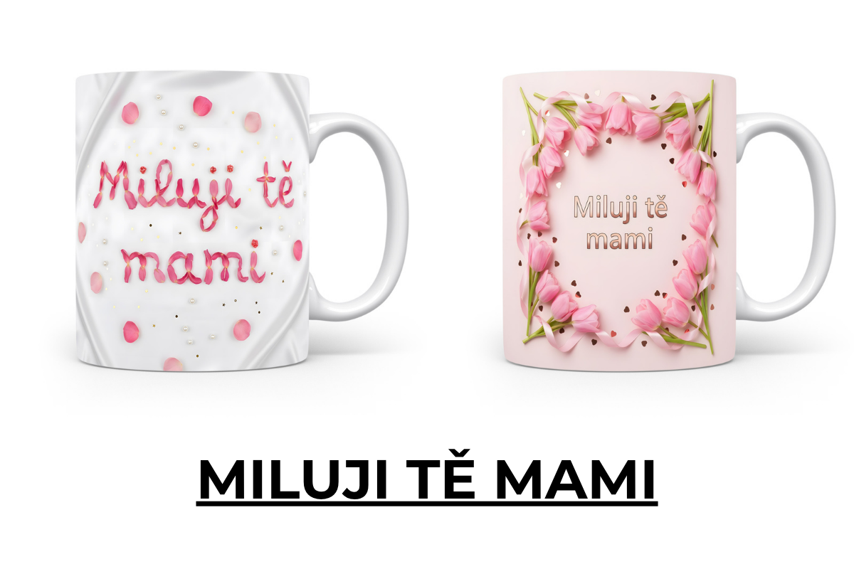 Hrnek Miluji tě mami – zlaté srdce na růžovém gradientu