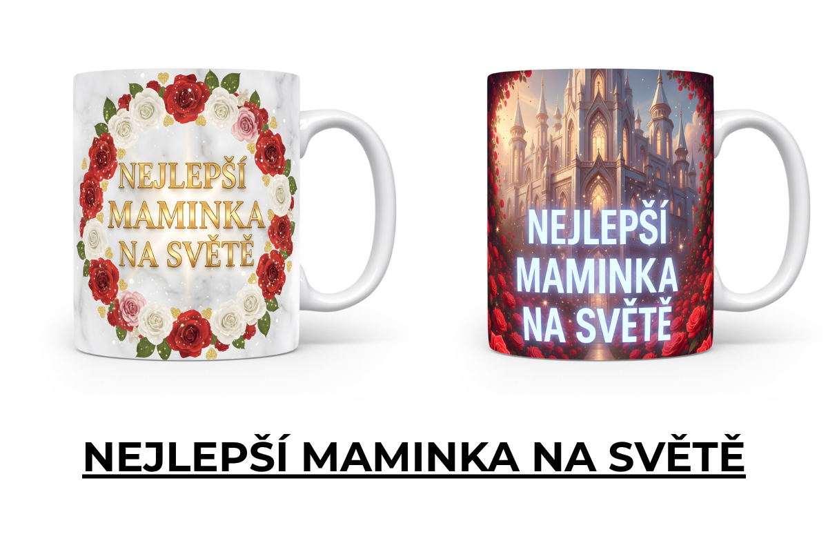 Hrnek NEJLEPŠÍ MAMINKA NA SVĚTĚ – romantické květy a srdíčka v akvarelovém stylu