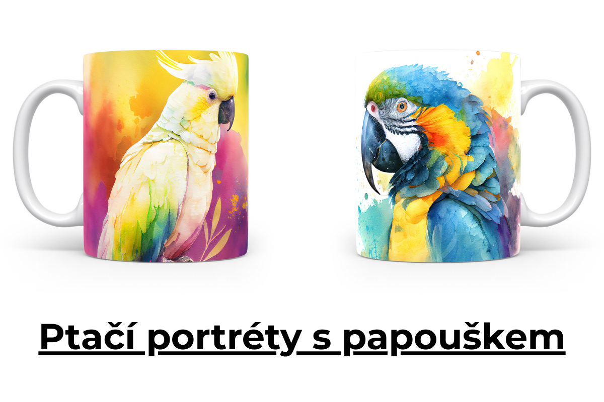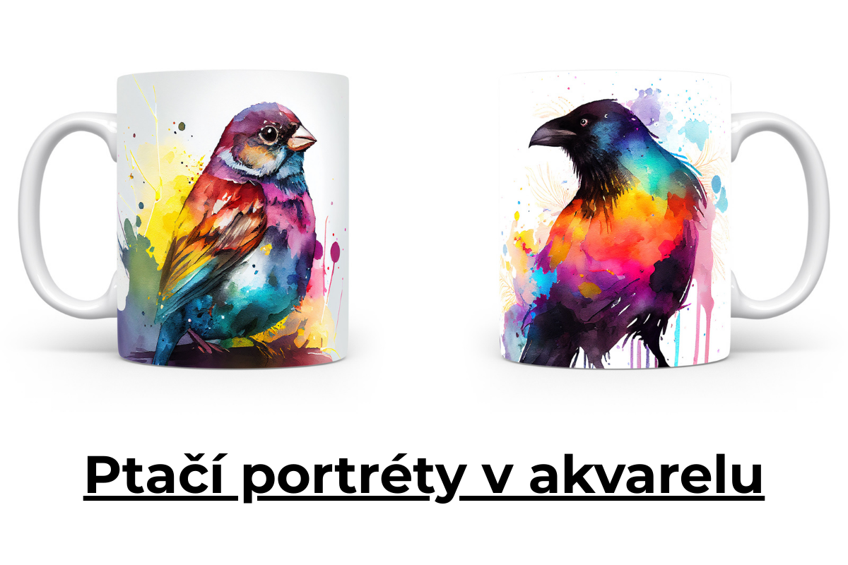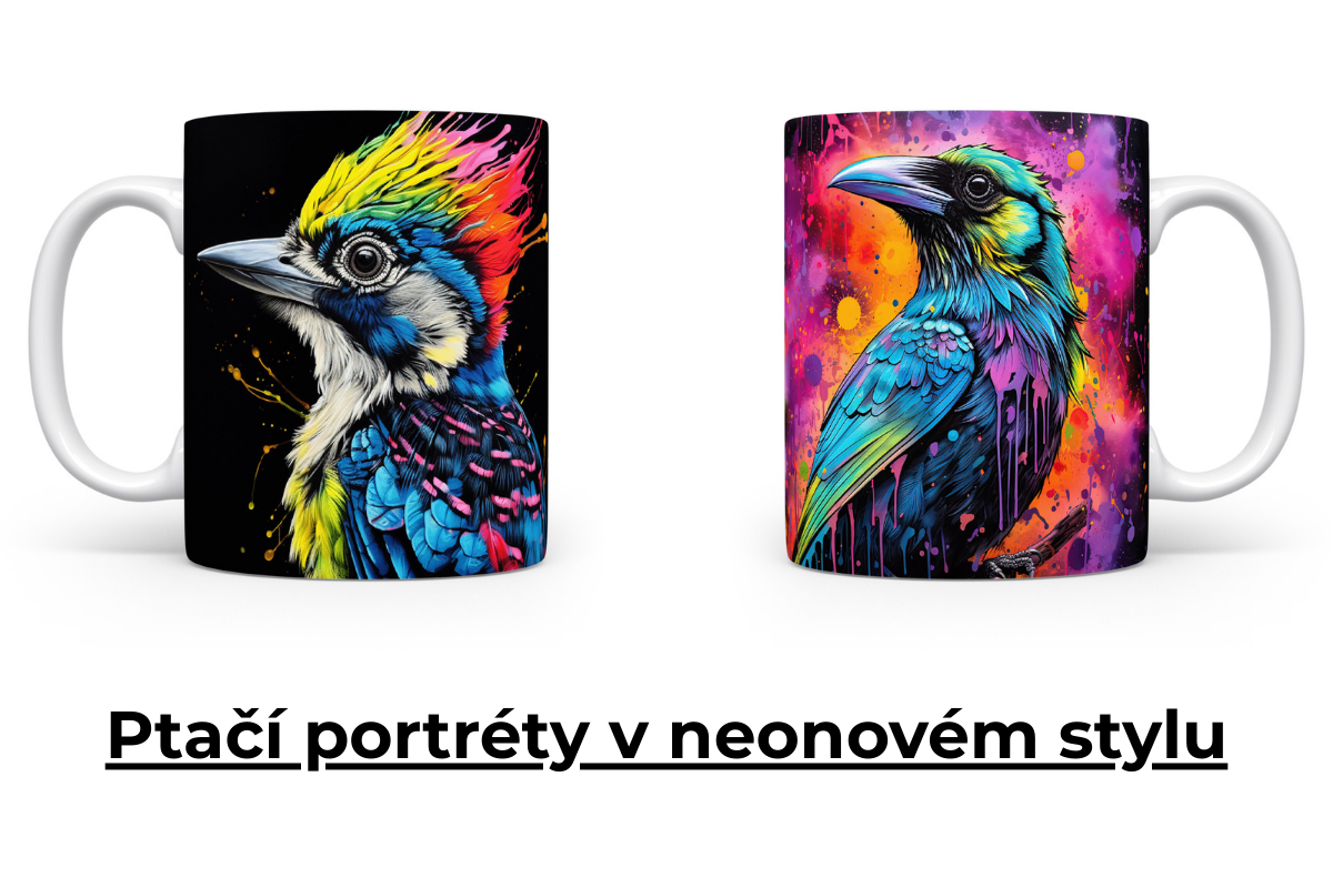 Hrnek s ptáčkem a květinami – komiksovým stylem