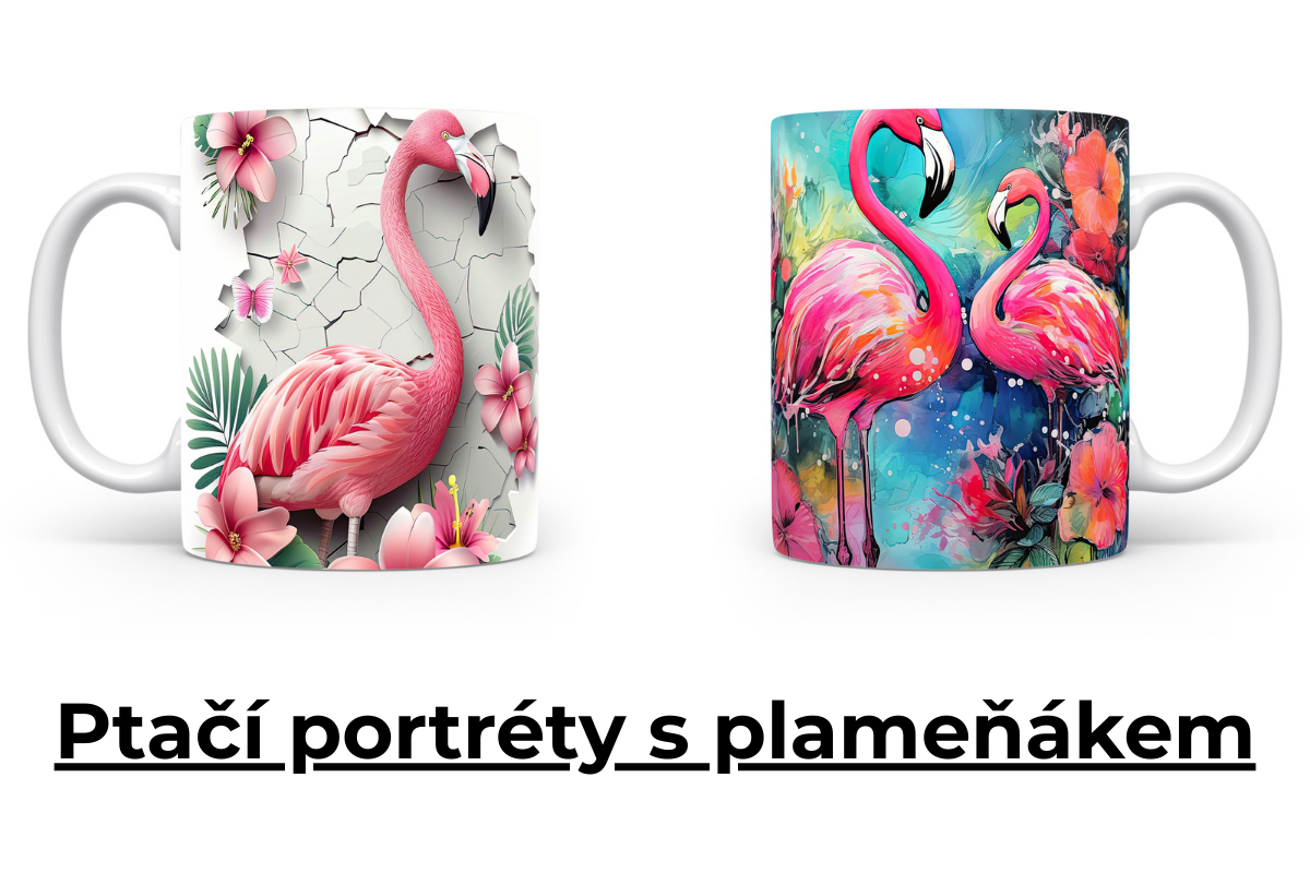 Hrnek s růžovým plameňákem – stylovým zpracováním