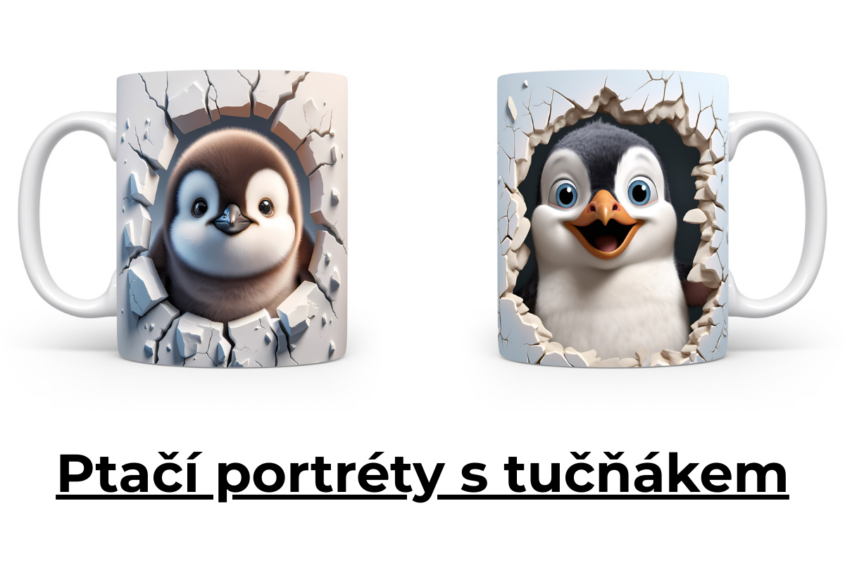 Hrnek s roztomilým ptáčkem v kostýmu – modrými detaily