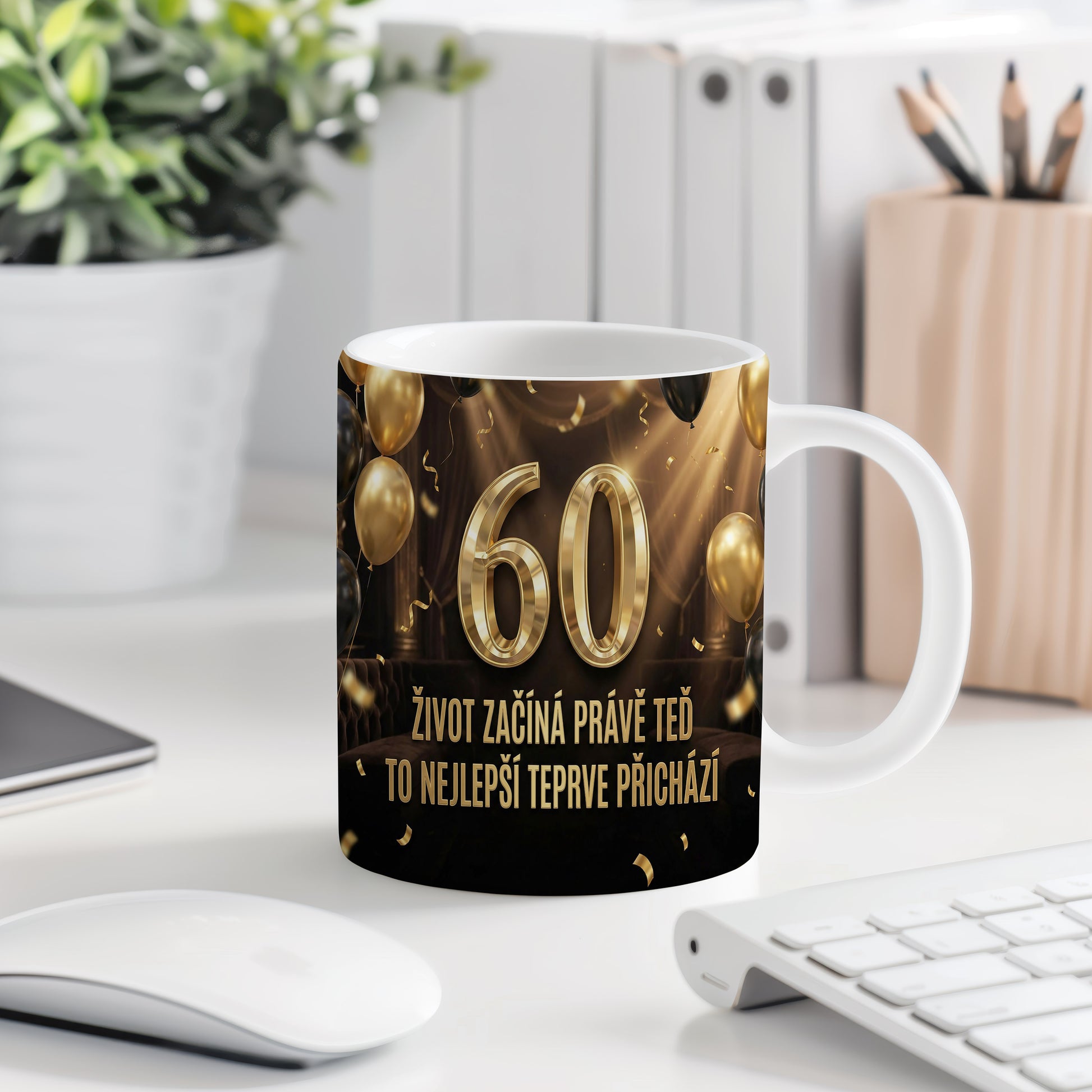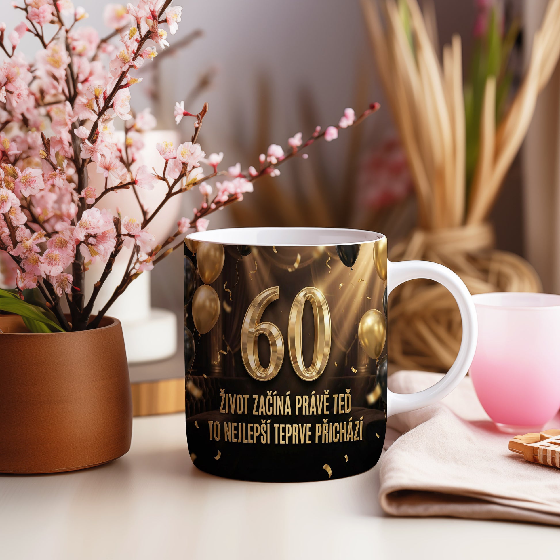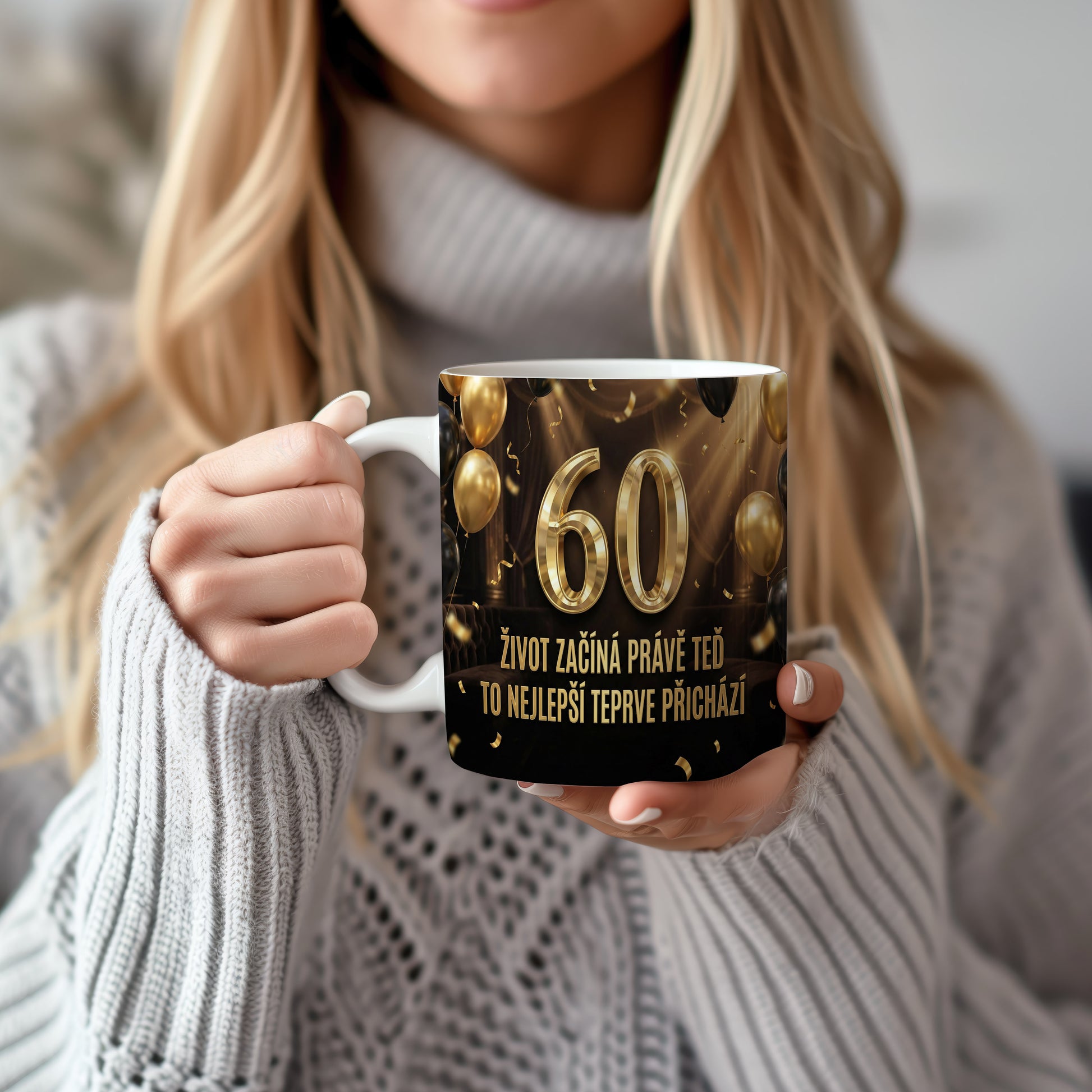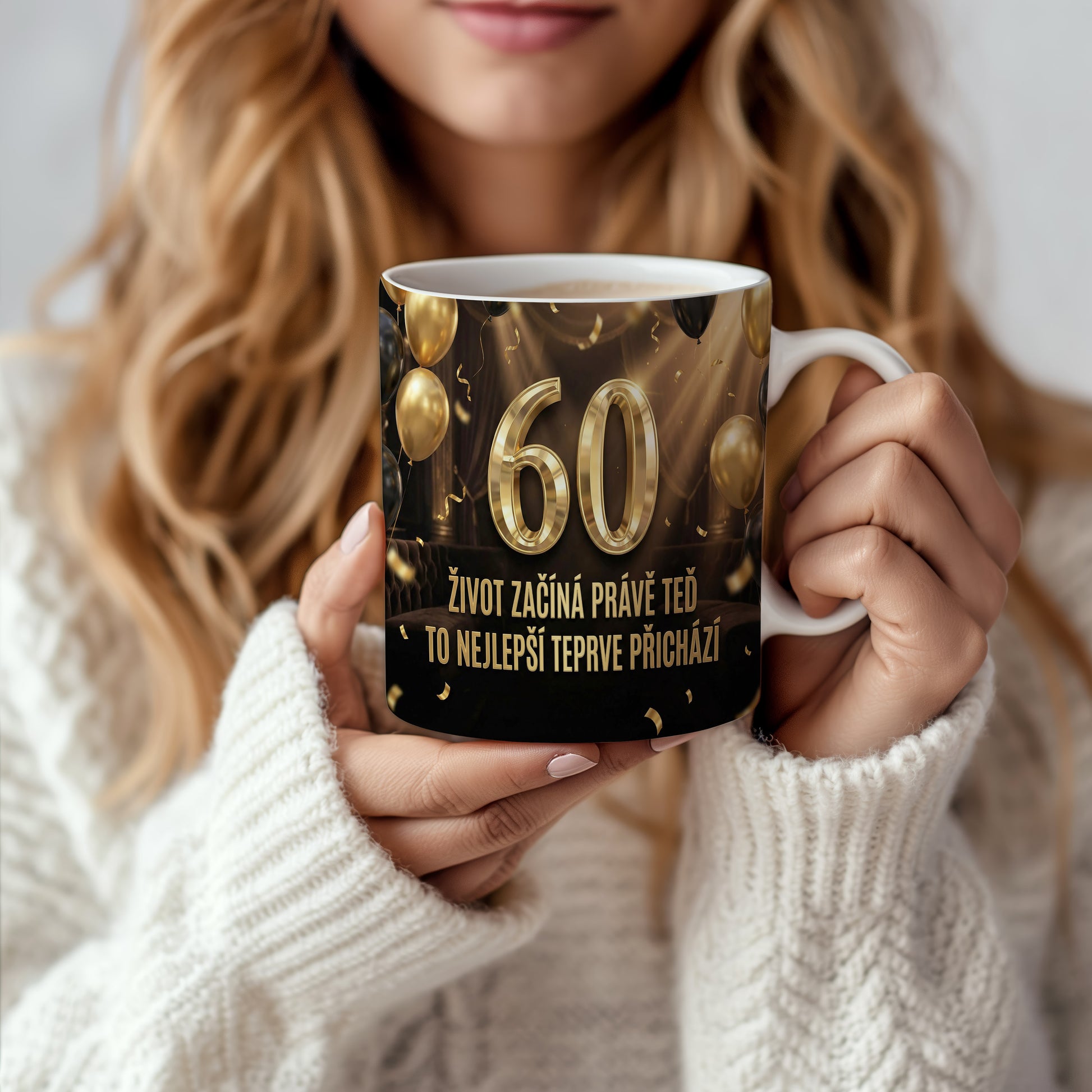 Narozeninový hrnek 60 let – ŽIVOT ZAČÍNÁ PRÁVĚ TEĎ TO NEJLEPŠÍ TEPRVE PŘICHÁZÍ