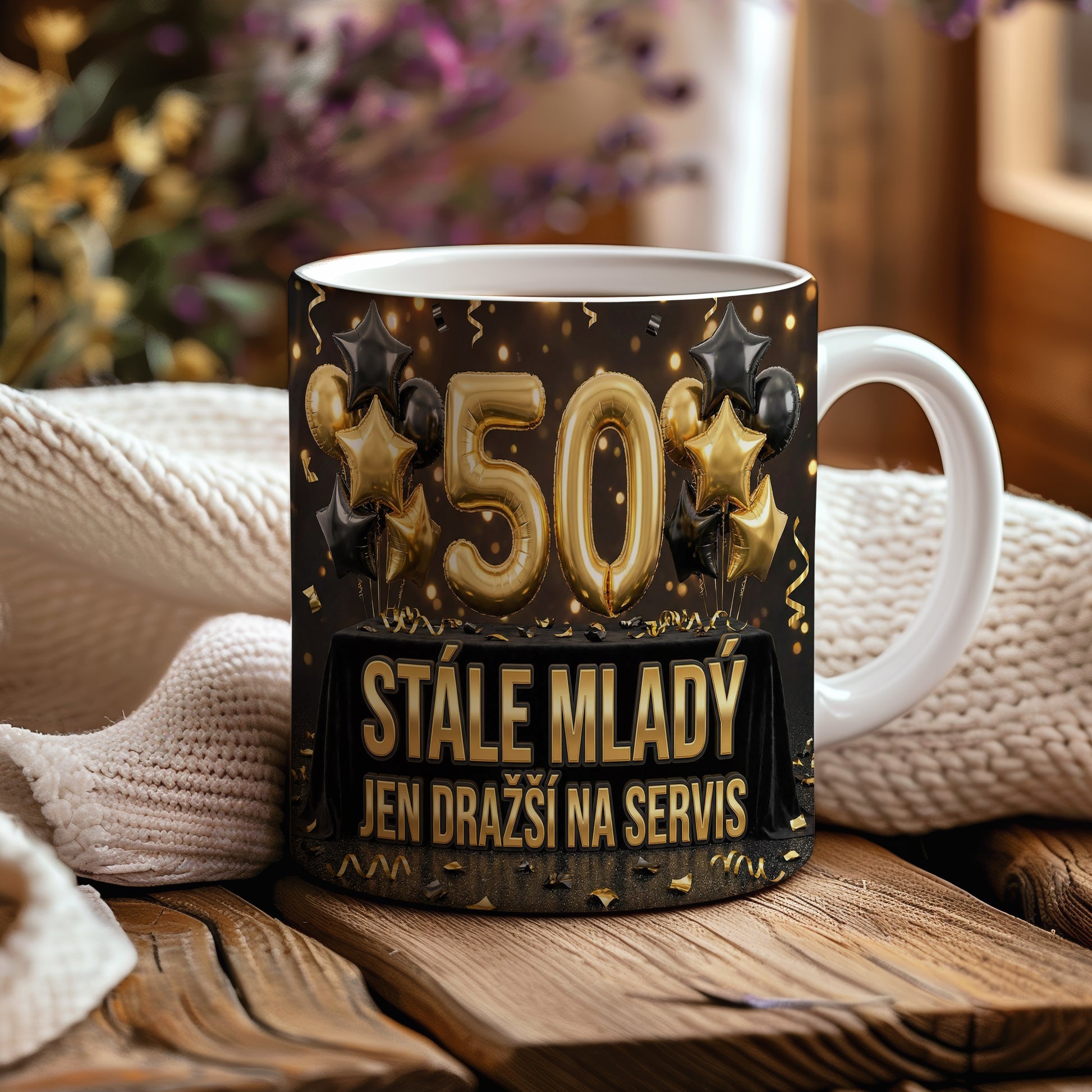 Oslavte své padesátiny s tímto stylovým hrnkem. Keramický hrnek – vhodný do myčky i mikrovlnky.