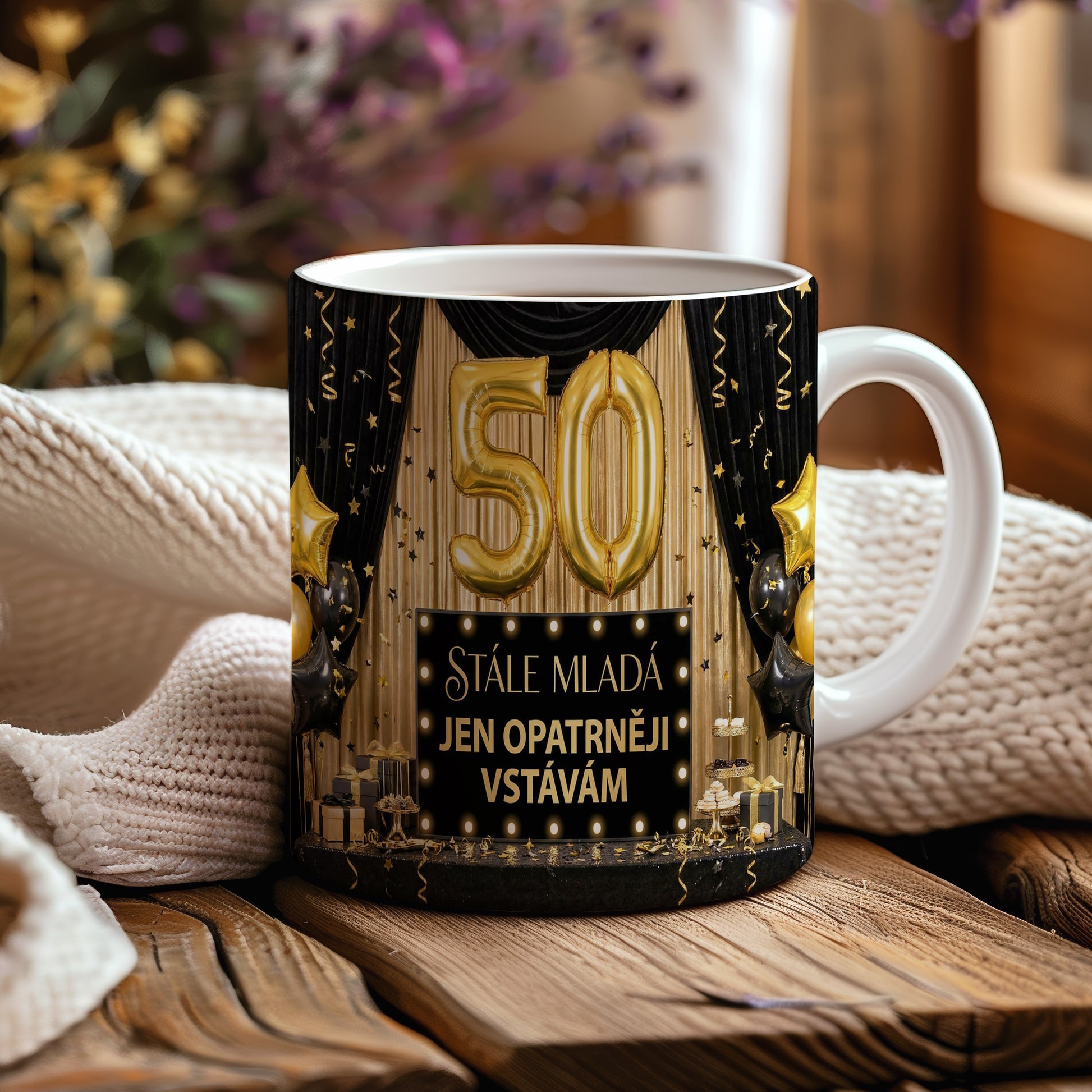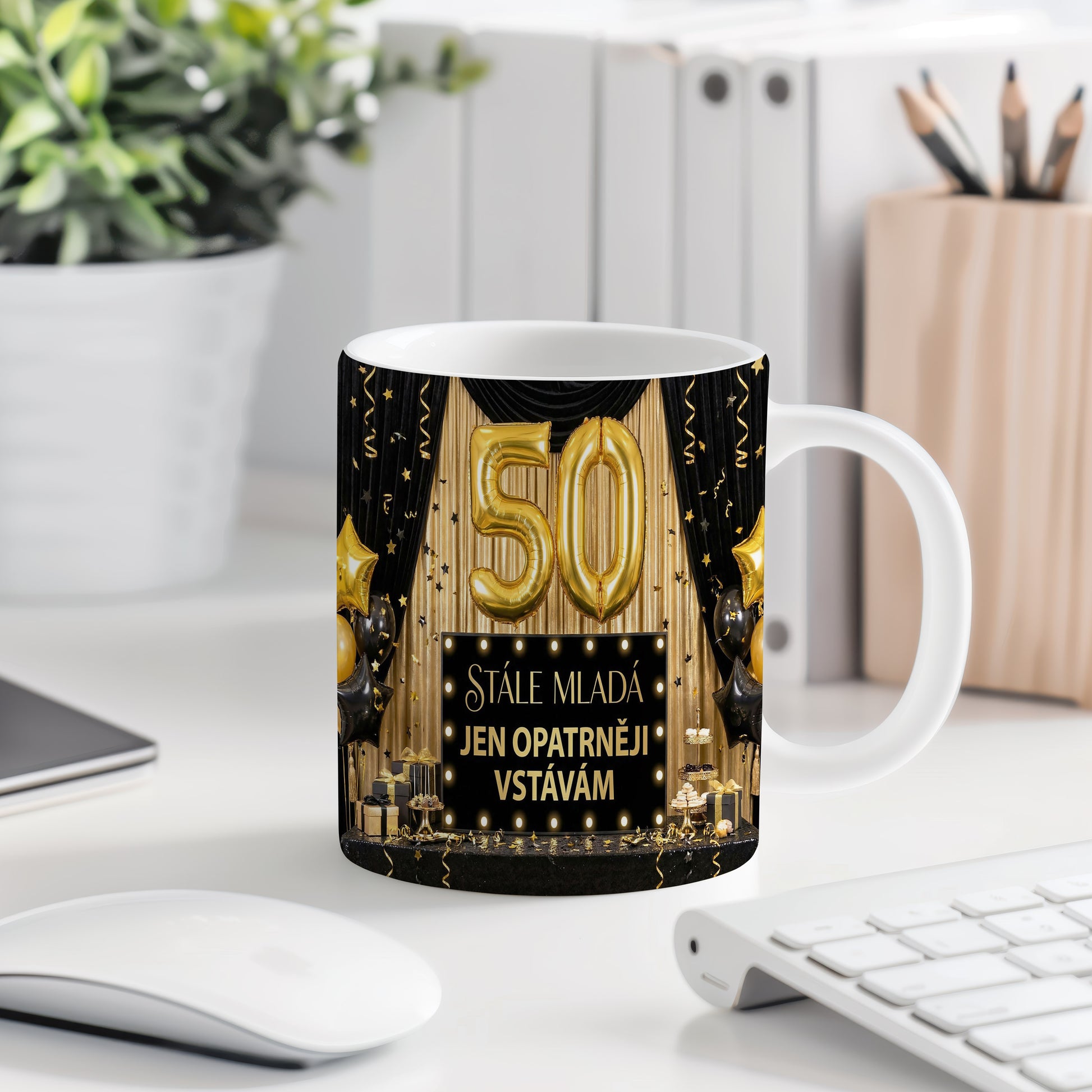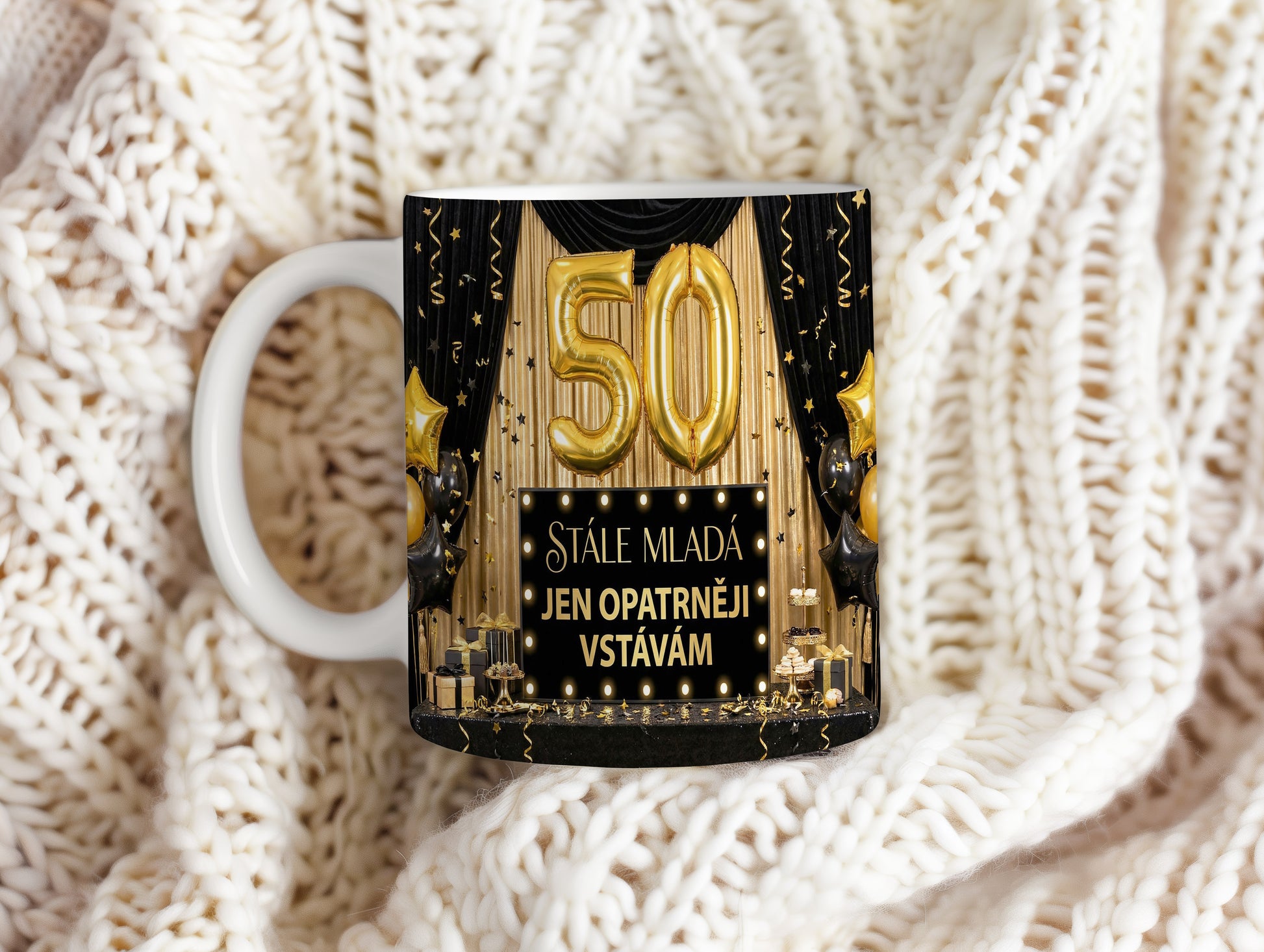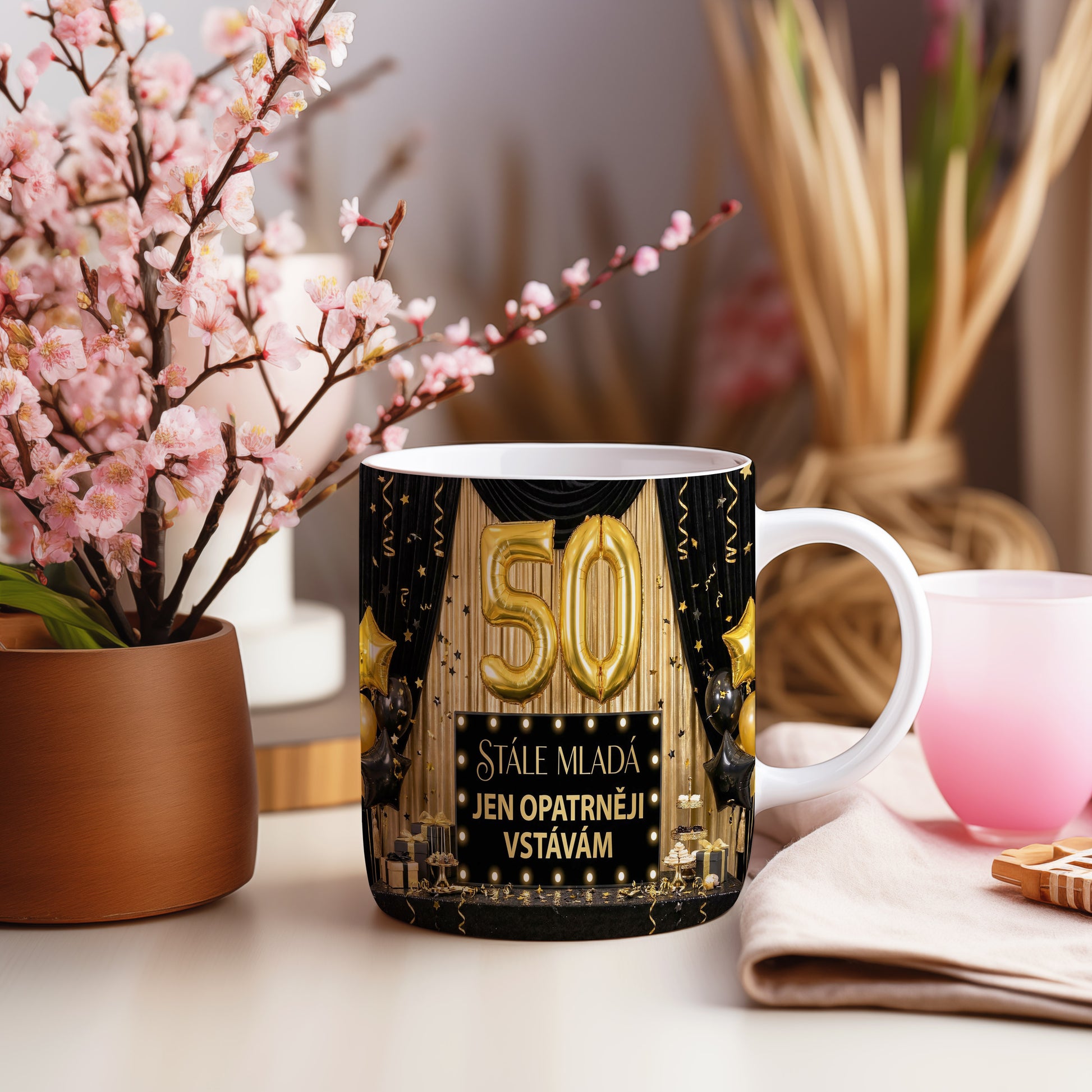 Narozeninový hrnek 50 let – STÁLE MLADÁ JEN OPATRNĚJI VSTÁVÁM