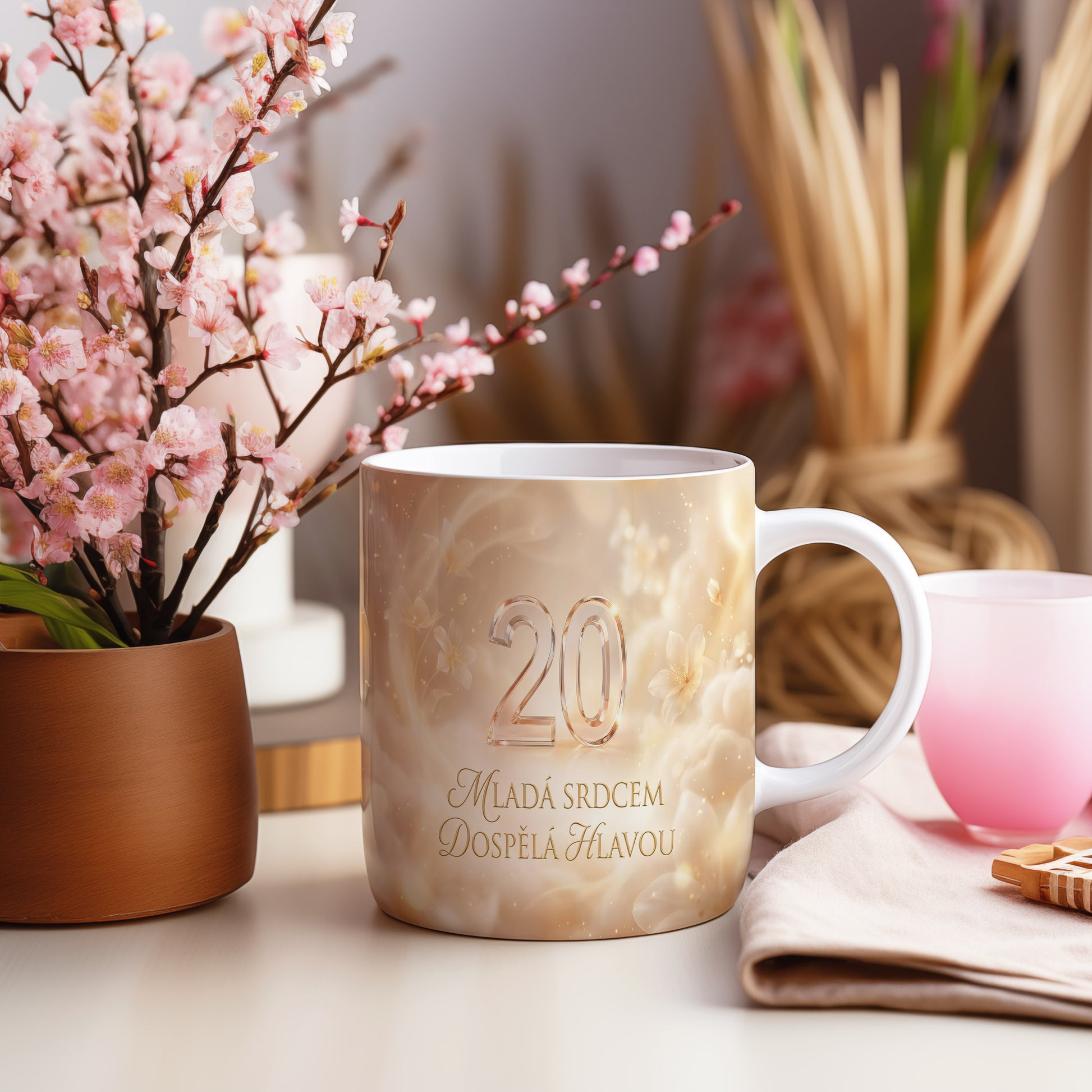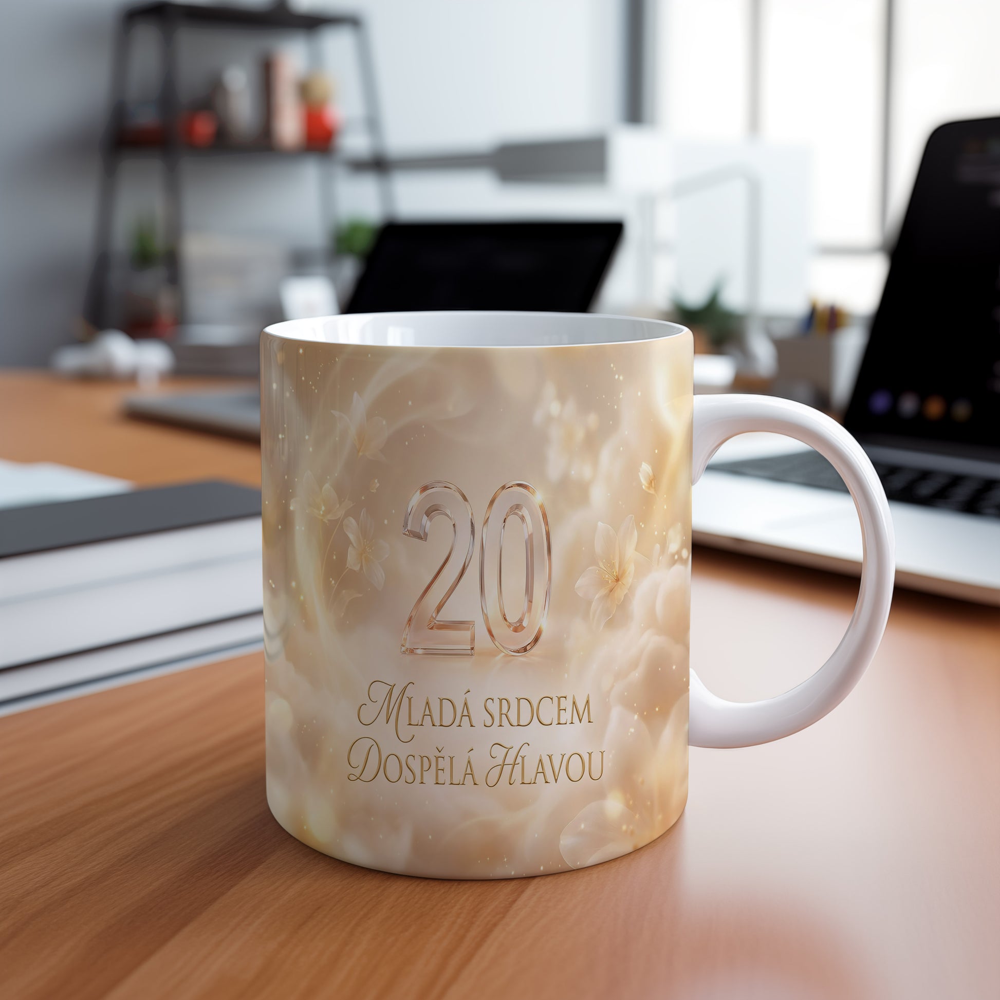 Narozeninový hrnek 20 let – MLADÁ SRDCEM DOSPĚLÁ HLAVOU