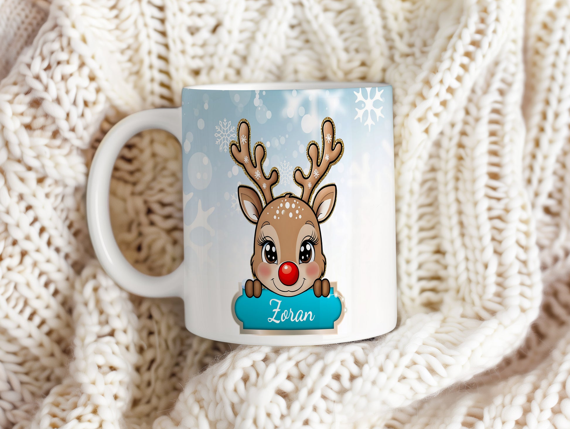 Veselý dětský hrnek se jménem Zoran s roztomilým sobem a zimními motivy. Skvělý osobní hrníček pro kluky.