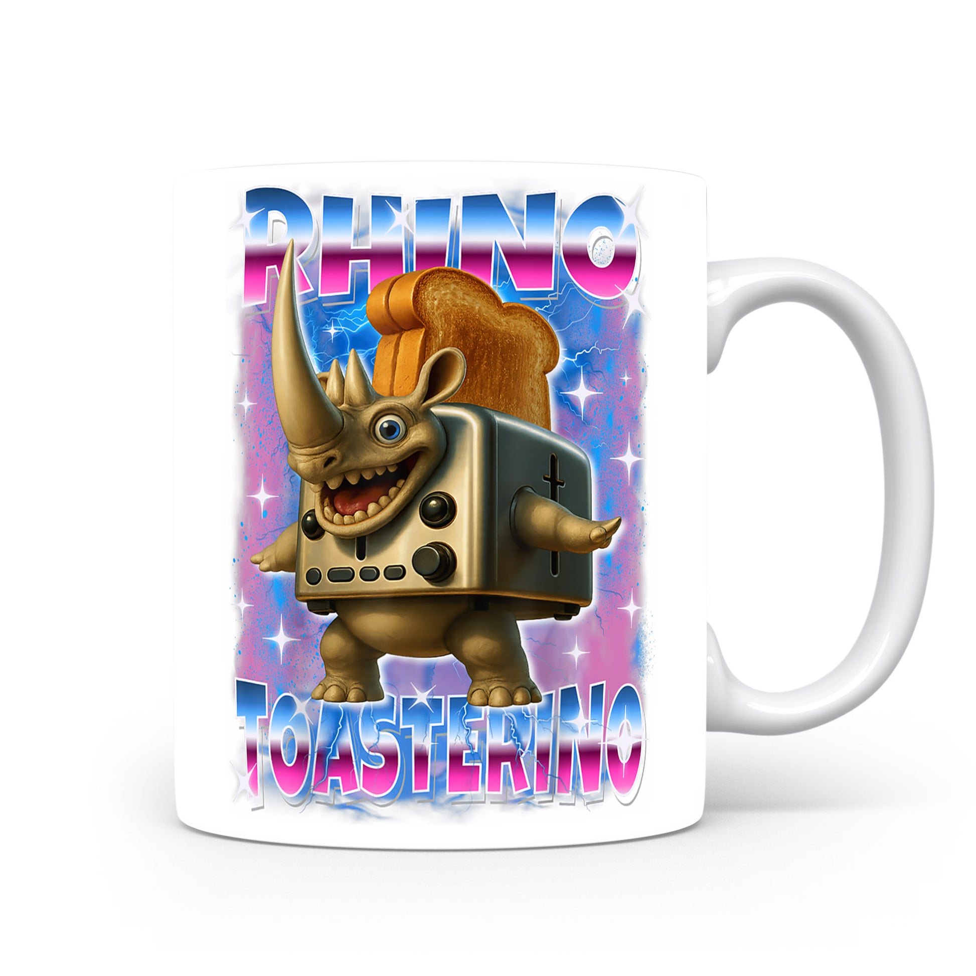 Design inspirovaný italským brainrotem: Dringo Monsterini — obrněný skřítek. Lesklý keramický hrnek 330 ml.
