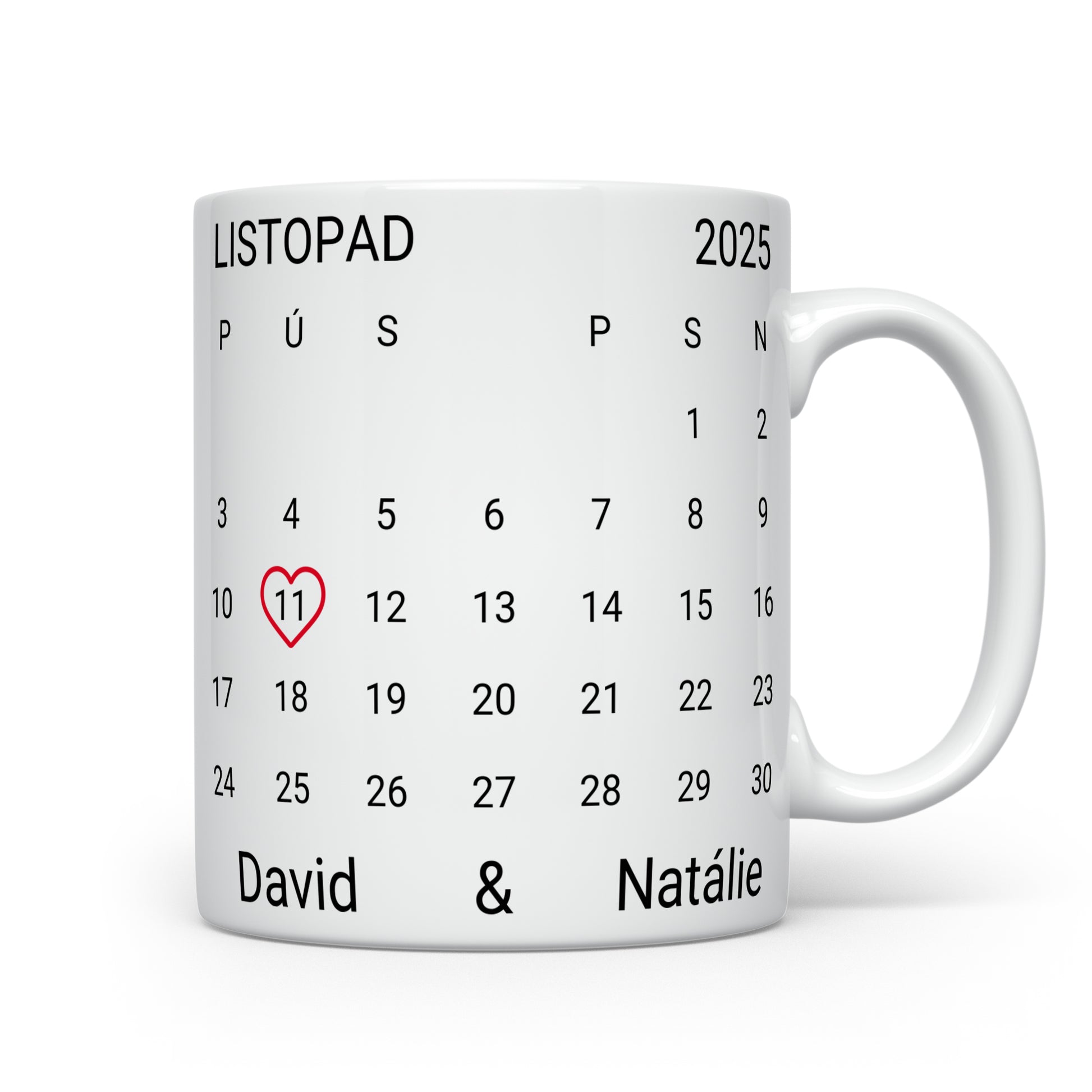 Zadejte dvě jména a vyberte důležité datum – my z něj během chvilky vytvoříme krásný kalendářový motiv přímo na hrnku!