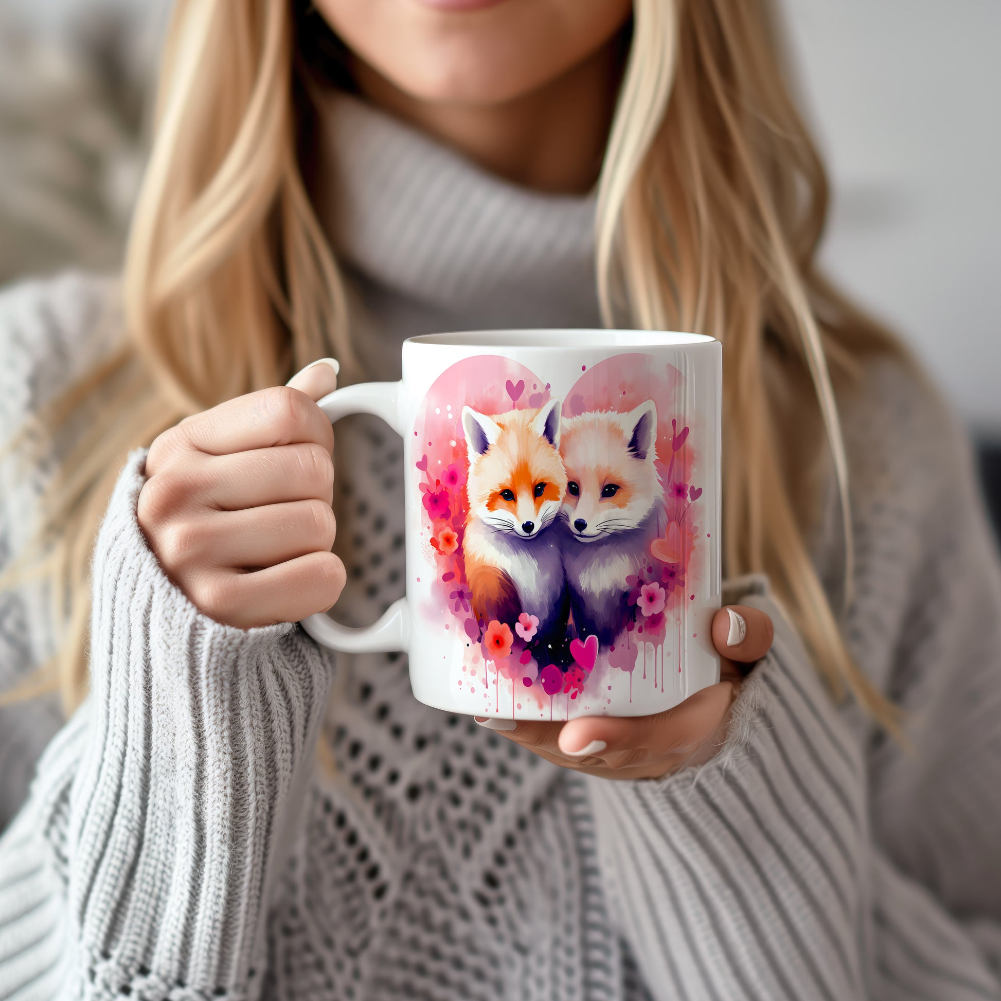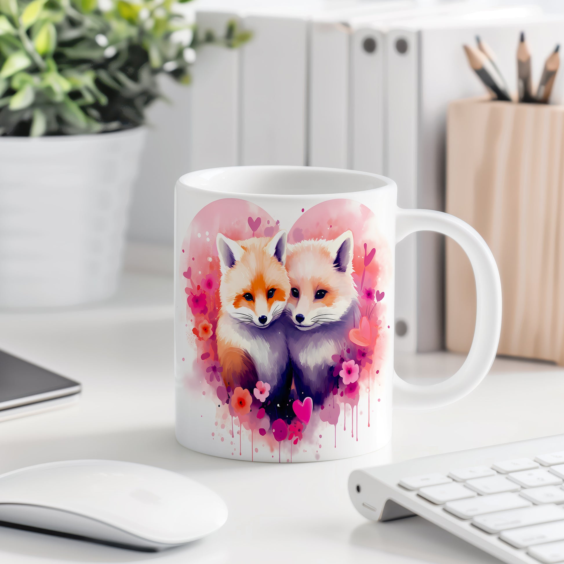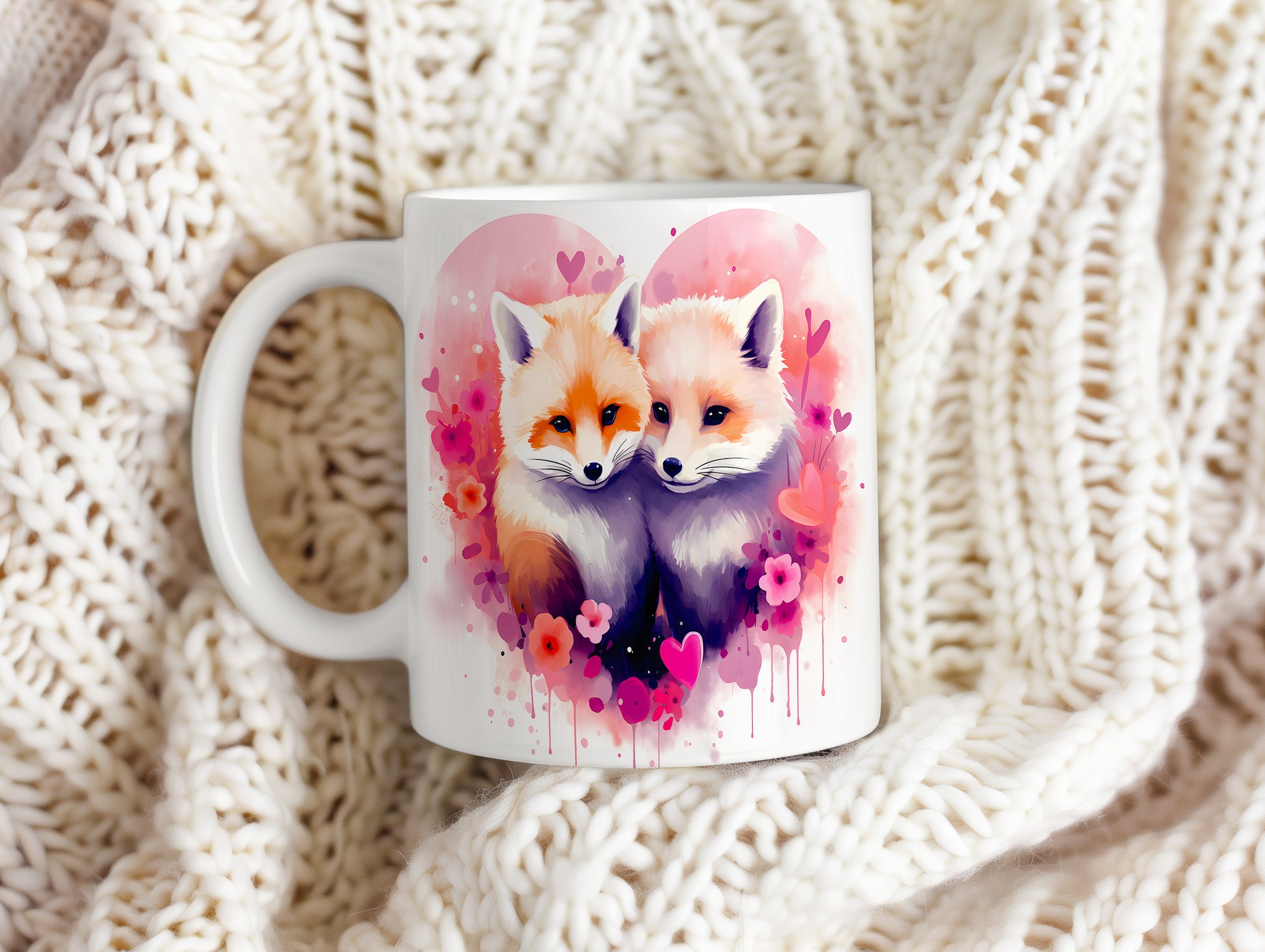 Objevte kouzlo tohoto hrnku s nádherným motivem lišek. Jemné pastelové barvy a romantické květiny přinášejí do vašeho dne radost a pohodu. Ideální dárek pro milovníky přírody a zvířat.