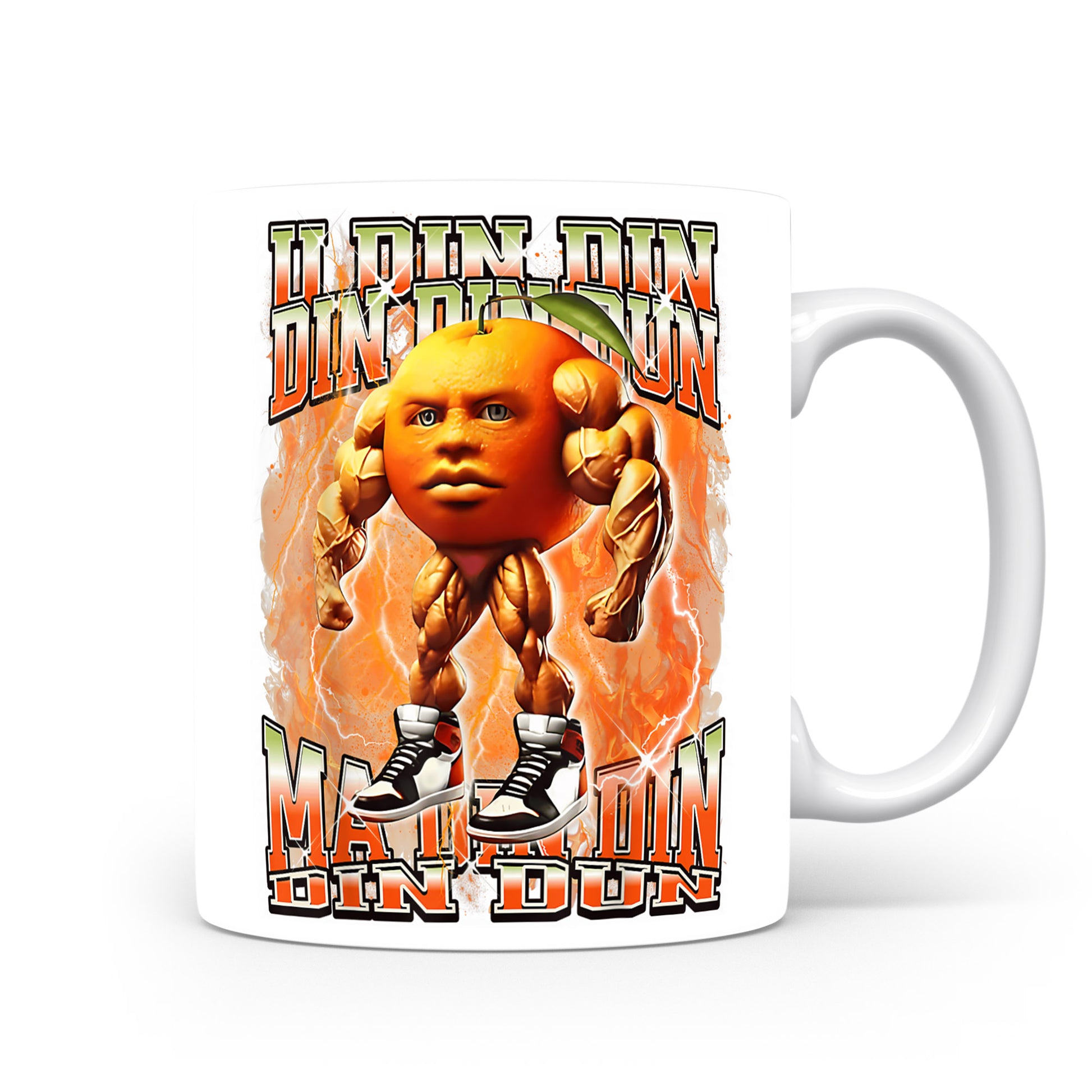 Design inspirovaný italským brainrotem: Marin Don Don — ohnivý kluk. Lesklý keramický hrnek 330 ml.