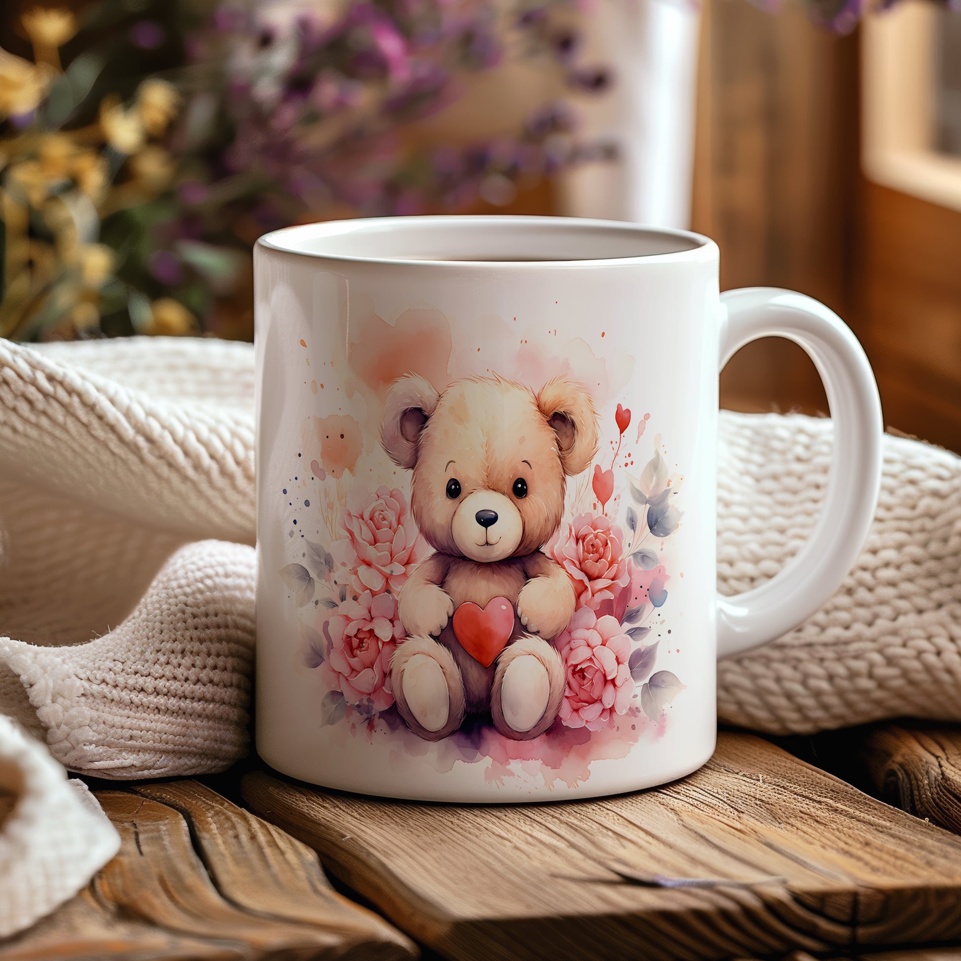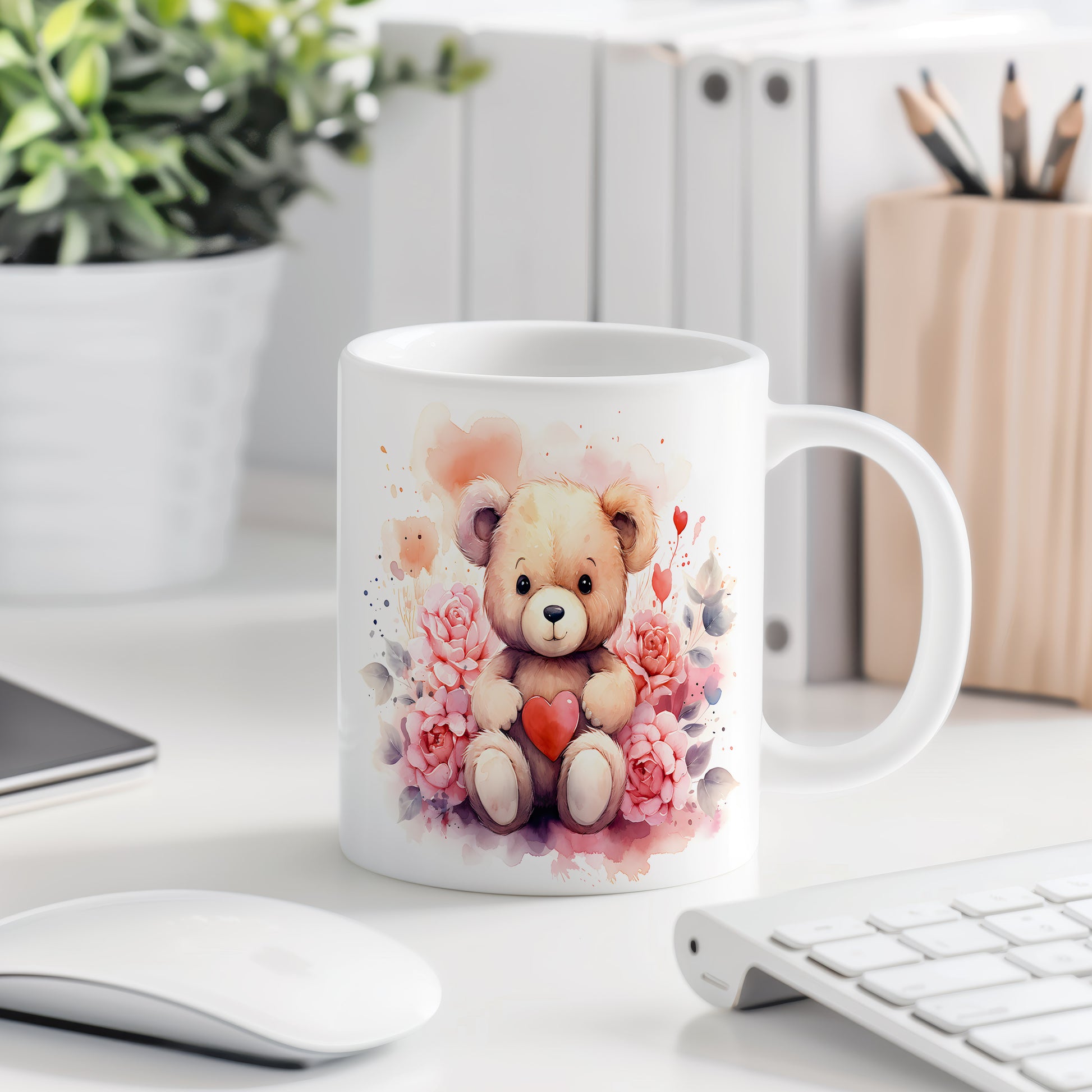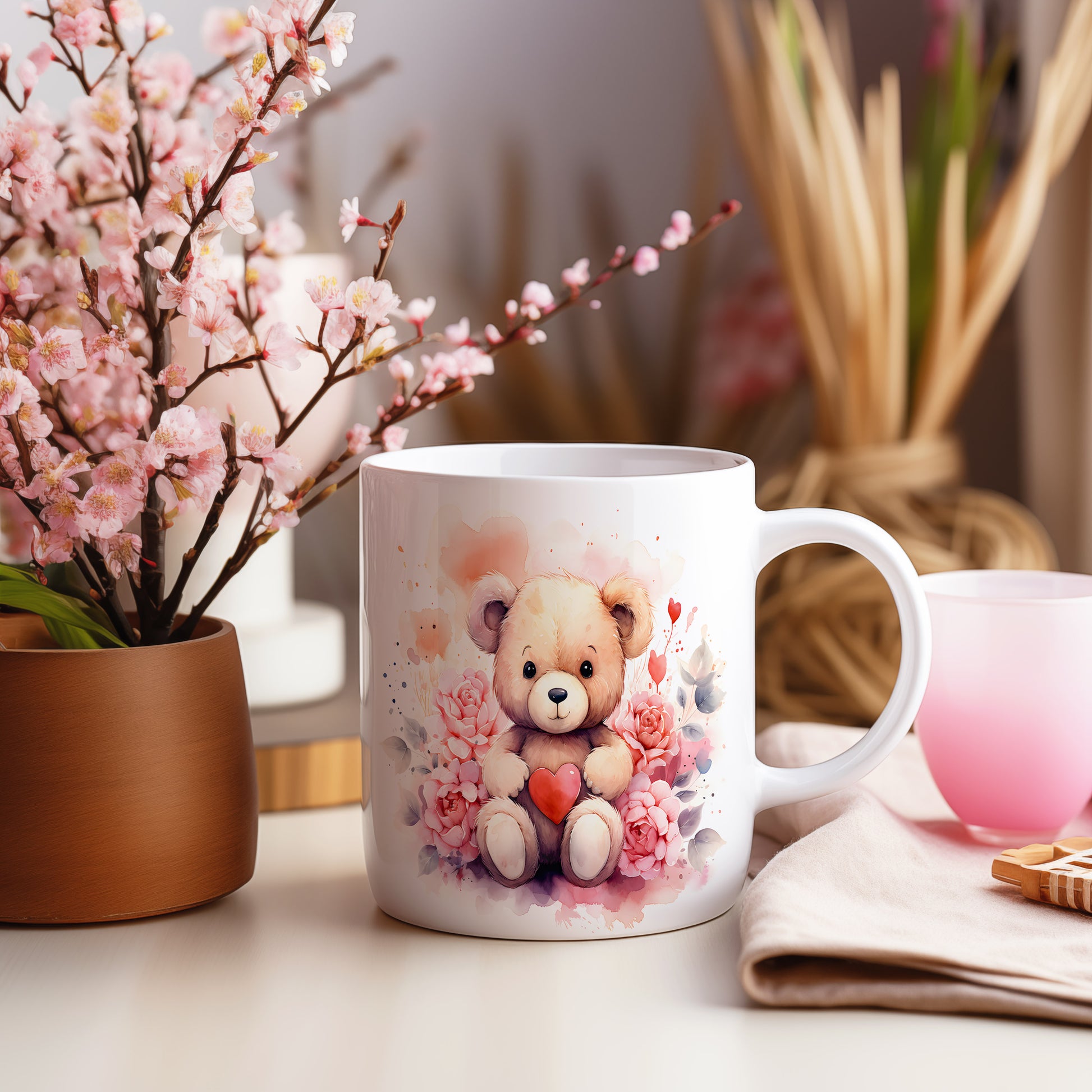 Objevte kouzlo roztomilého hrnku s medvídkem, který drží srdce. Tento hrnek je ideální pro každodenní pohodu a navodí pocit klidu. Jeho pastelové květiny dodají vašemu dni jemnost a radost.