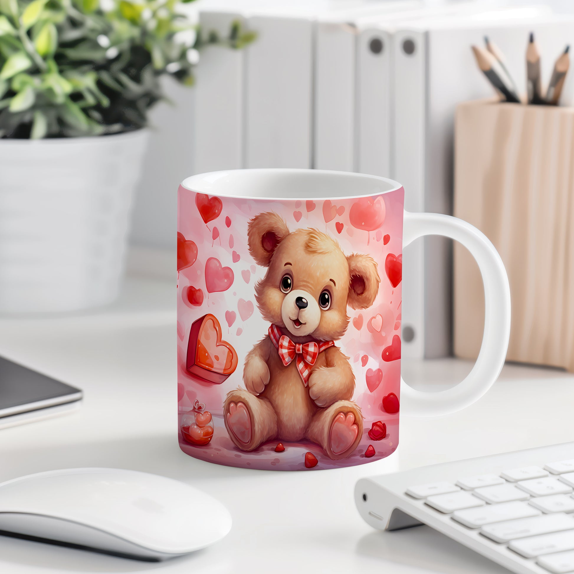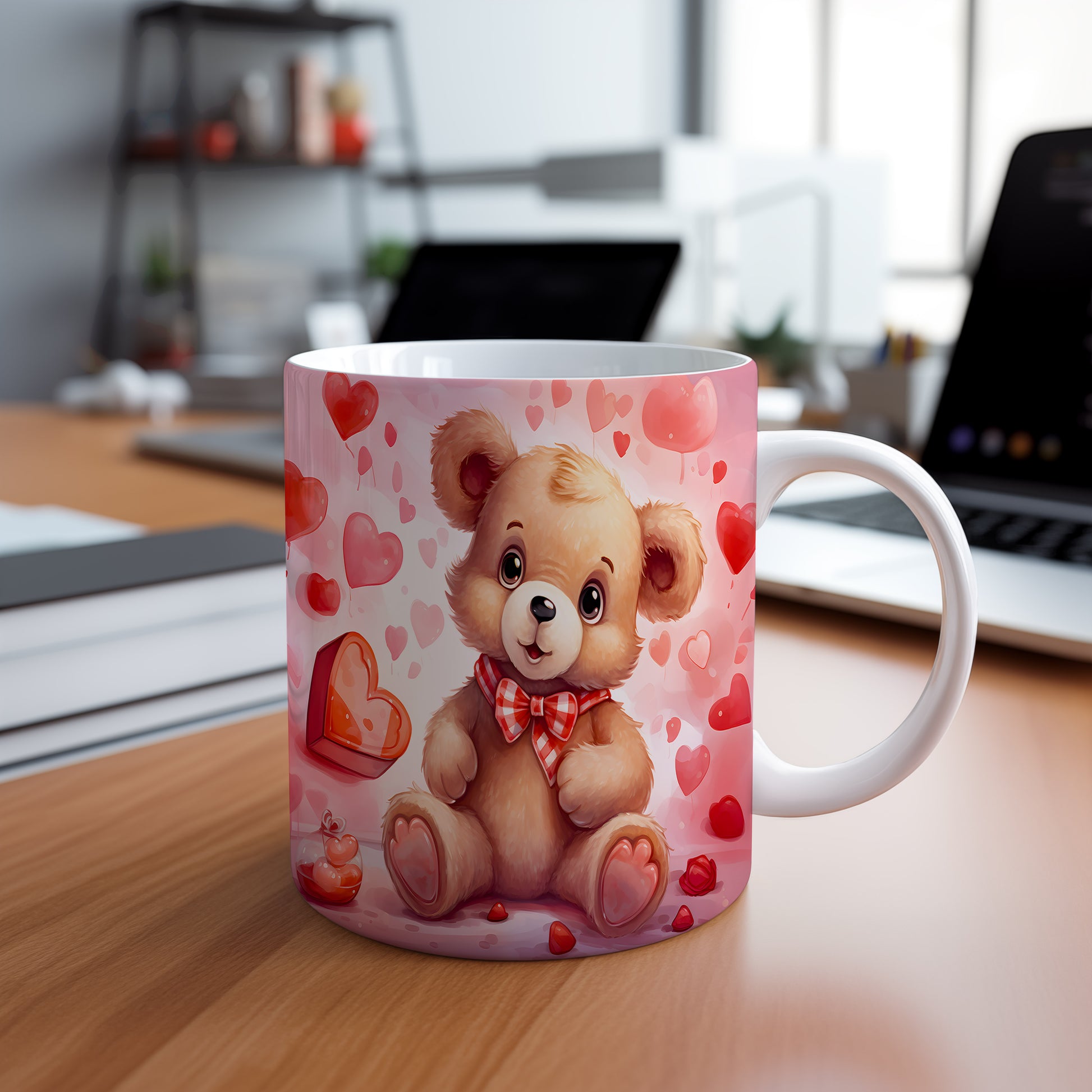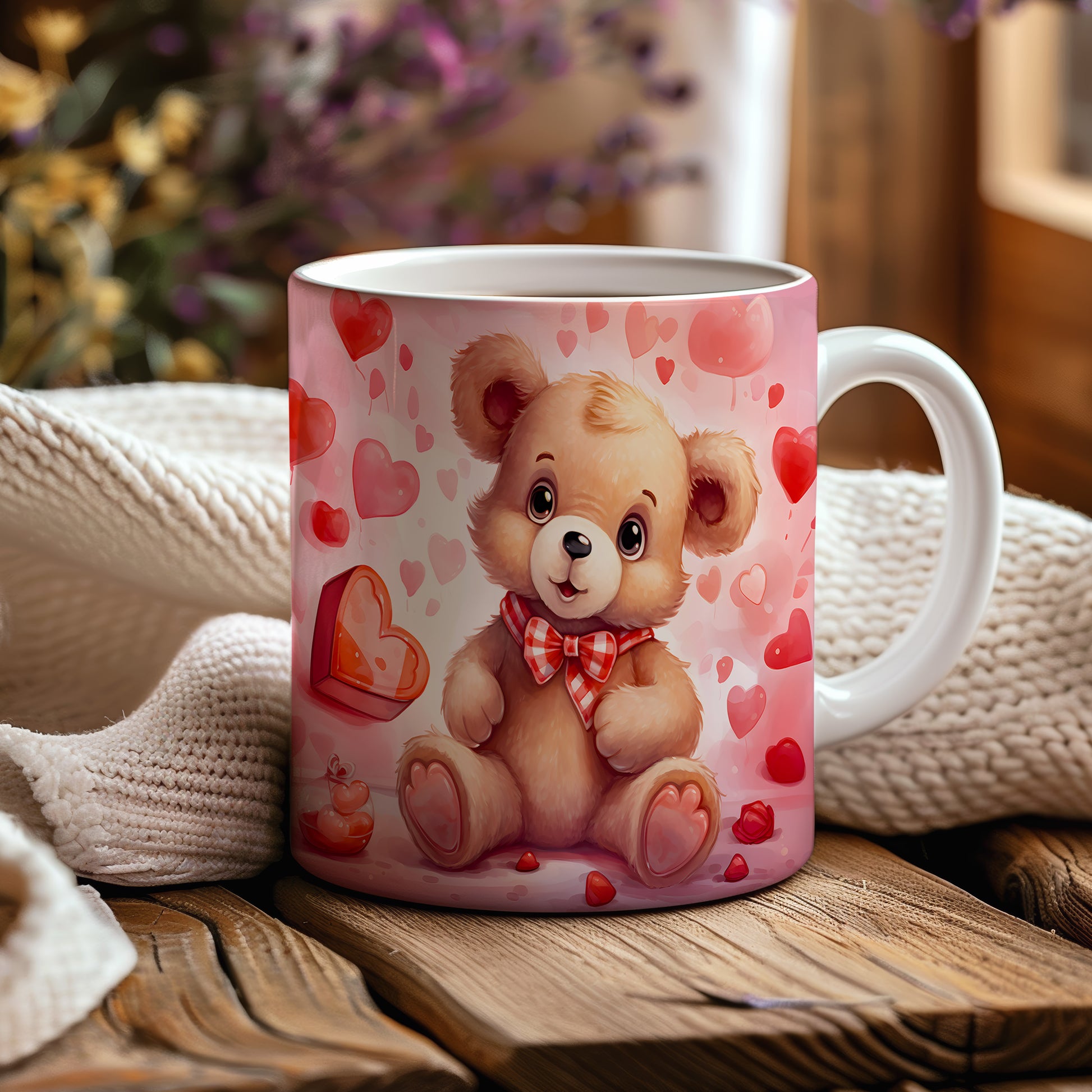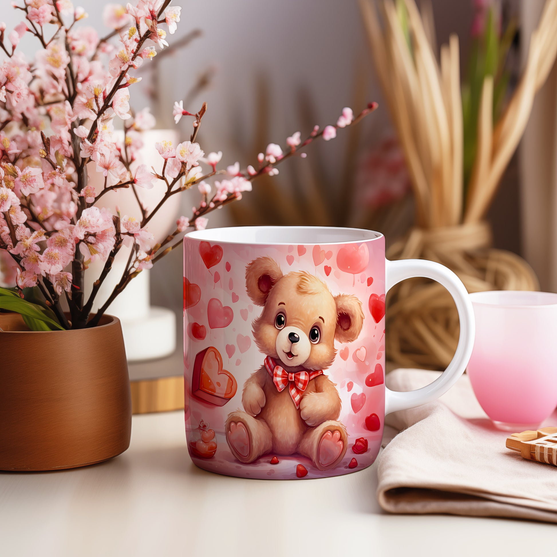 Objevte kouzlo roztomilého hrnku s medvídkem a srdíčky. Tento růžový motiv přináší radost a lásku do každého dne. Ideální dárek pro milované!