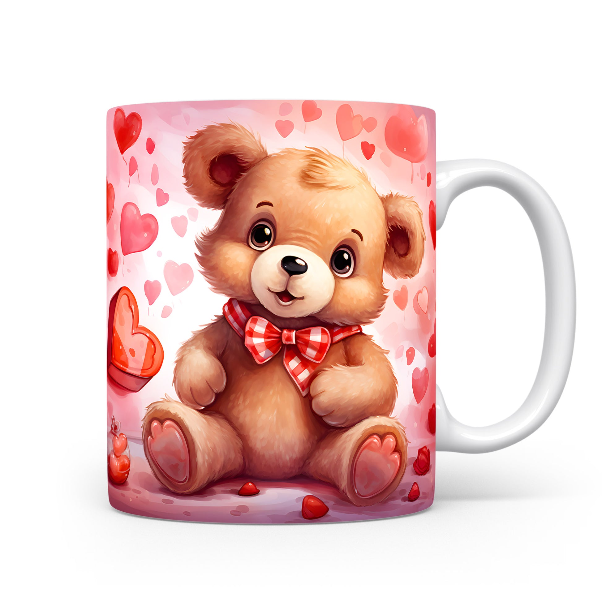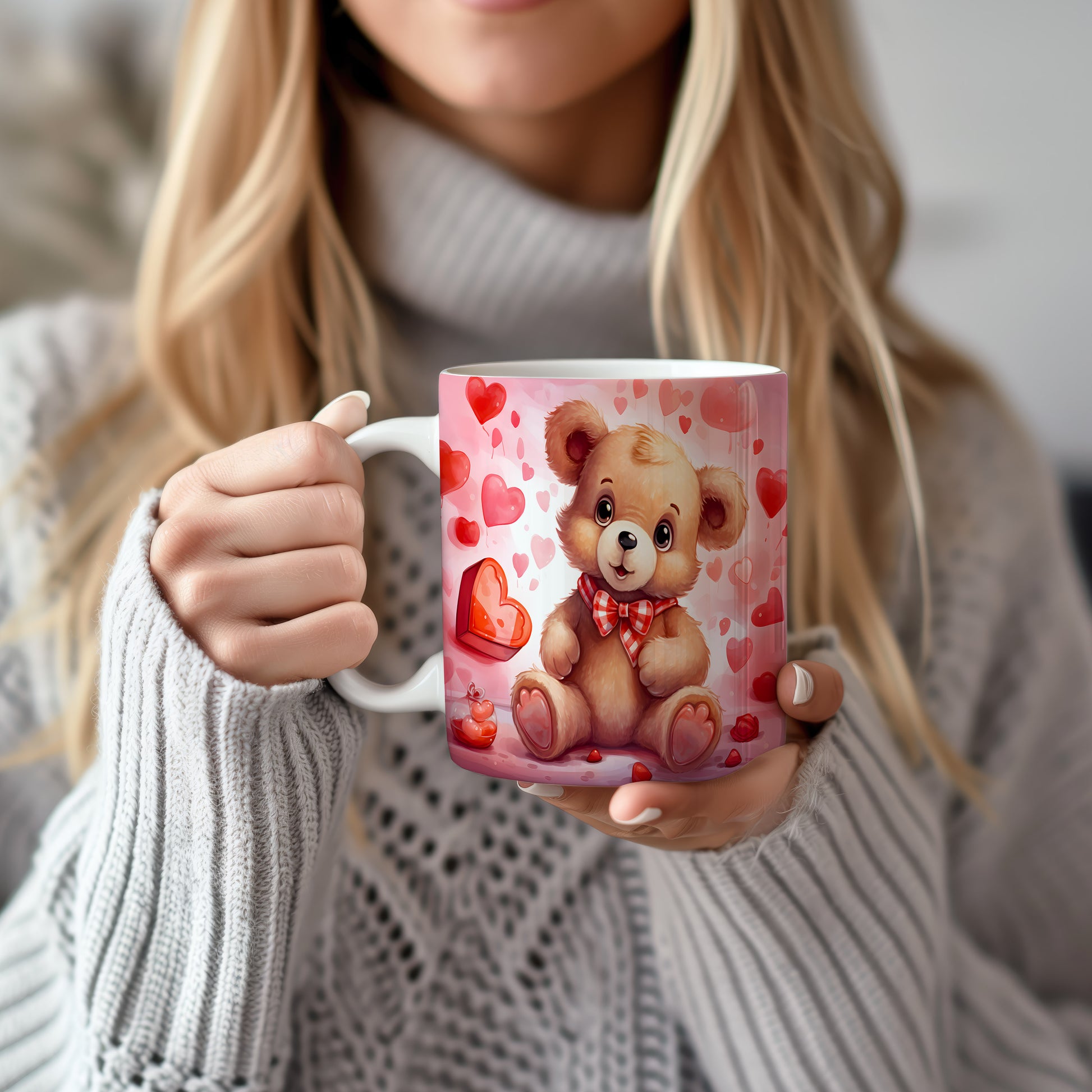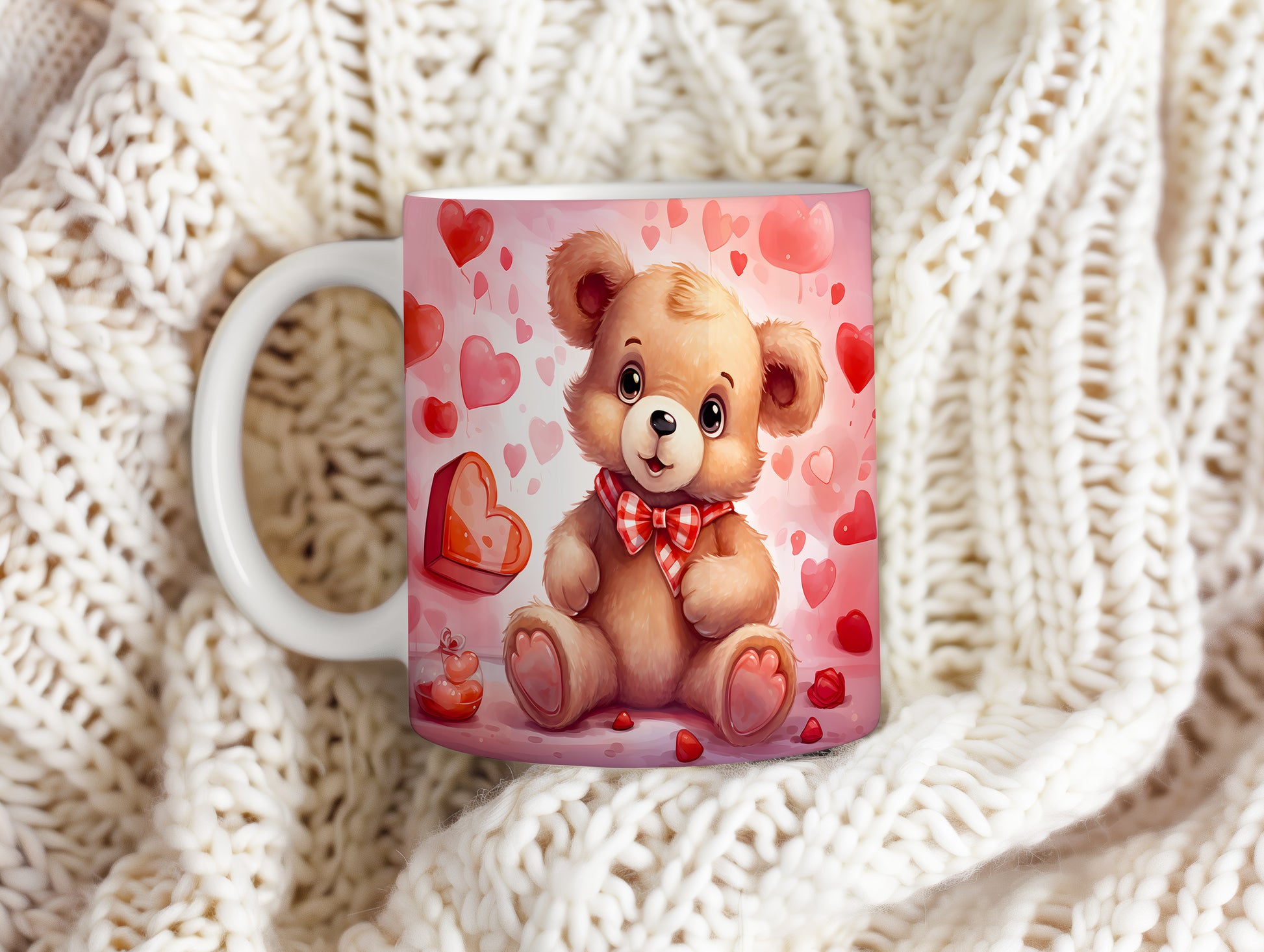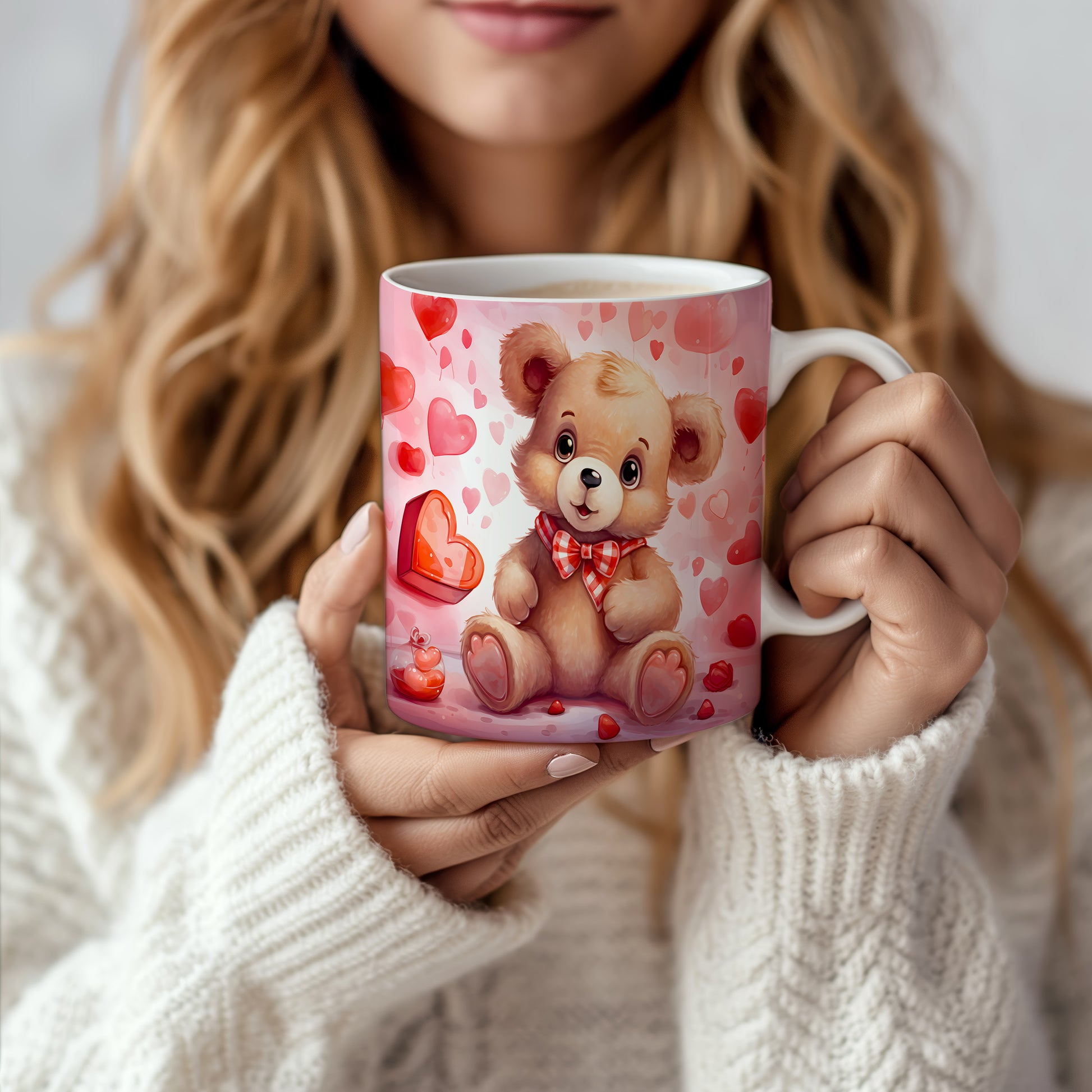 Objevte kouzlo roztomilého hrnku s medvídkem a srdíčky. Tento růžový motiv přináší radost a lásku do každého dne. Ideální dárek pro milované!