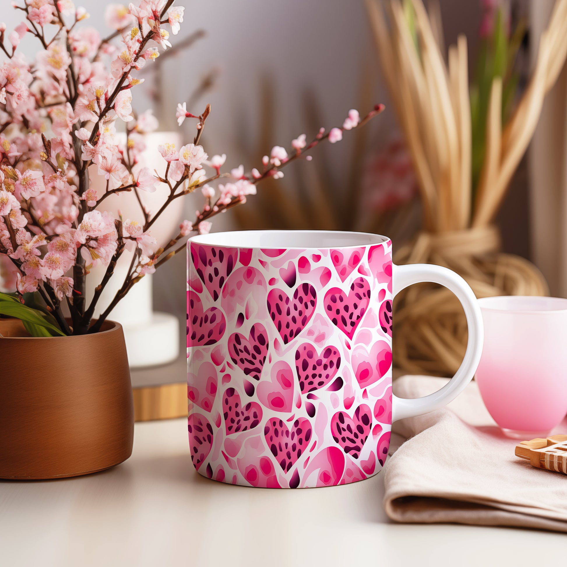Oslavte lásku s tímto okouzlujícím hrnkem, který je pokrytý růžovými srdci. Ideální pro romantické chvíle s vaším oblíbeným nápojem. Tento hrnek přinese do vašeho dne špetku radosti a vášně.