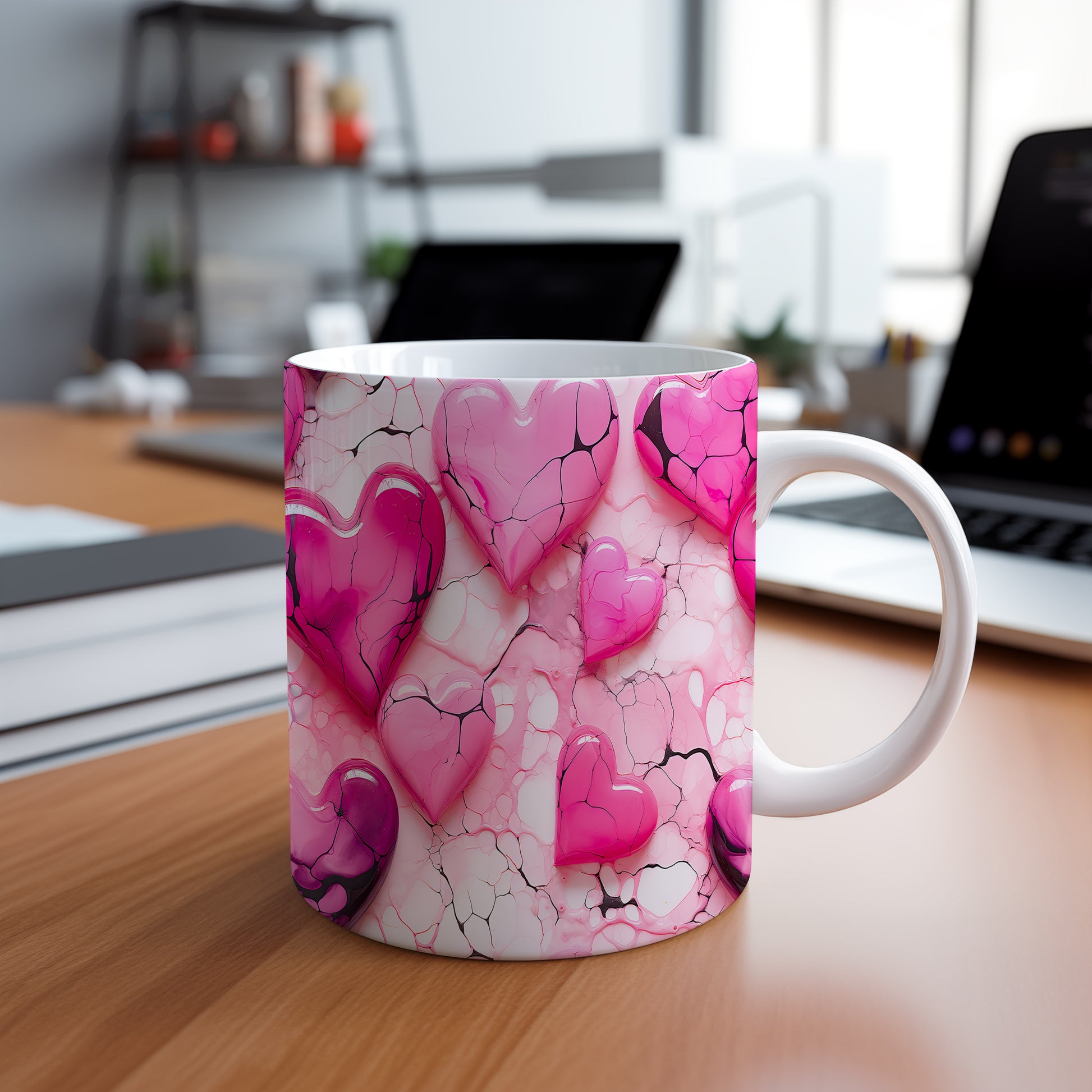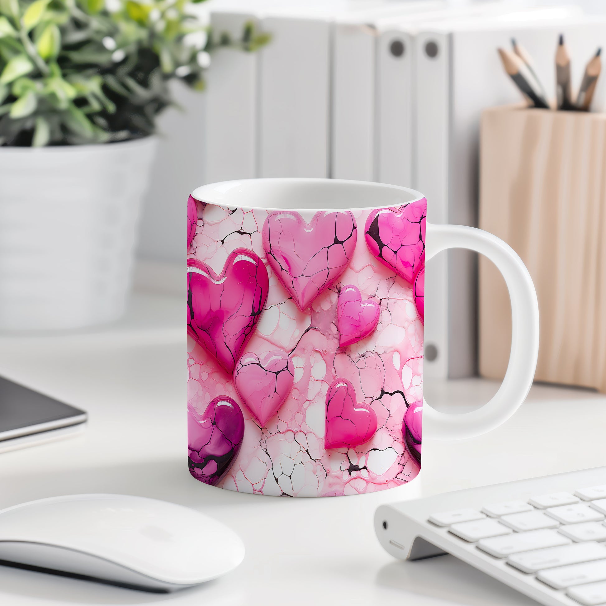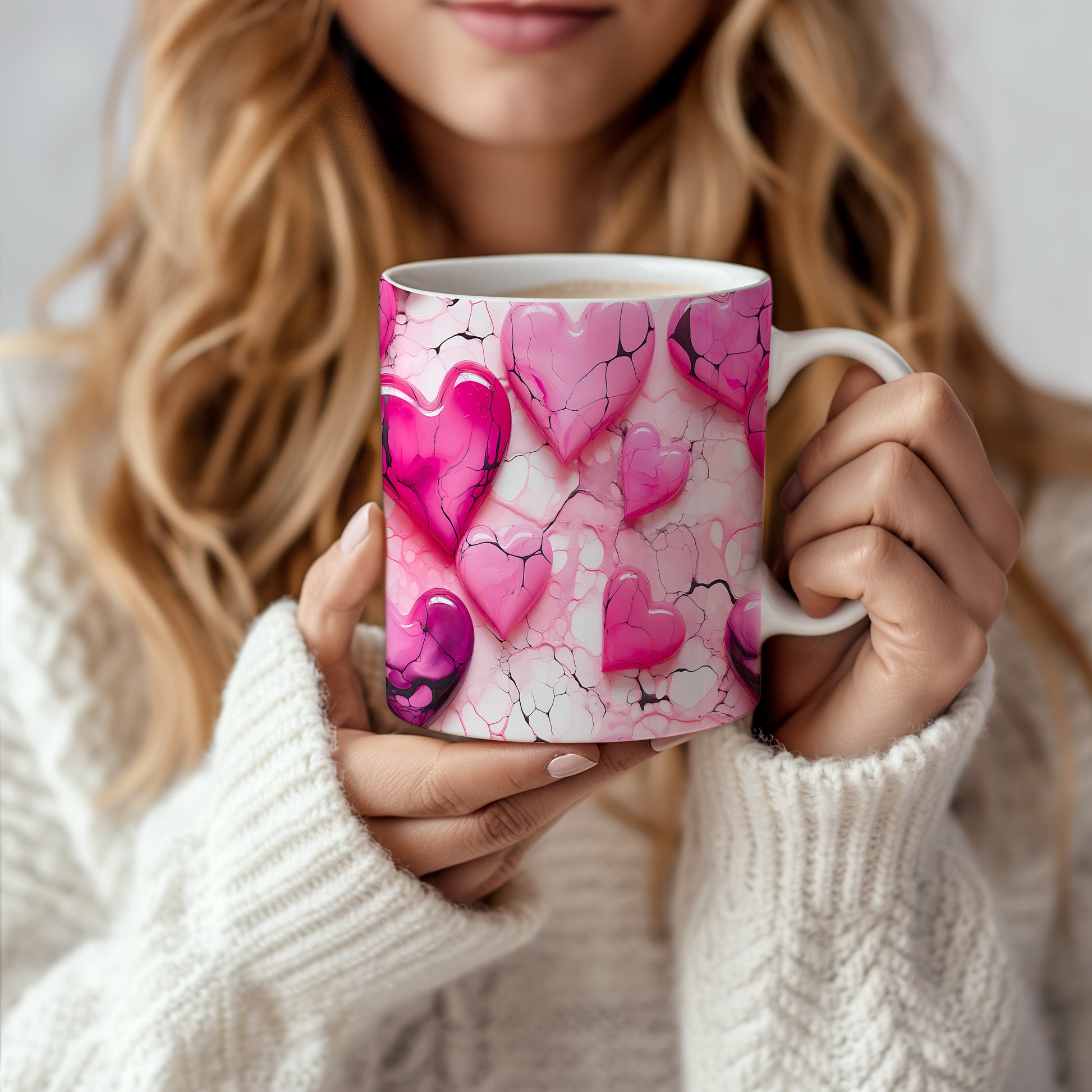Udělejte si radost s tímto hrnkem, který zaujme svým výrazným designem růžových srdcí na mramorovém pozadí. Perfektní pro romantické chvíle a každodenní potěšení. Přineste do svého dne kapku lásky a elegance.
