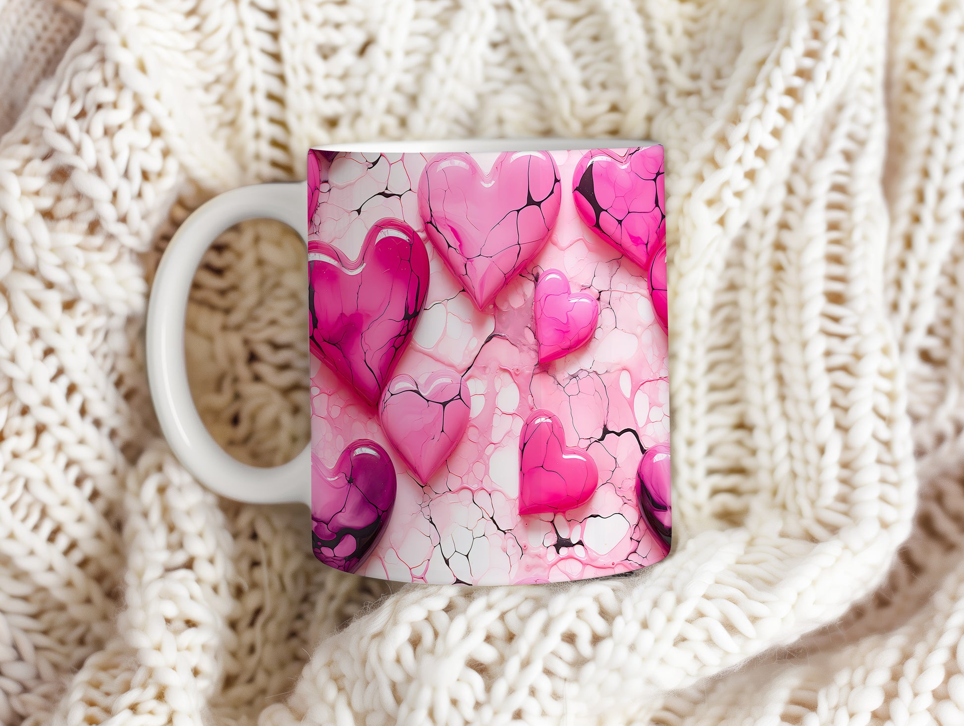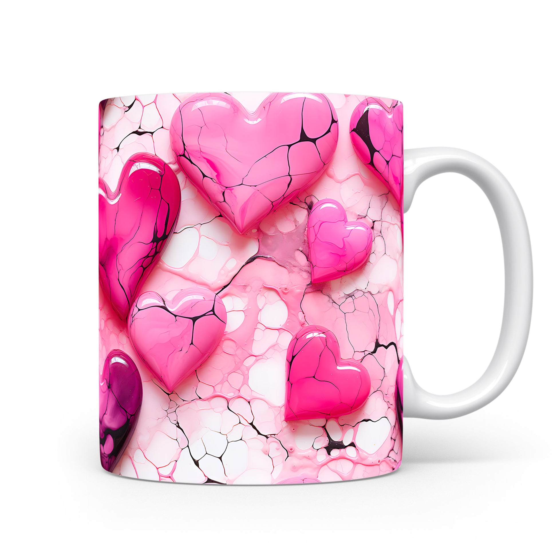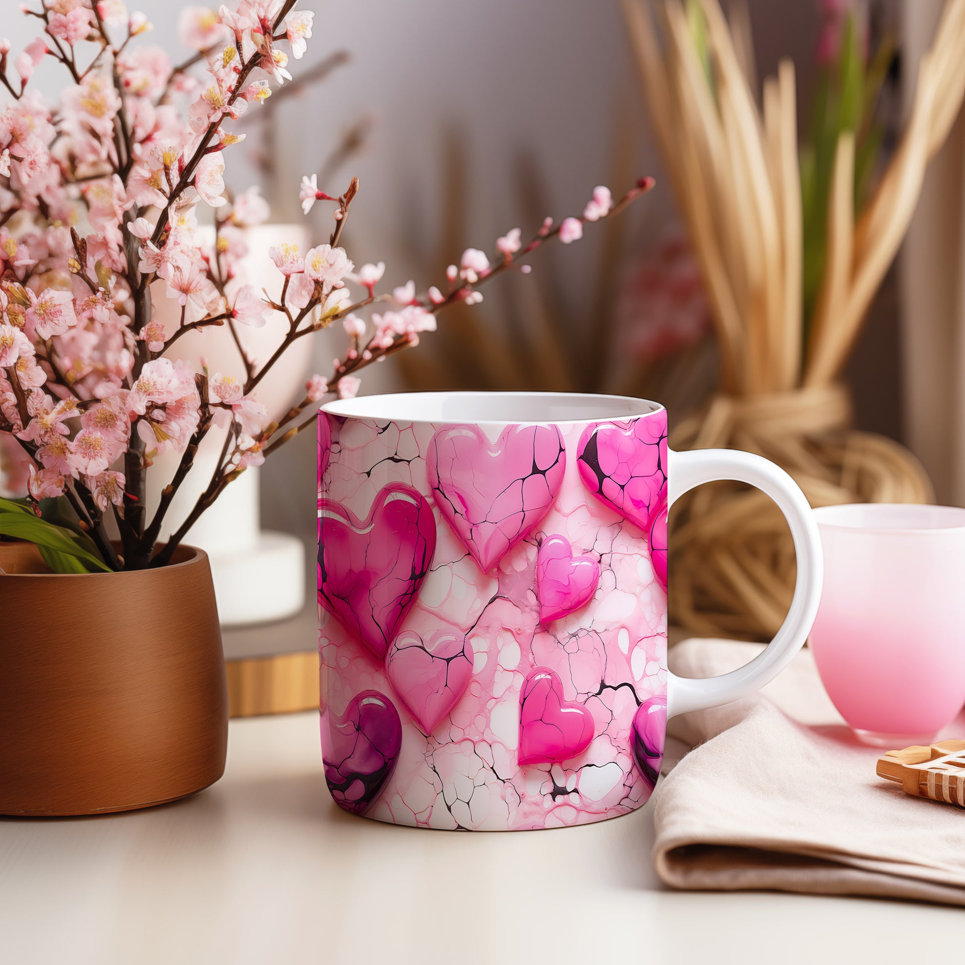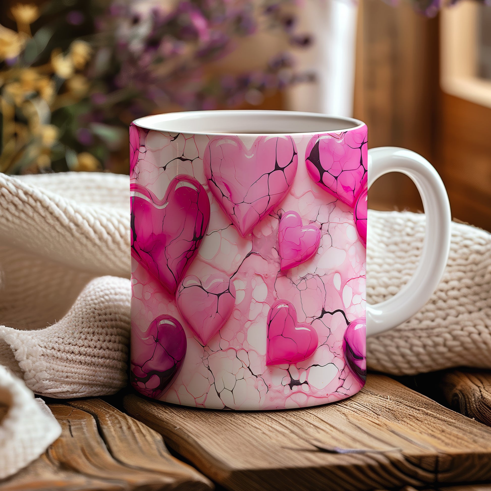 Udělejte si radost s tímto hrnkem, který zaujme svým výrazným designem růžových srdcí na mramorovém pozadí. Perfektní pro romantické chvíle a každodenní potěšení. Přineste do svého dne kapku lásky a elegance.