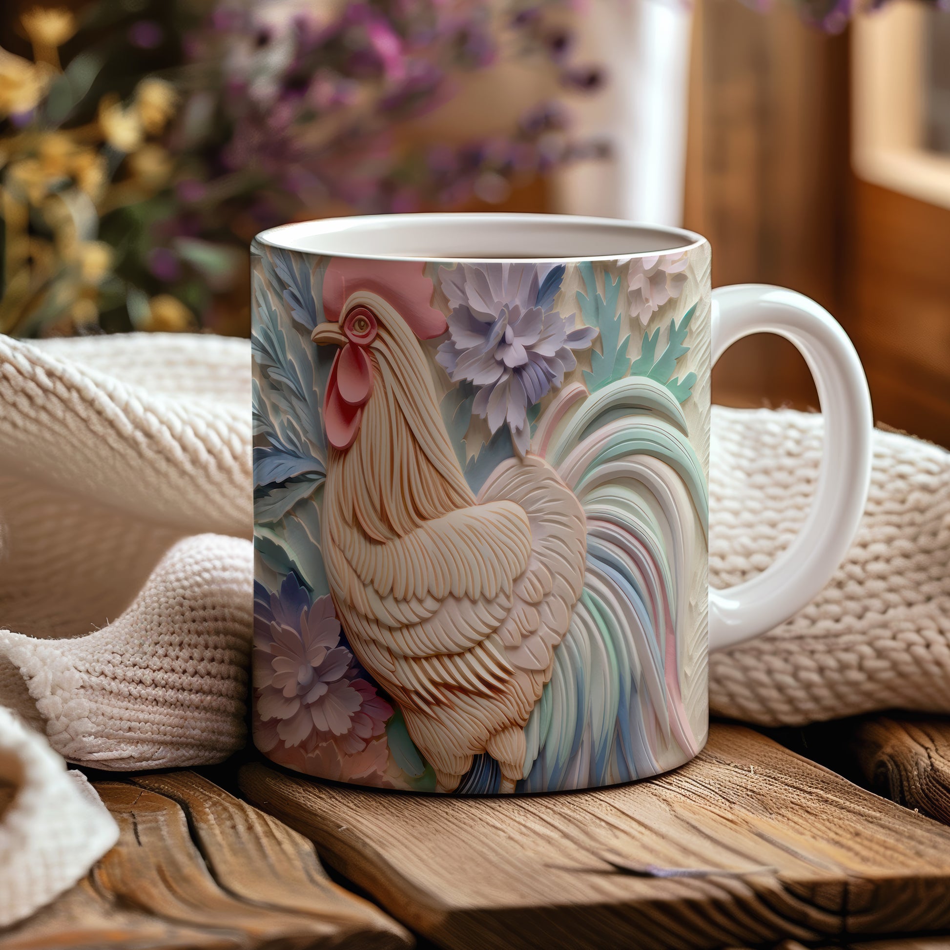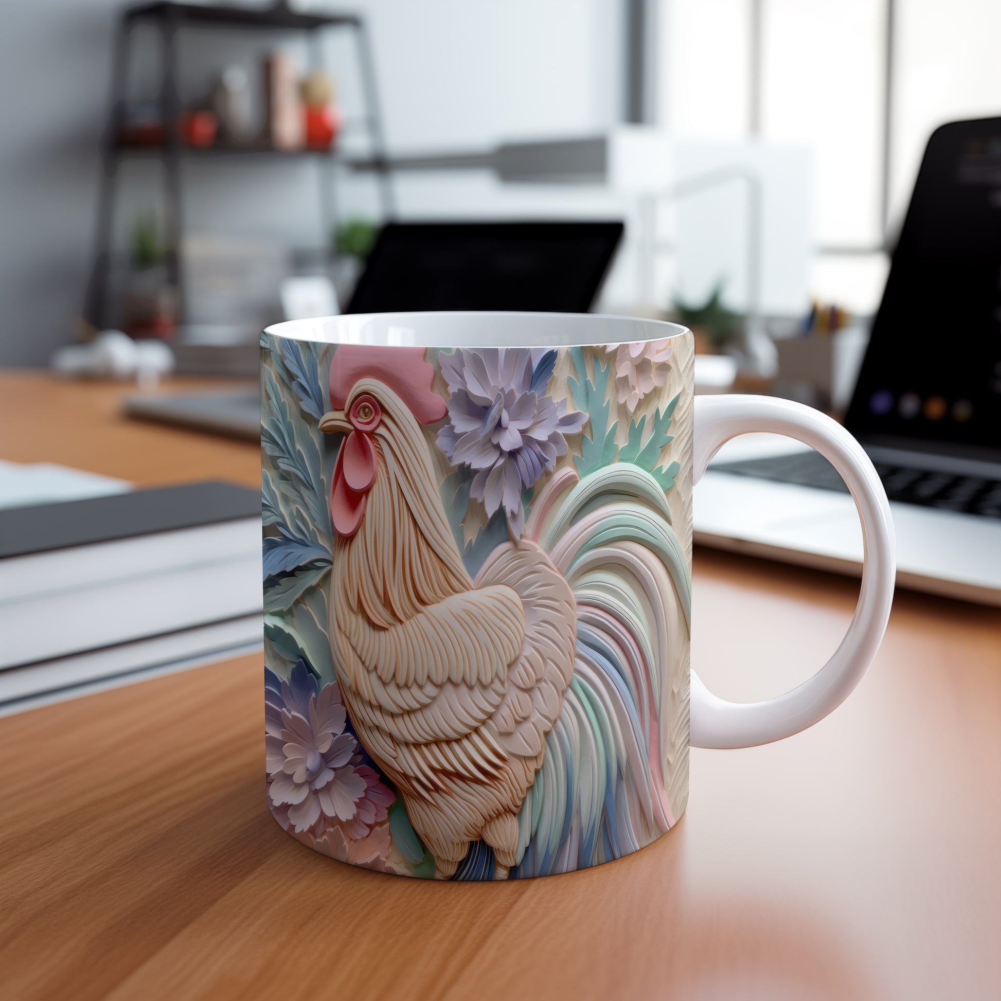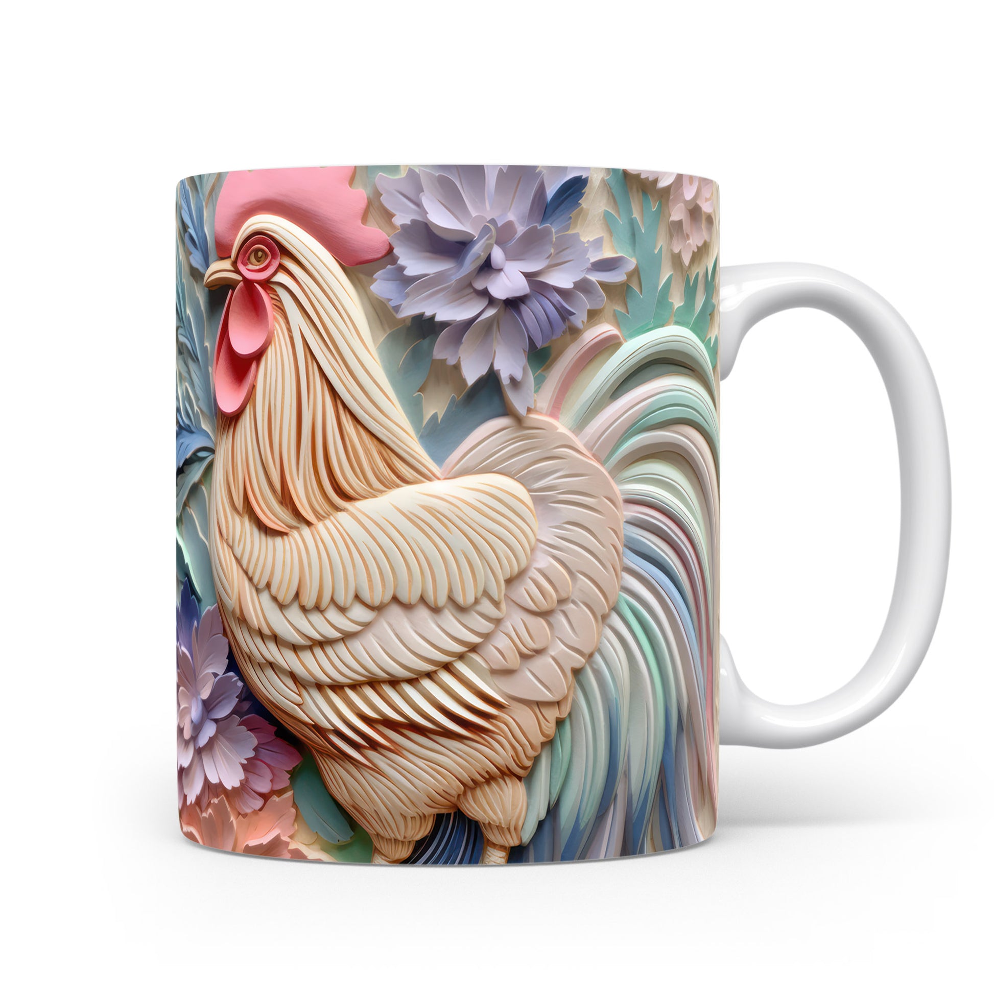 Tento hrnek zobrazuje detailní 3D motiv kohouta, který je obklopen květinami. Je ideální pro milovníky přírody a skvělým dárkem pro každého, kdo ocení originální design. Materiál: keramika. Objem: 330 ml. Vhodné do myčky i mikrovlnky. Používání tohoto hrnku přináší radost z každého doušku.