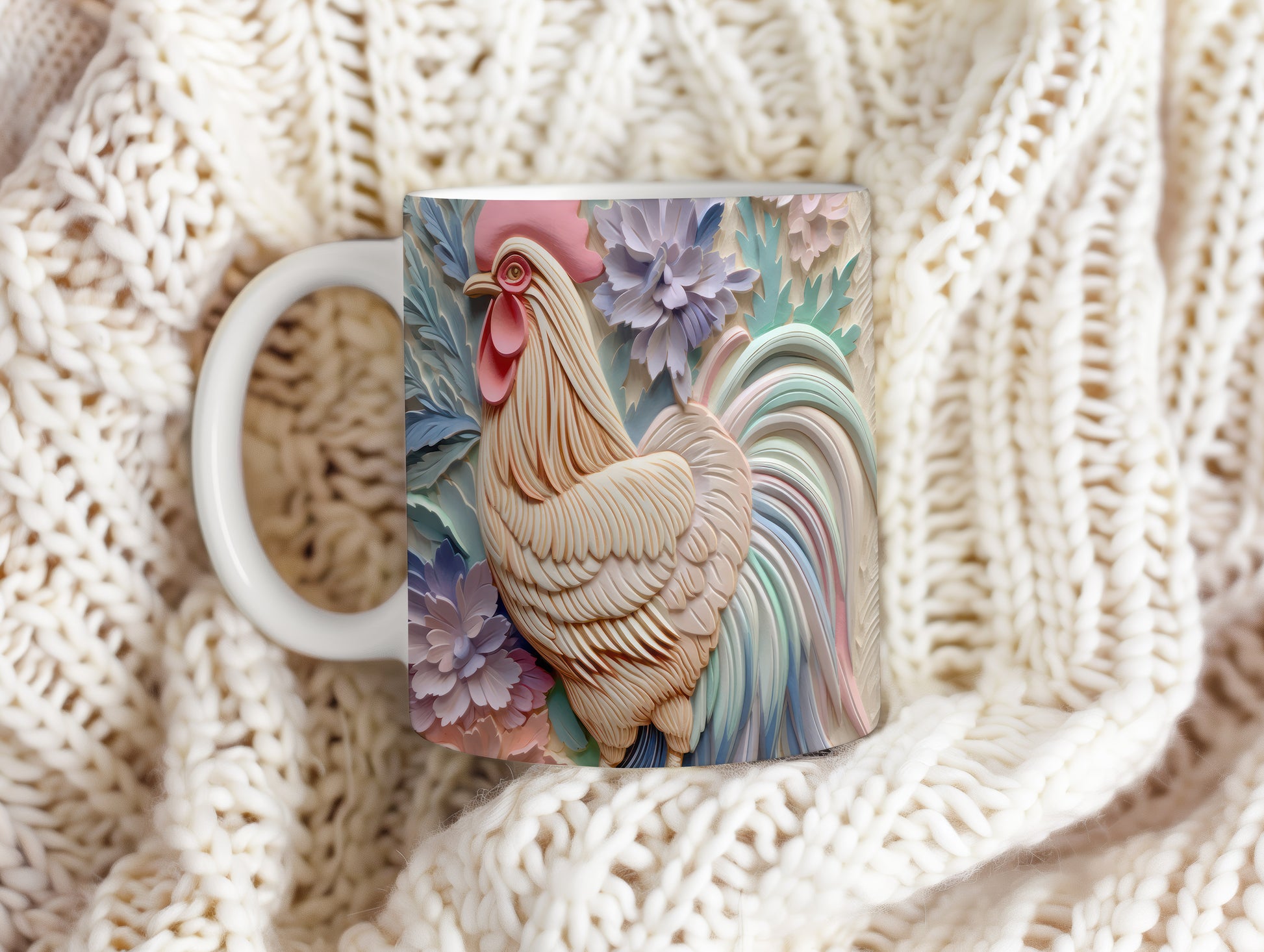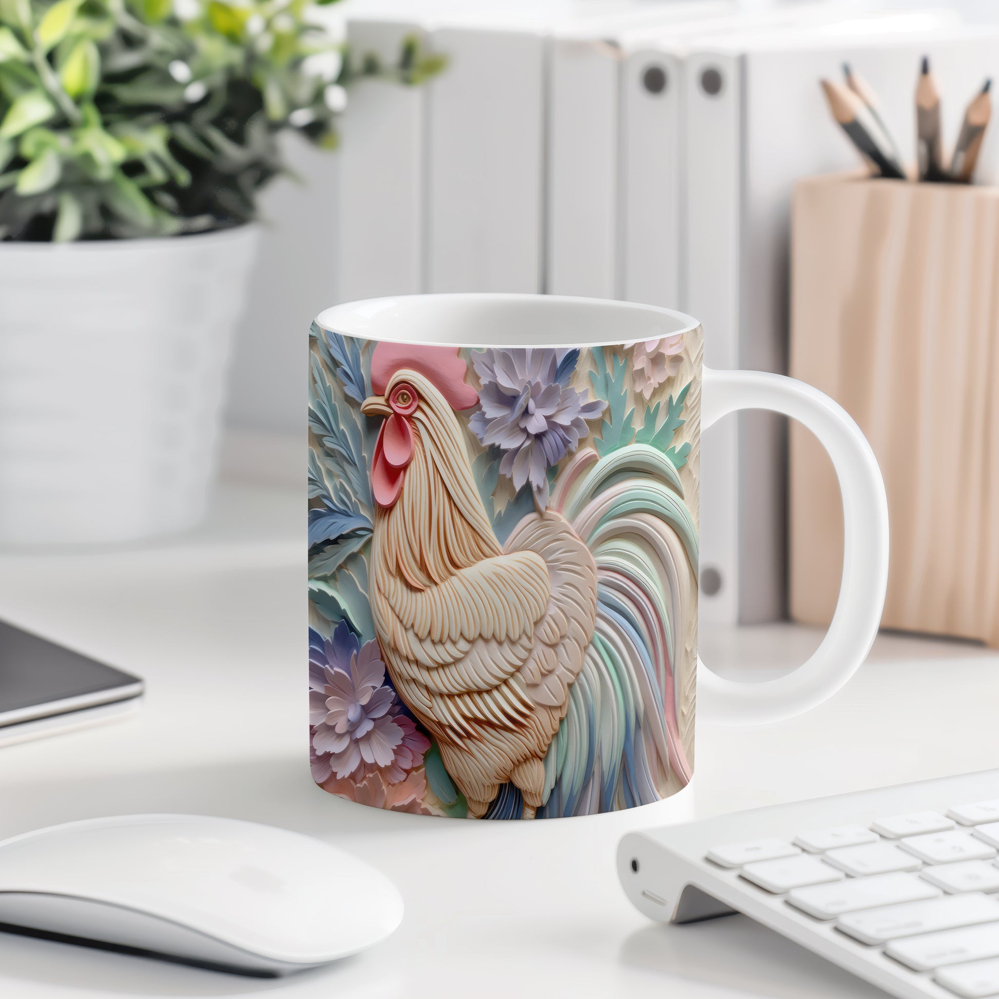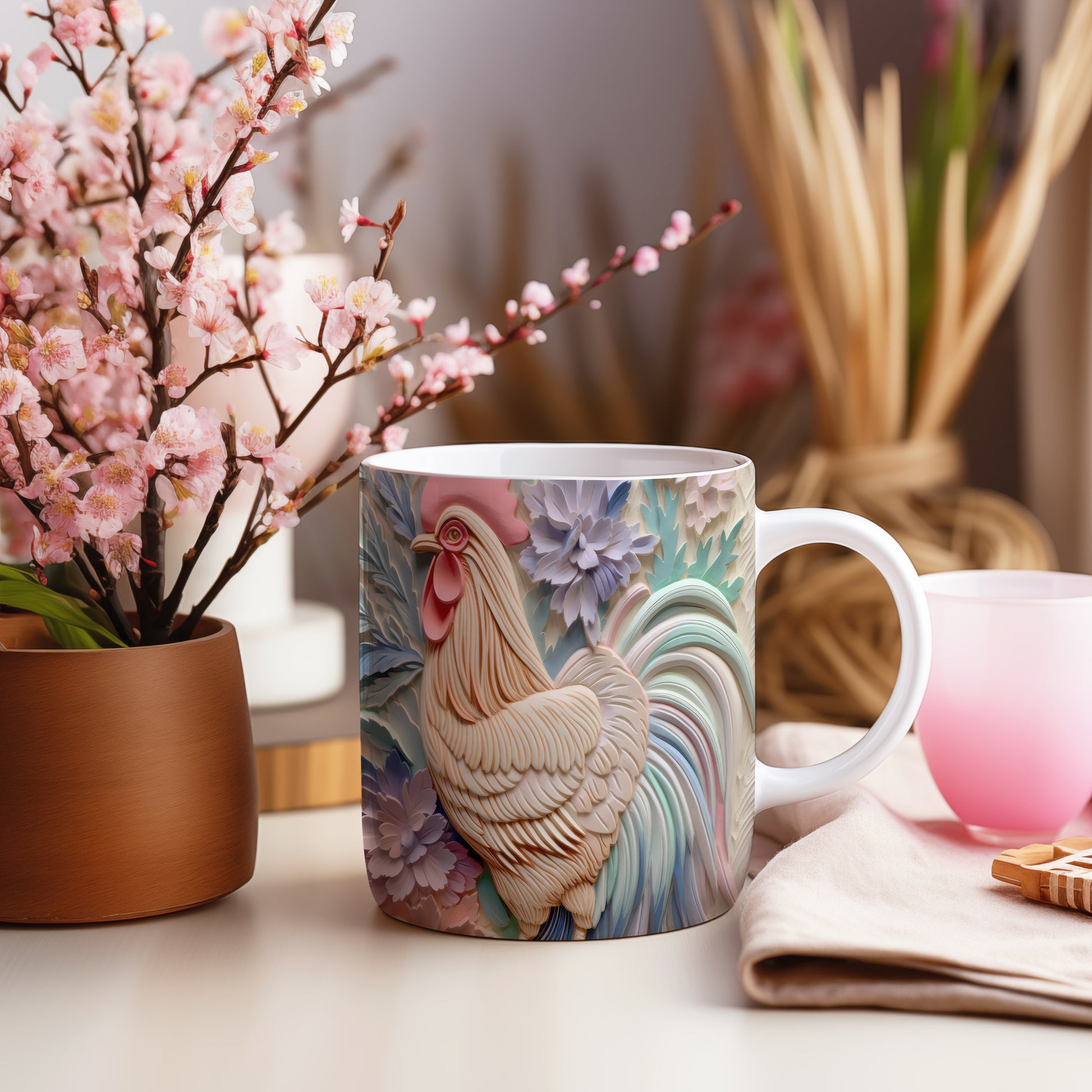 Tento hrnek zobrazuje detailní 3D motiv kohouta, který je obklopen květinami. Je ideální pro milovníky přírody a skvělým dárkem pro každého, kdo ocení originální design. Materiál: keramika. Objem: 330 ml. Vhodné do myčky i mikrovlnky. Používání tohoto hrnku přináší radost z každého doušku.