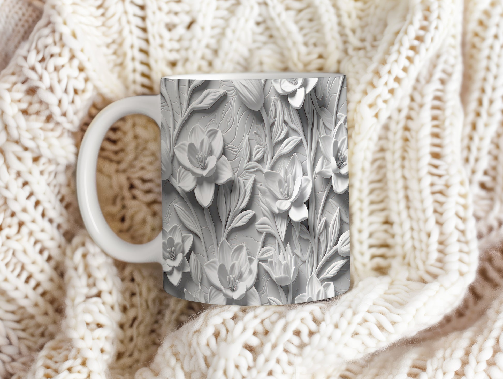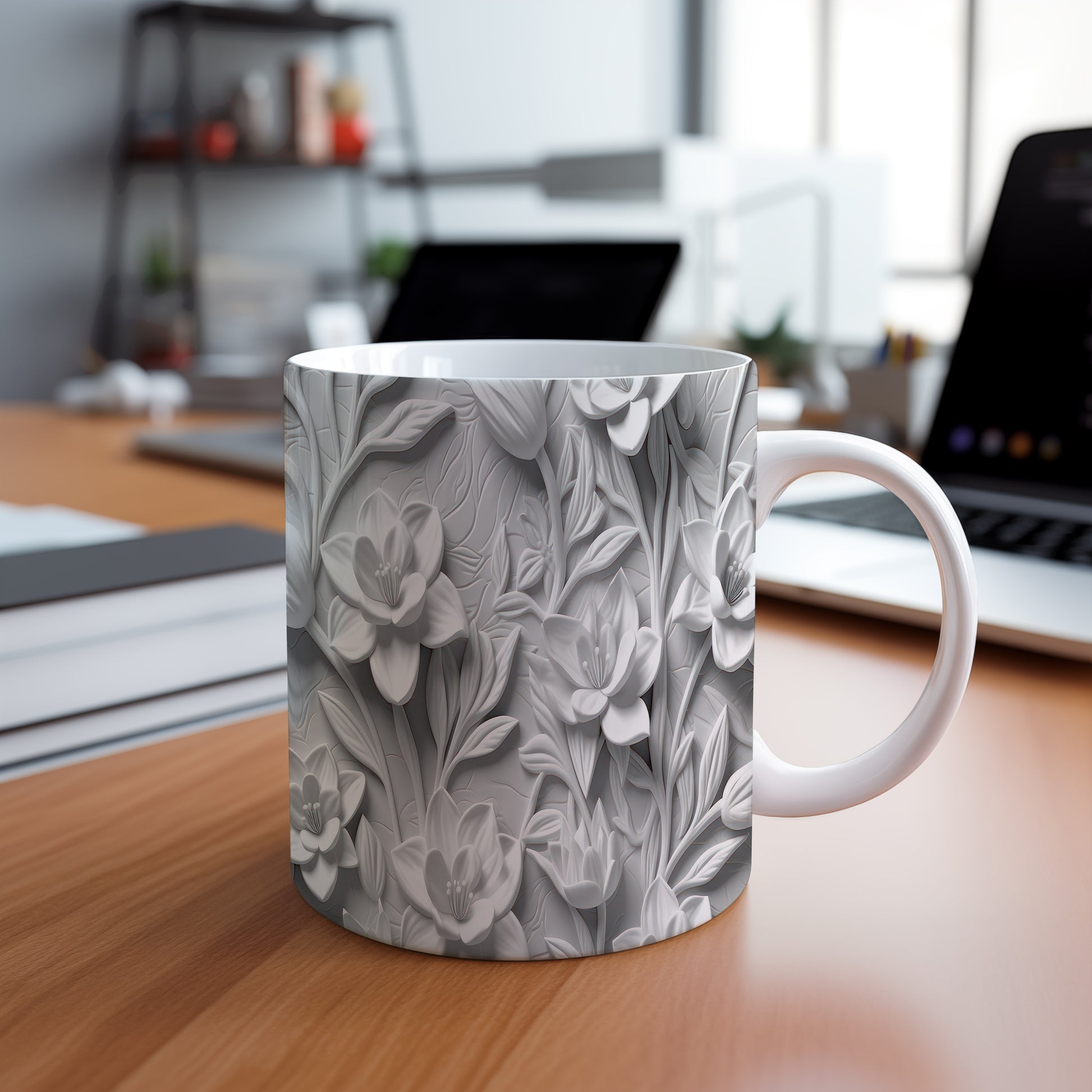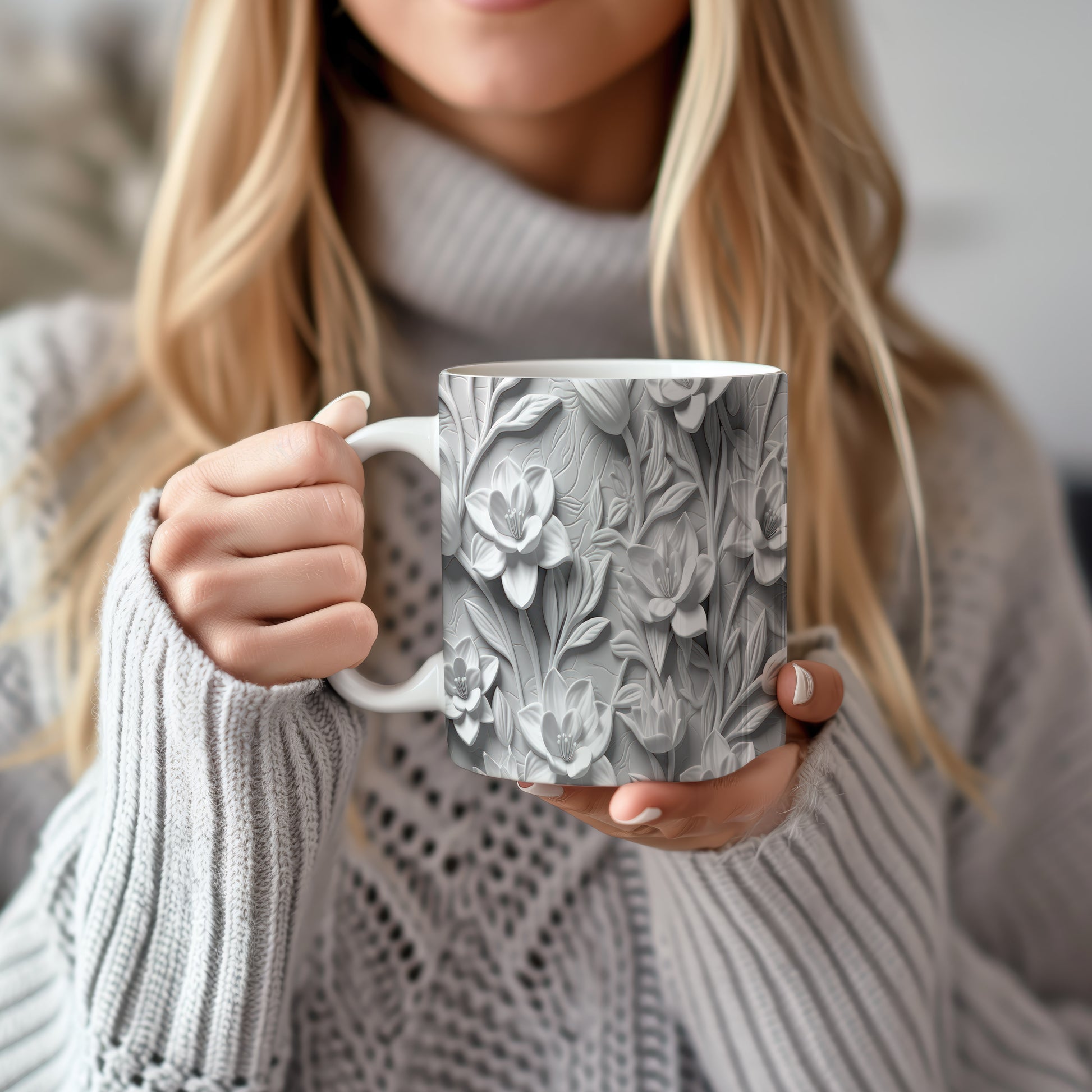 Hrnek s 3D květinovým vzorem – originálním motivem