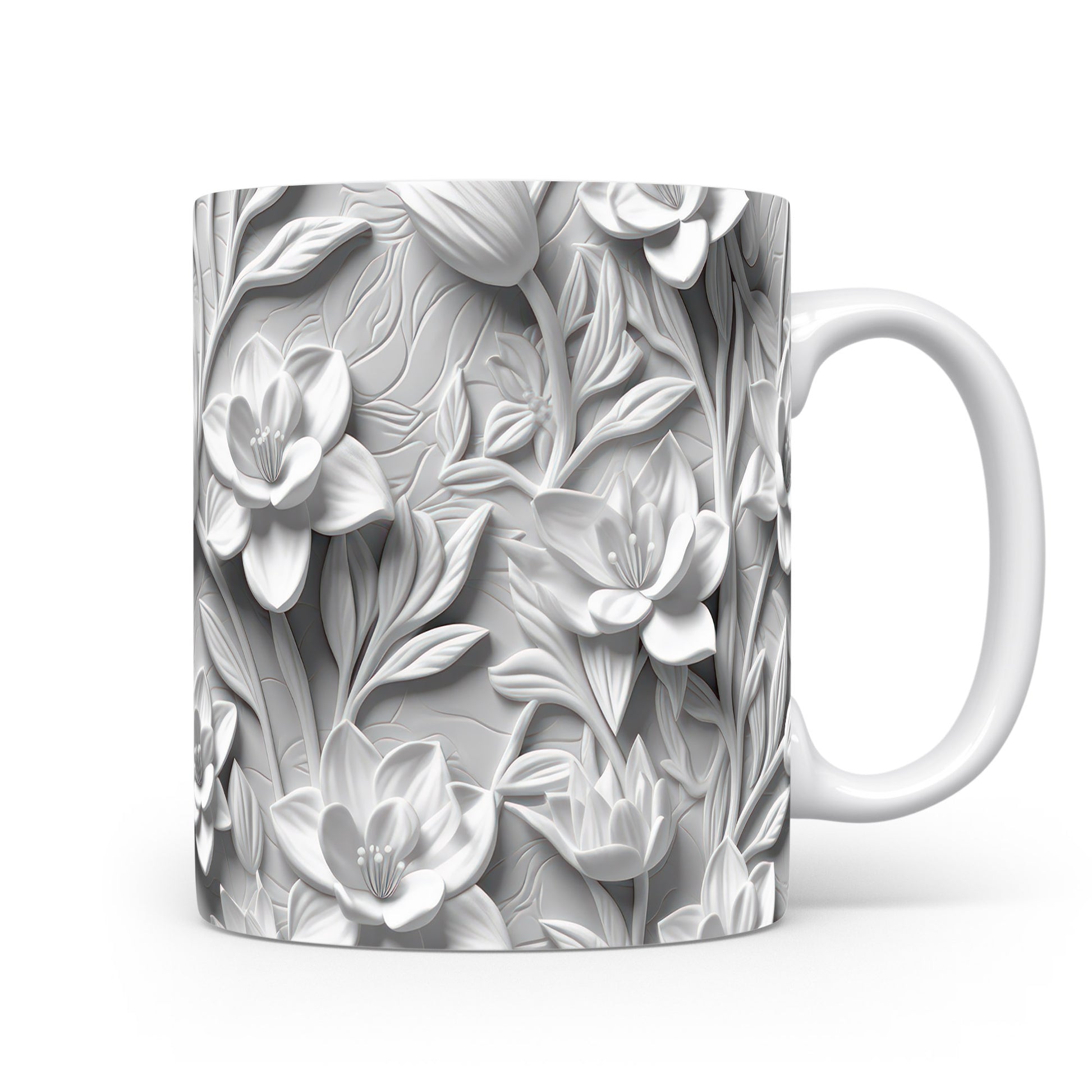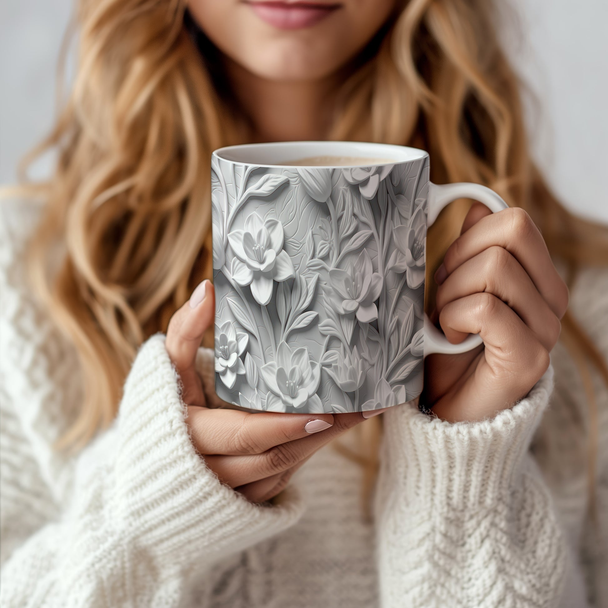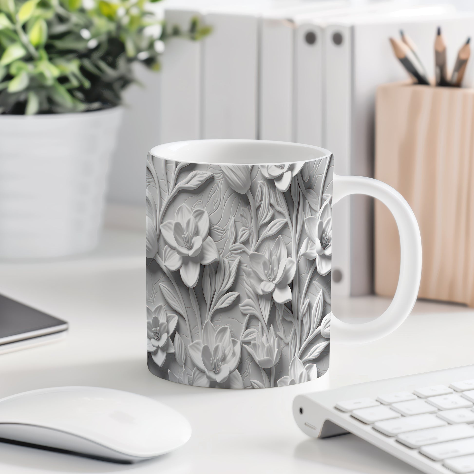 Hrnek s 3D květinovým vzorem – originálním motivem