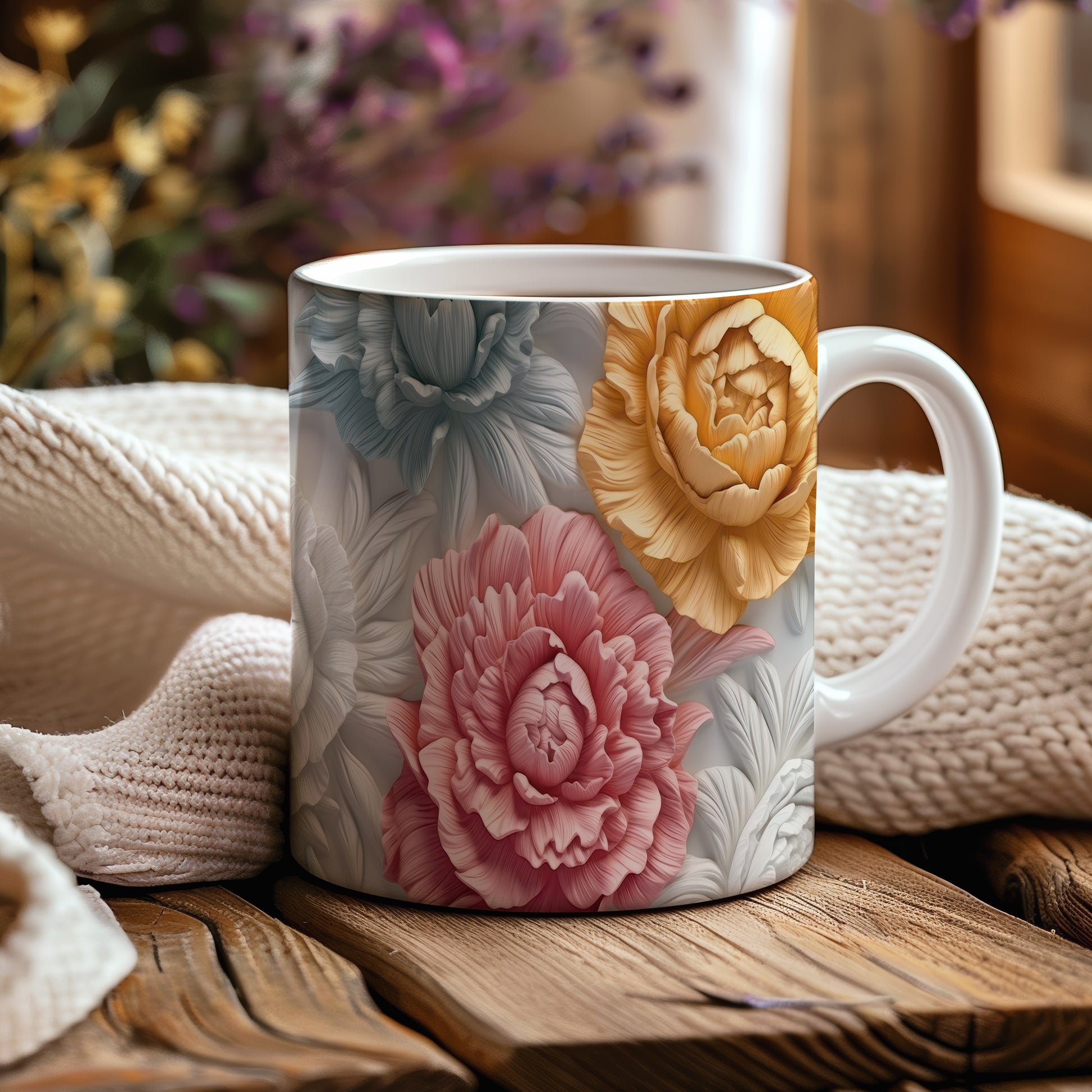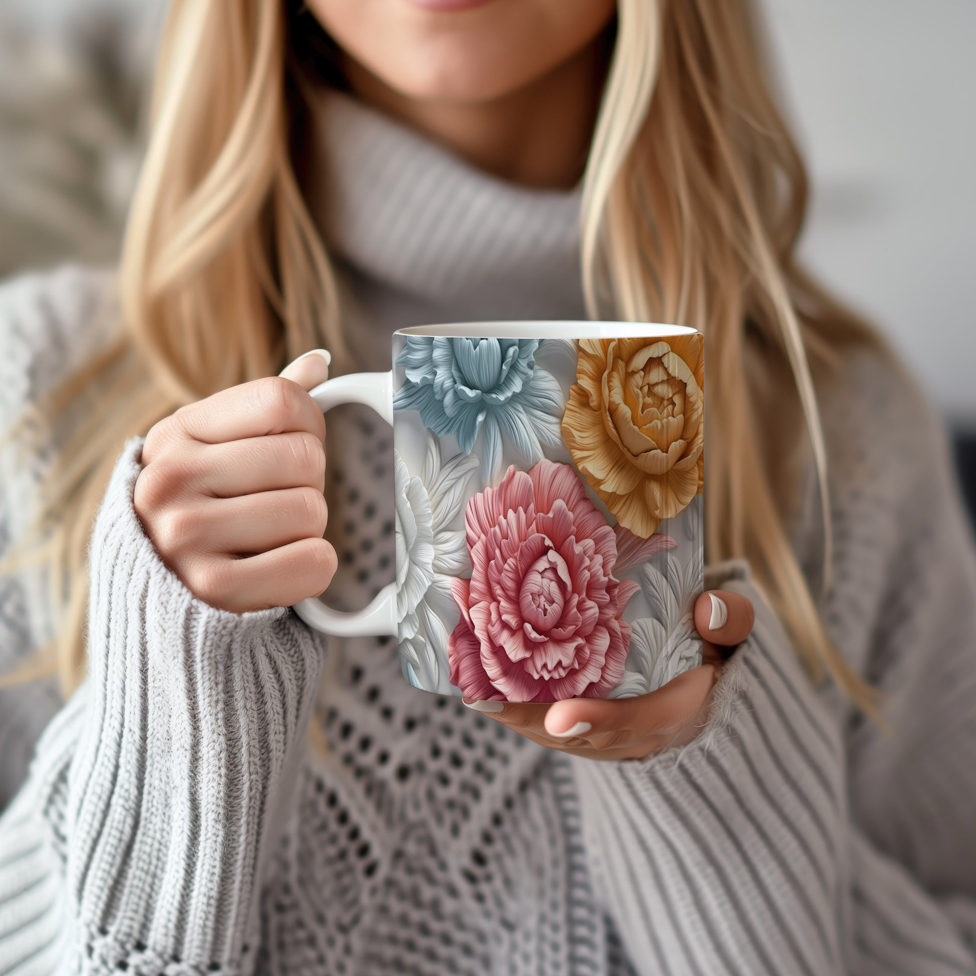 Tento keramický hrnek s 3D květinovými motivy přináší do vašeho dne krásu a barevnost. Je ideální pro milovníky přírody a skvělým dárkem pro přátele či rodinu. Materiál: keramika. Objem: 330 ml. Vhodné do myčky i mikrovlnky. Používáním tohoto hrnku si užijete nejen estetický zážitek, ale také pohodlné pití vašeho oblíbeného nápoje.
