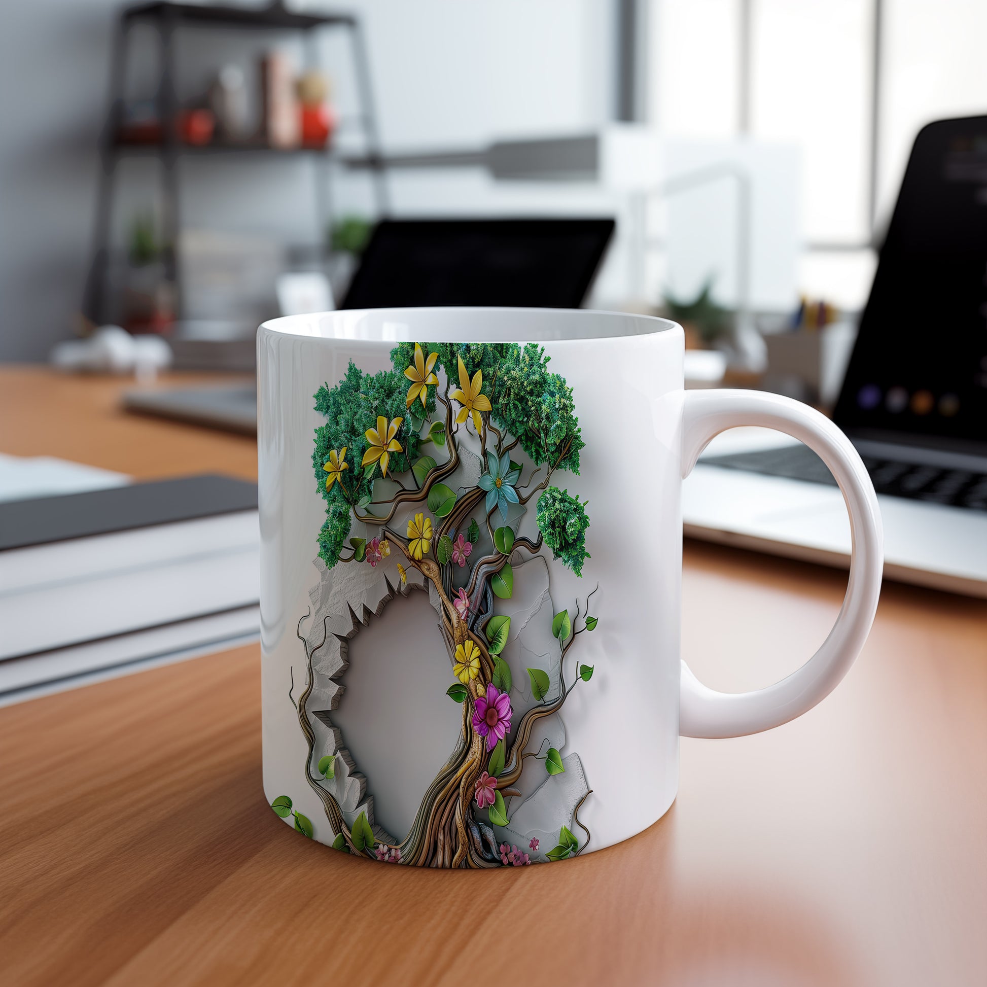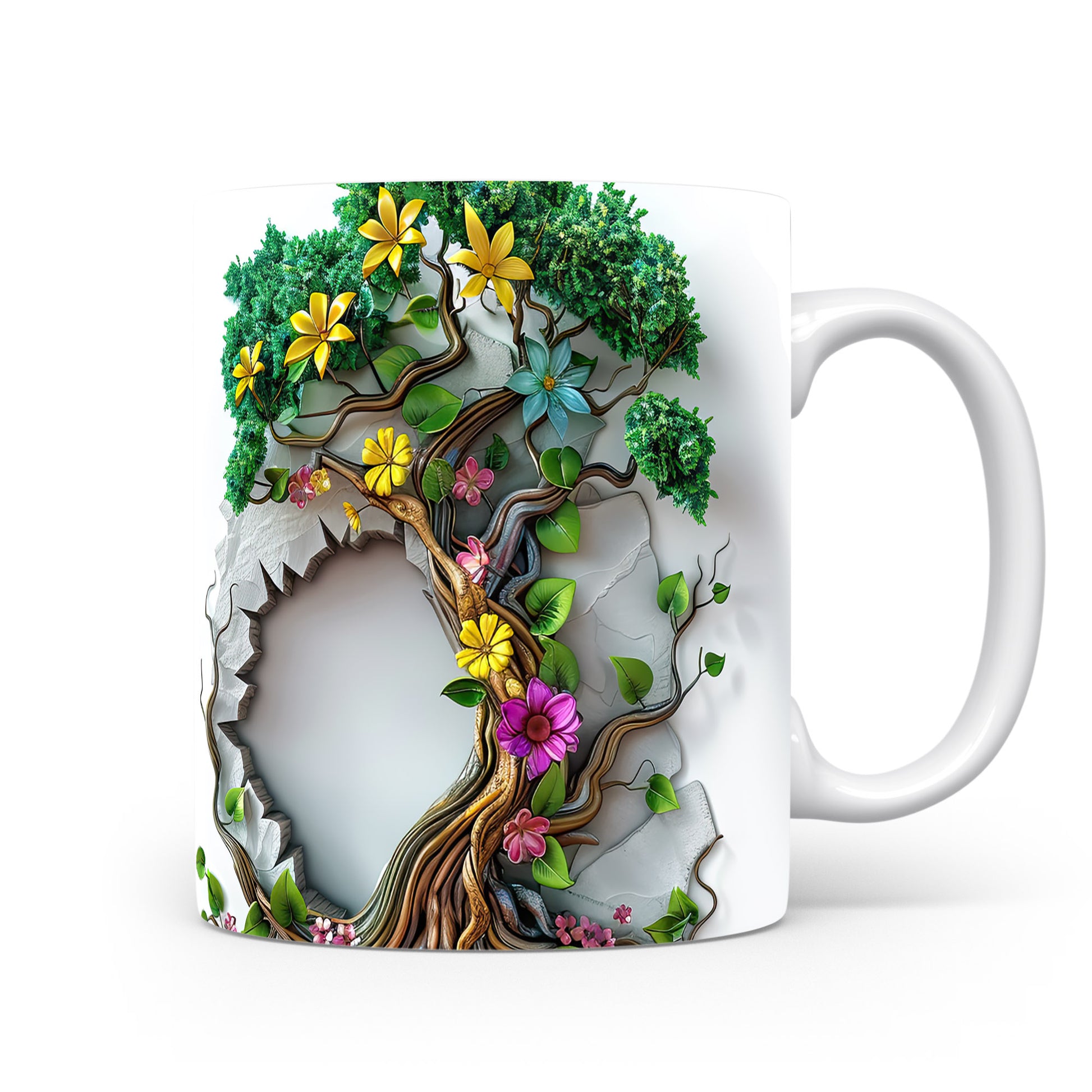 Tento hrnek zobrazuje krásný 3D motiv stromu s květinami a listy. Je ideální pro milovníky přírody a skvělým dárkem pro přátele či rodinu. Materiál: keramika. Objem: 330 ml. Vhodné do myčky i mikrovlnky. Používání tohoto hrnku přináší radost z každého doušku.