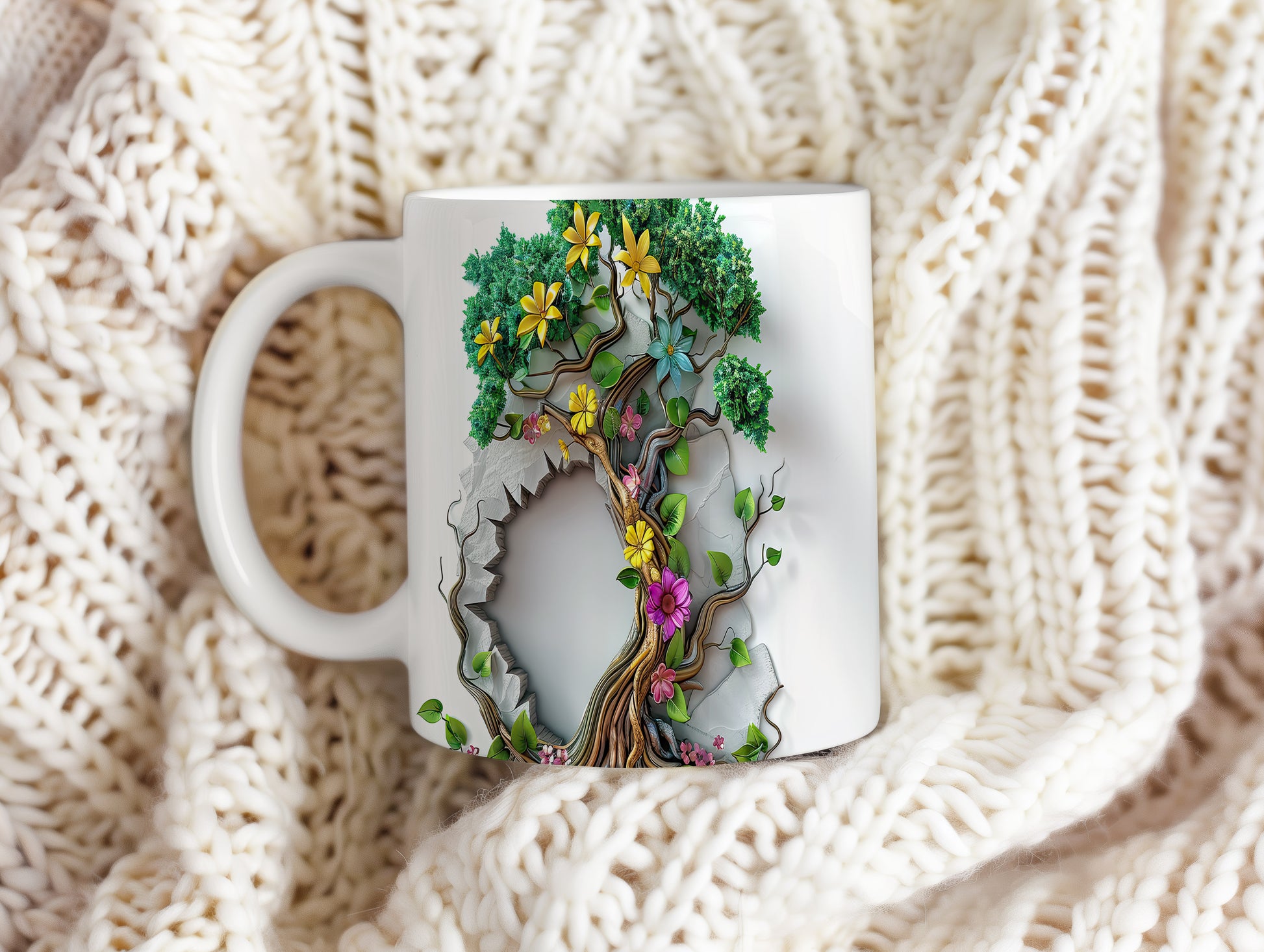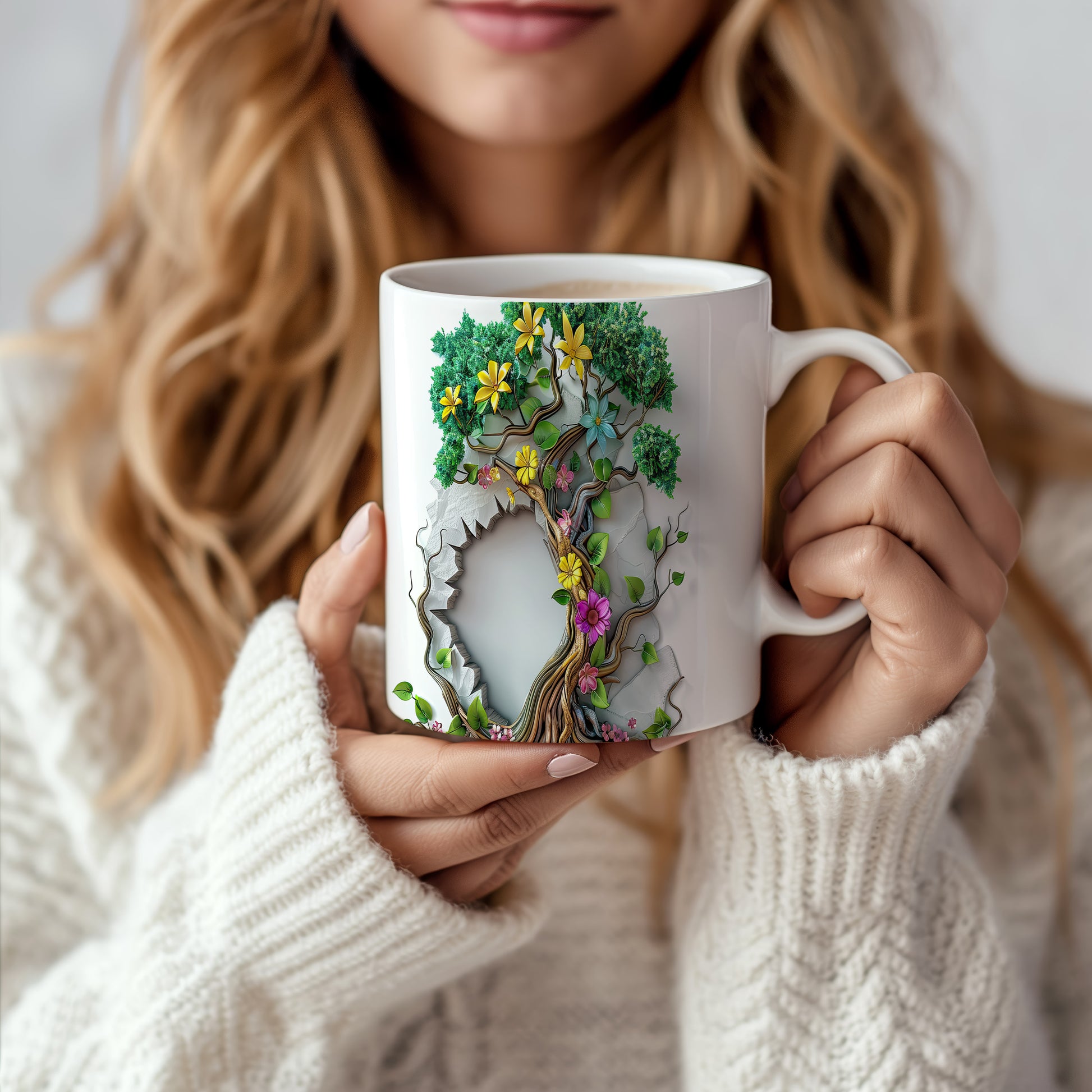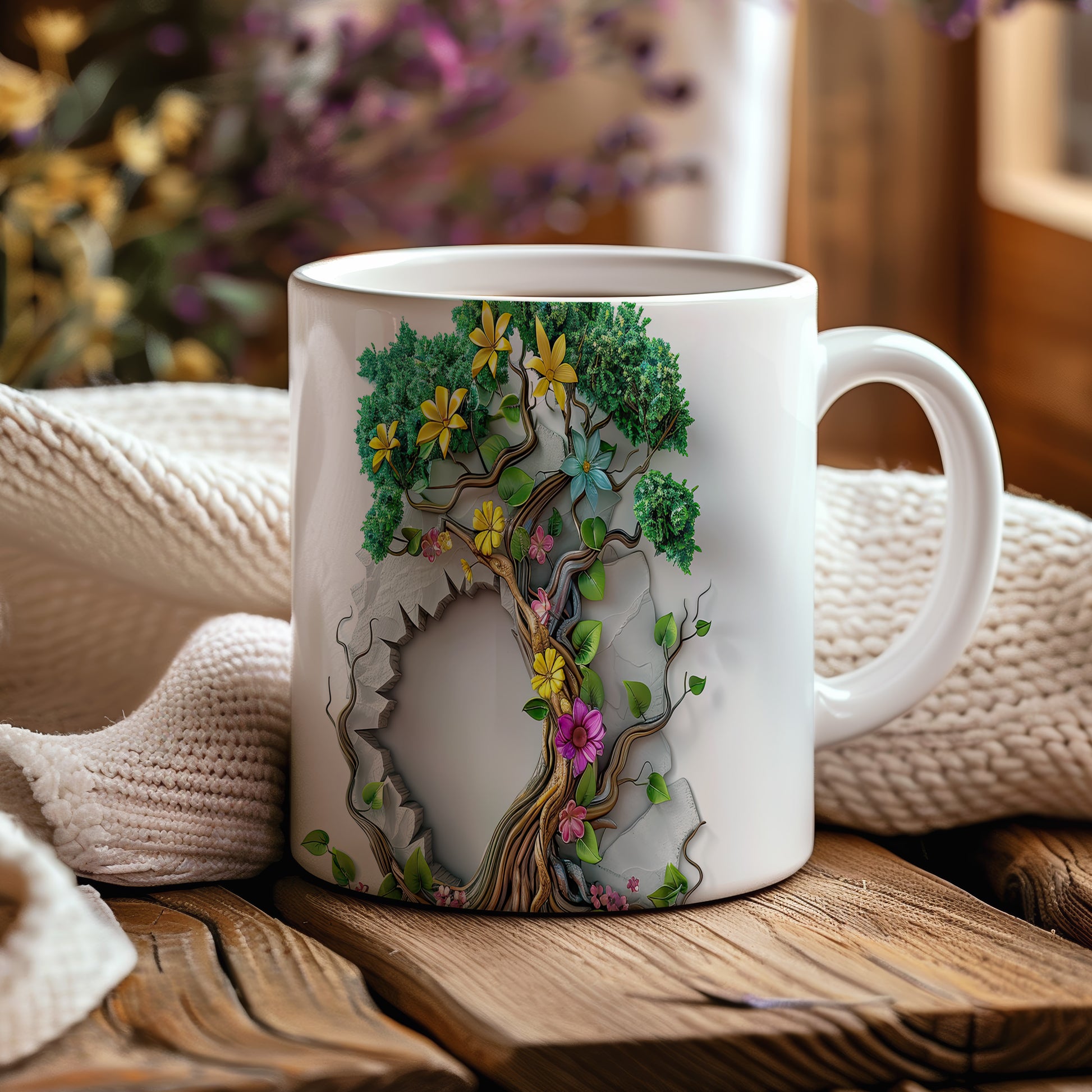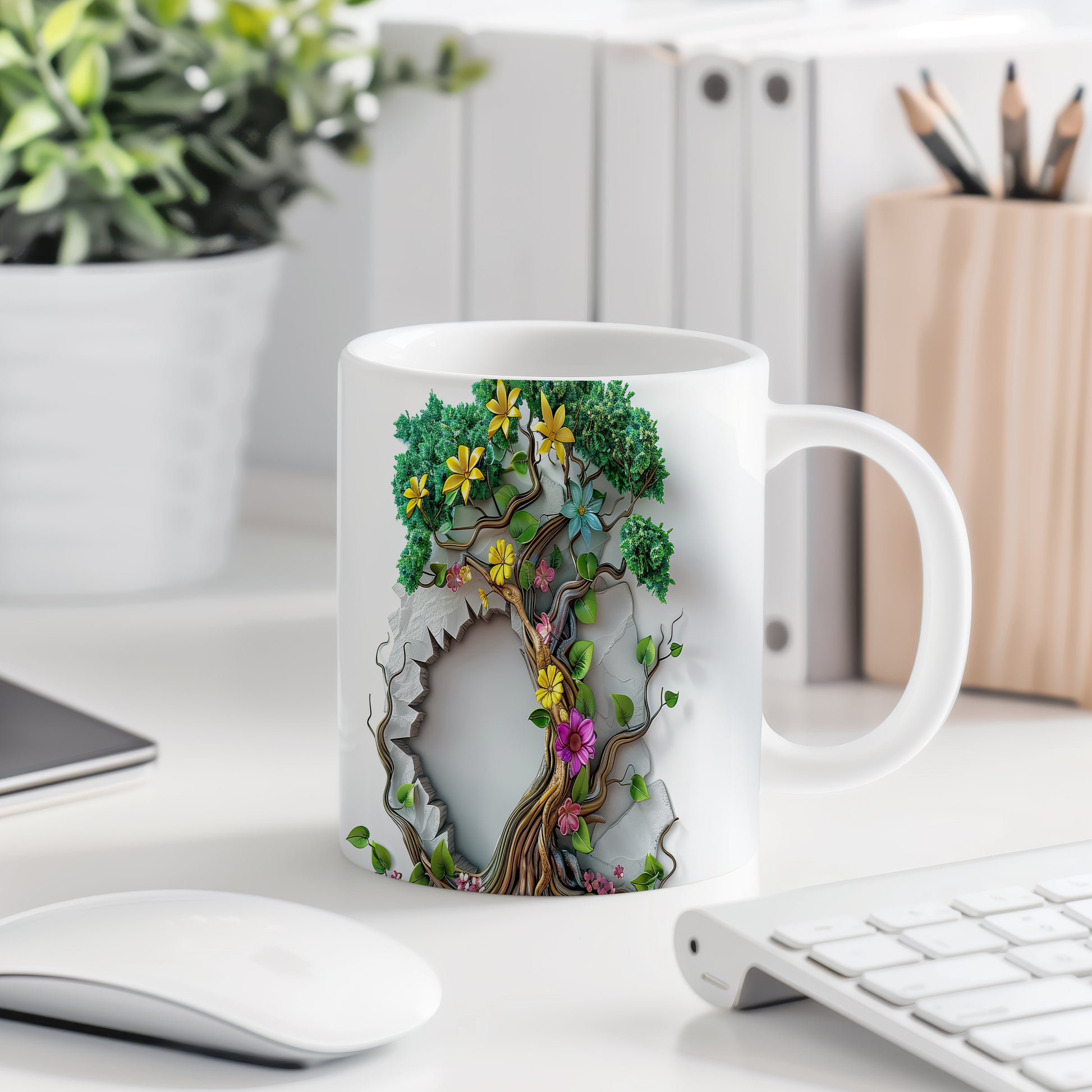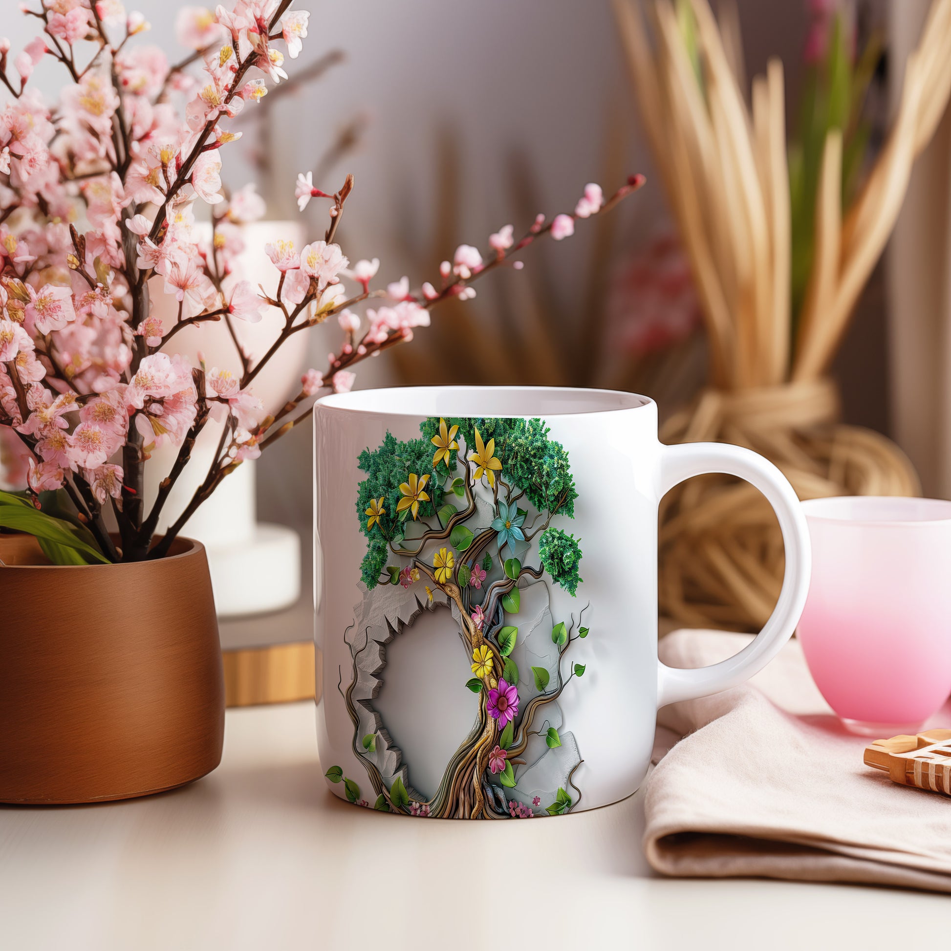 Hrnek s 3D motivem stromu a květin
