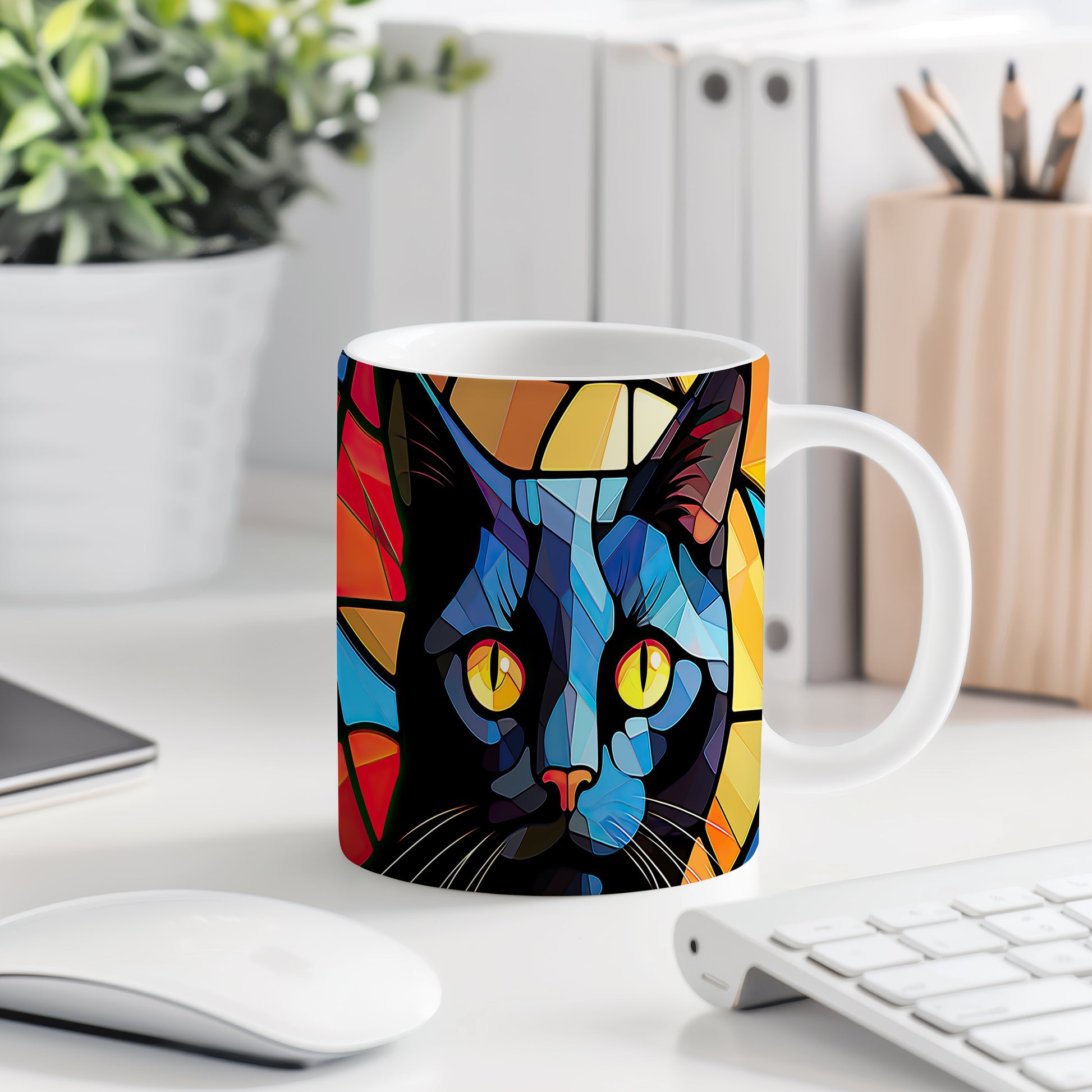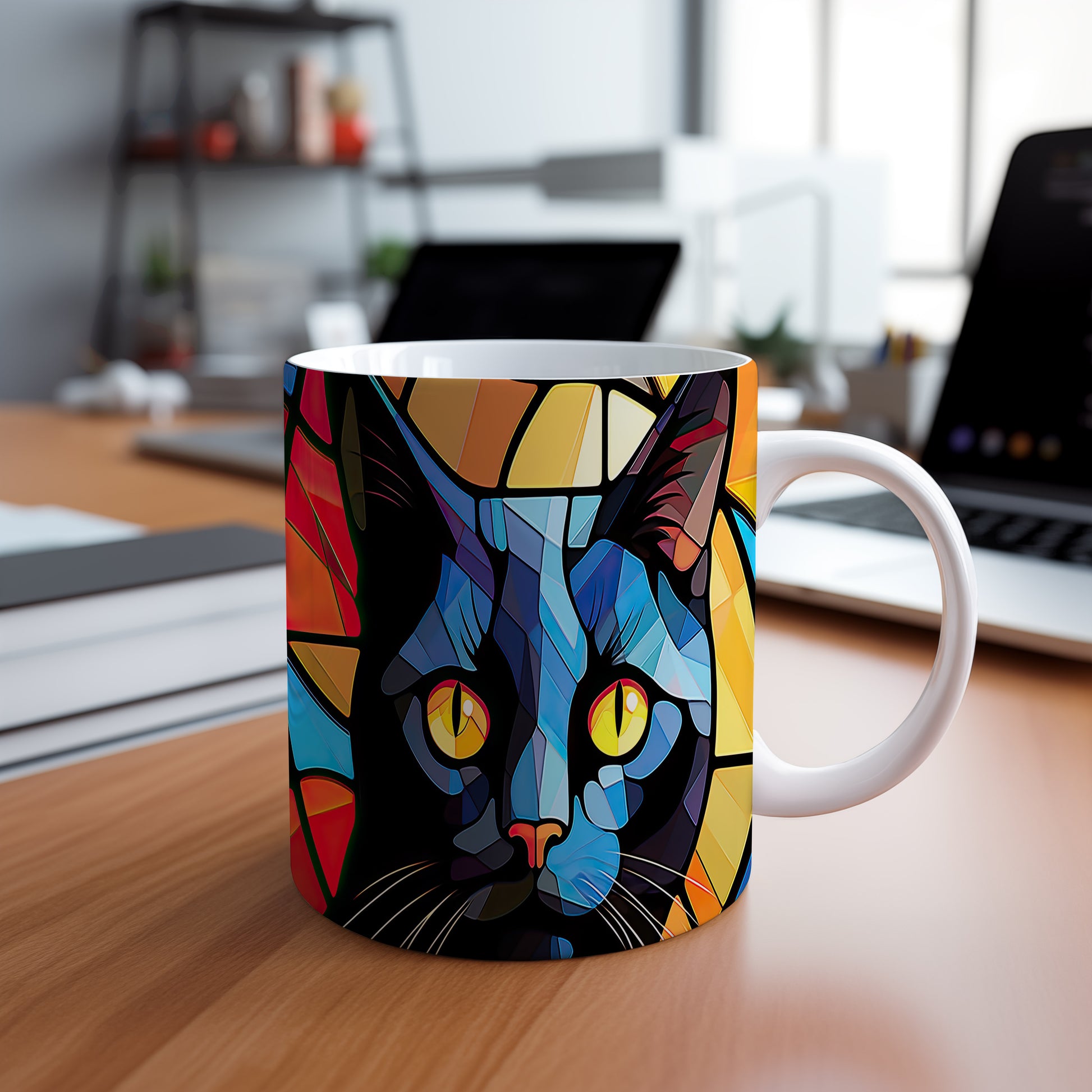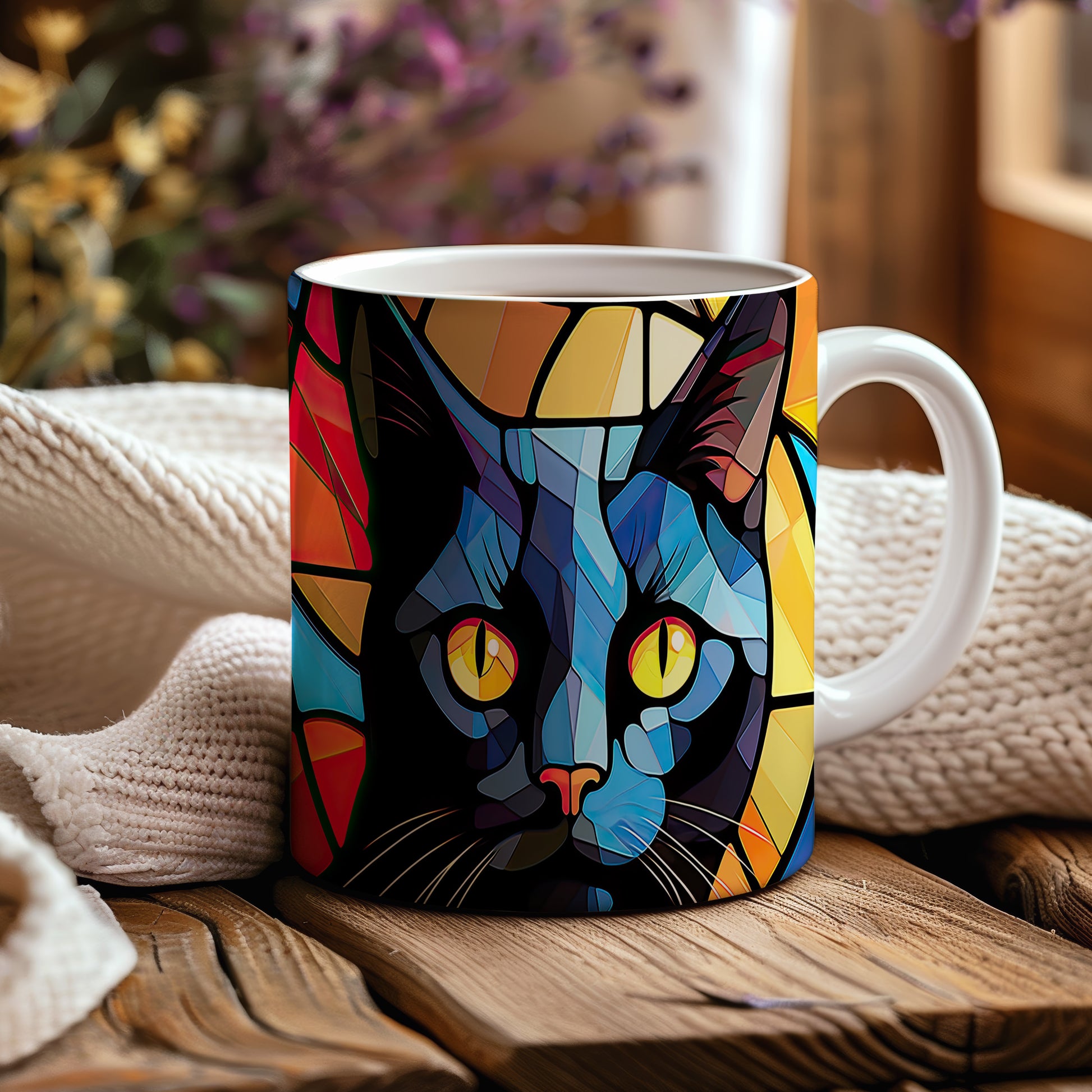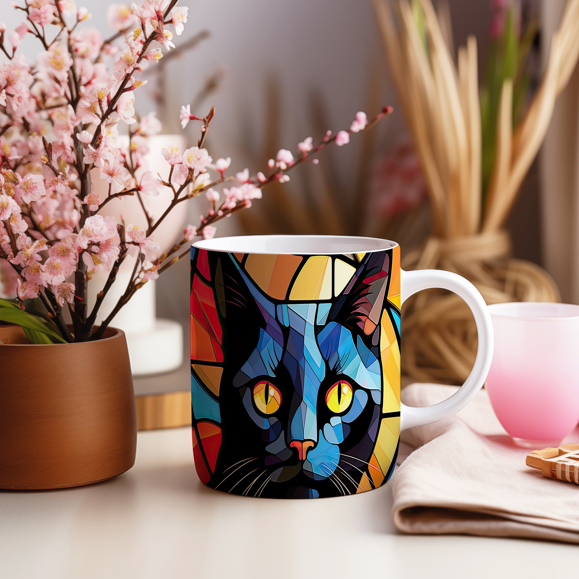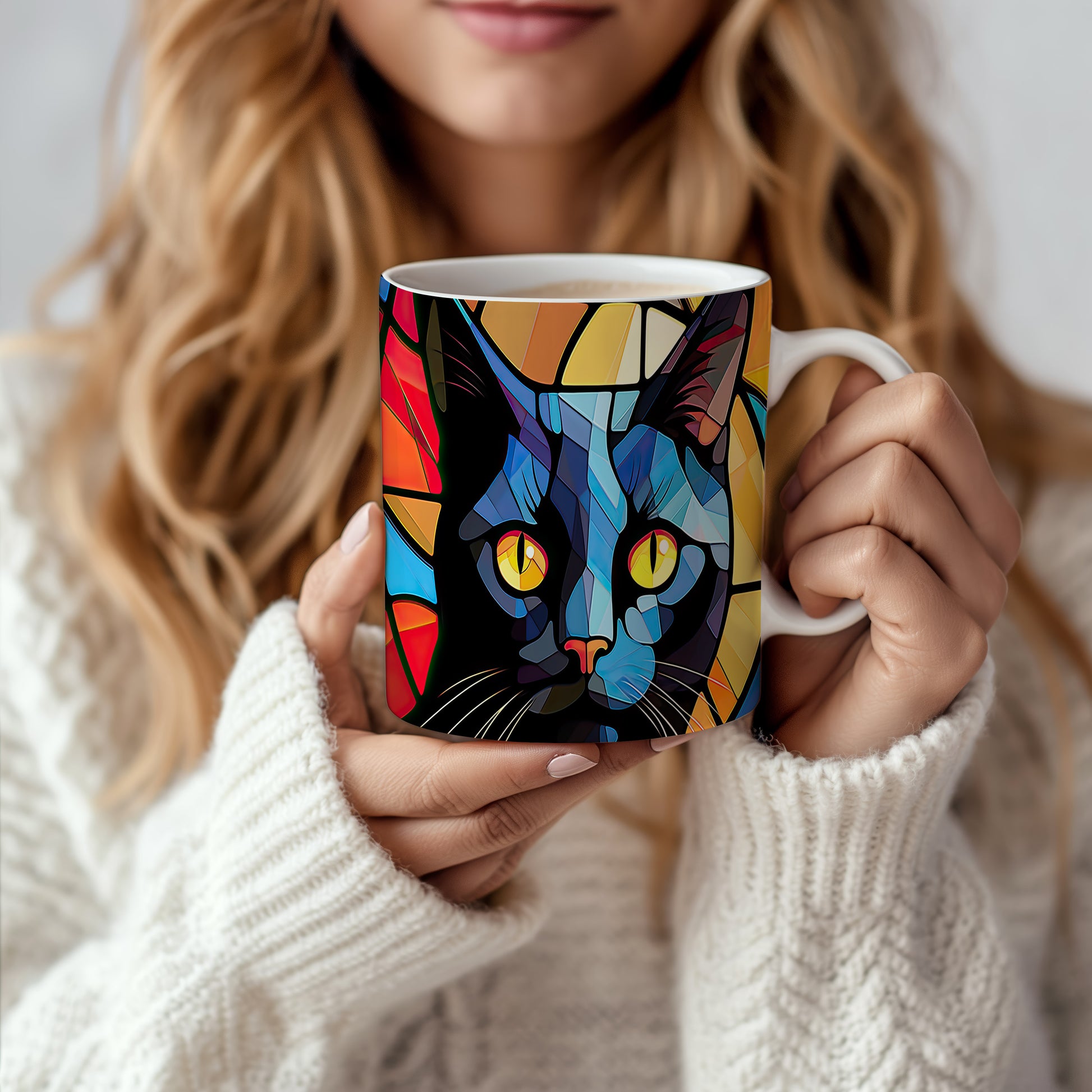 Stylový hrnek s abstraktními motivy černé kočky. Tento hrnek je ideální pro milovníky koček a moderní dekorace do domácnosti. Materiál: keramika. Objem: 330 ml. Vhodné do myčky i mikrovlnky. Užívejte si svůj oblíbený nápoj s originálním designem.