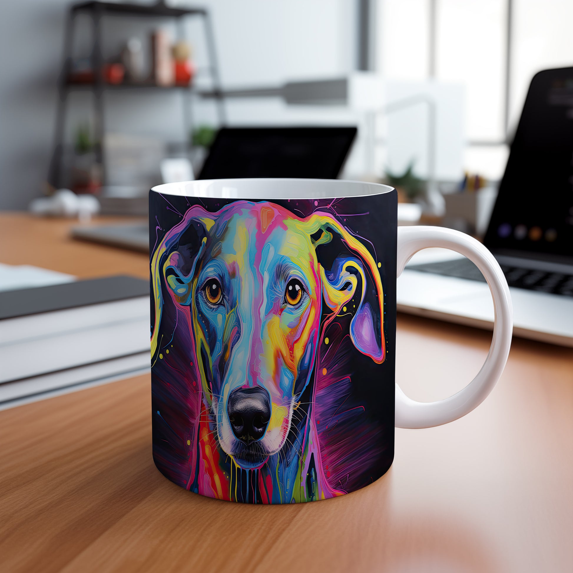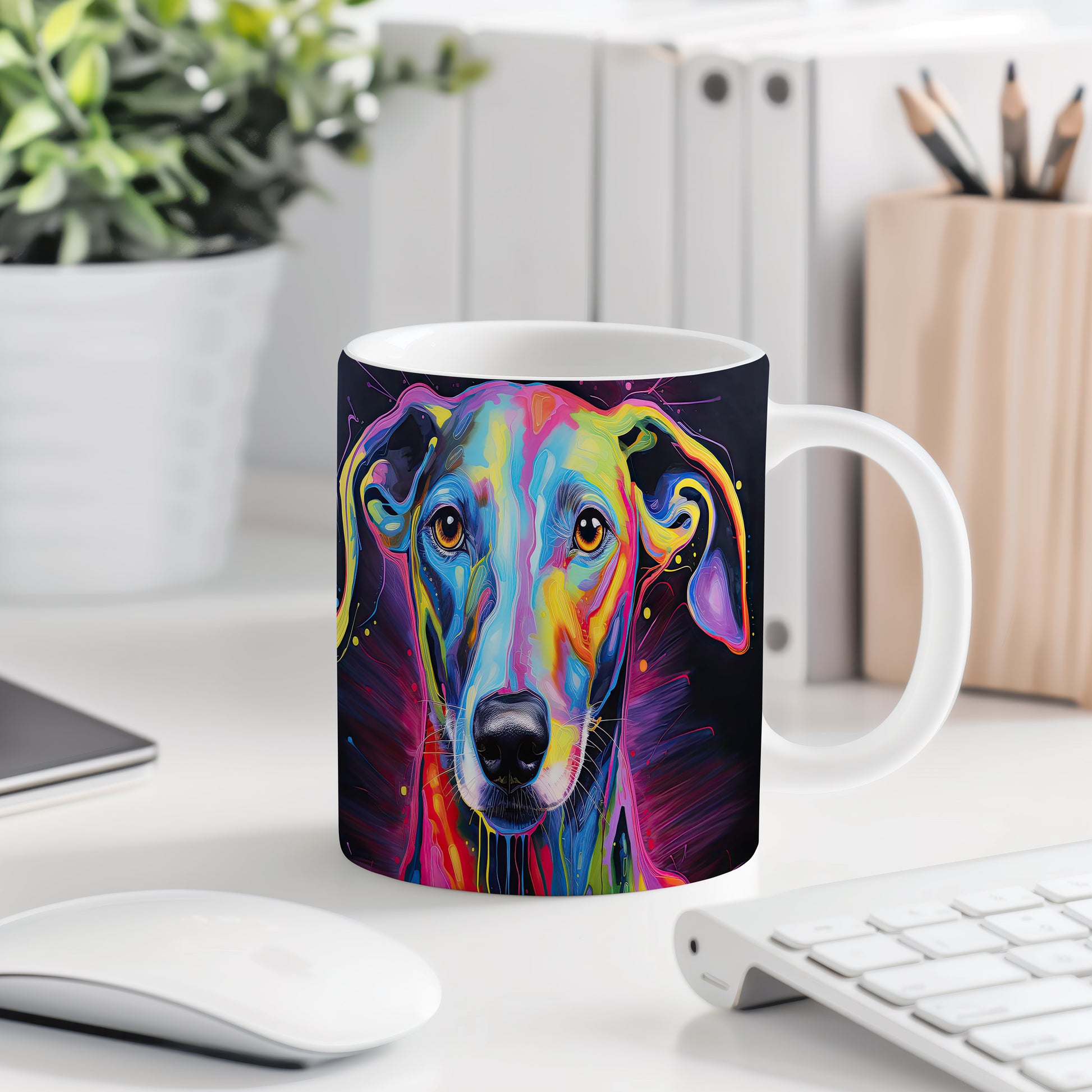 Tento hrnek s abstraktním motivem psa přináší do vašeho každodenního pití živou a barevnou atmosféru. Je ideální pro milovníky psů a skvělým dárkem pro přátele či rodinu. Materiál: keramika. Objem: 330 ml. Vhodné do myčky i mikrovlnky. Díky svému jedinečnému designu oživí každý okamžik, kdy si vychutnáváte svůj oblíbený nápoj.