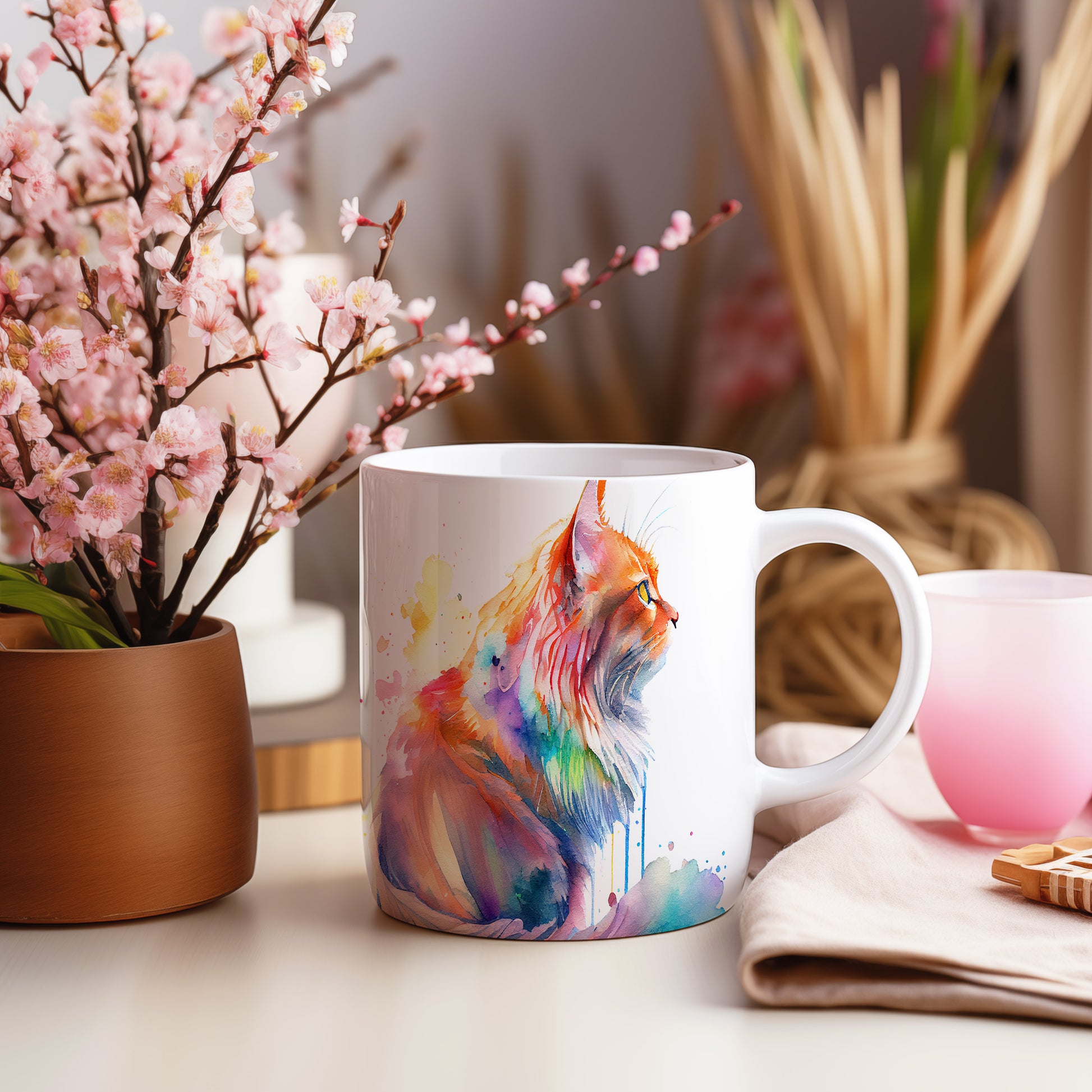 Elegantní hrnek s krásnou akvarelovou ilustrací kočky. Tento hrnek je ideální pro milovníky koček a umění, skvělý tip na dárek pro přátele nebo rodinu. Materiál: keramika. Objem: 330 ml. Vhodné do myčky i mikrovlnky. Používání tohoto hrnku přináší radost z každého doušku.