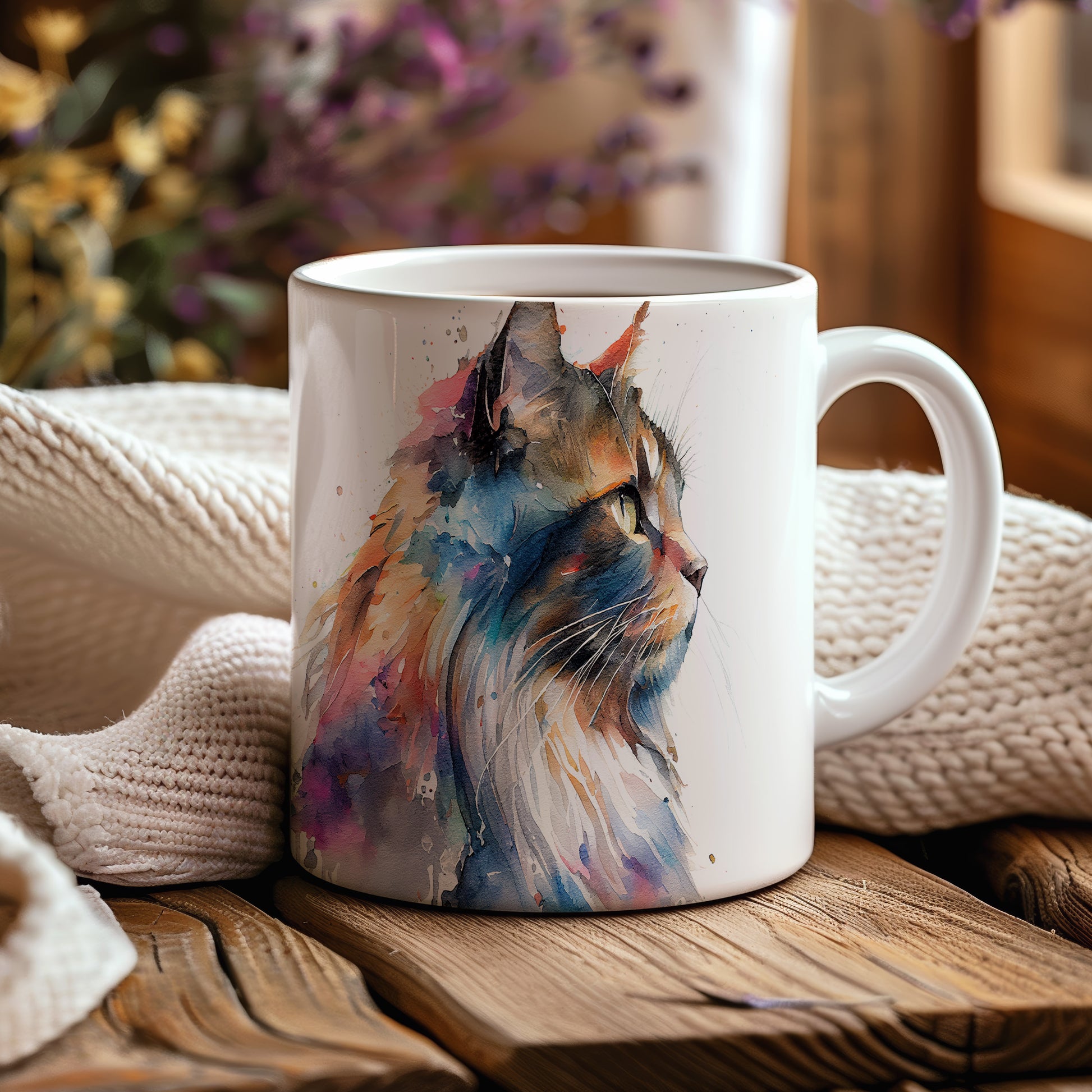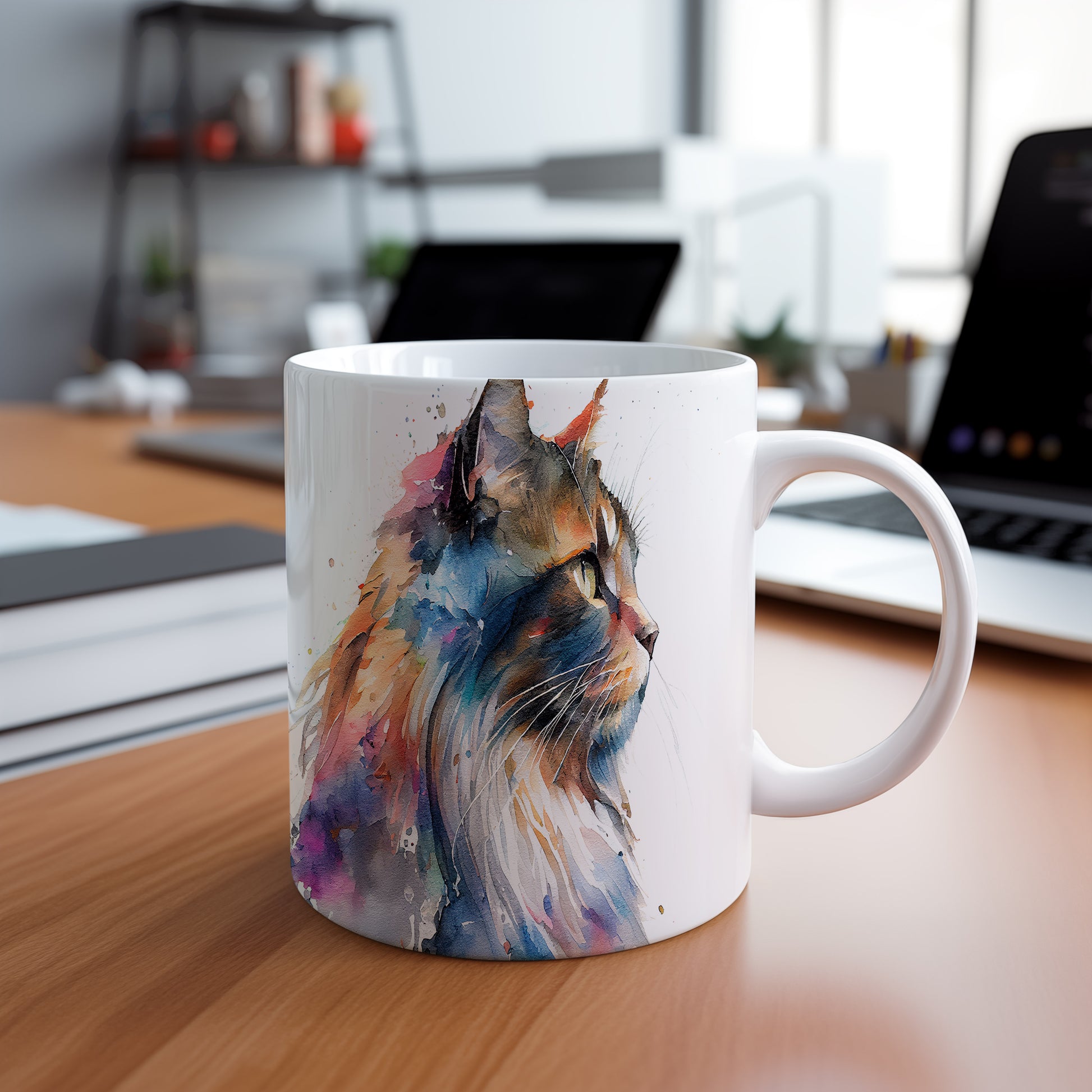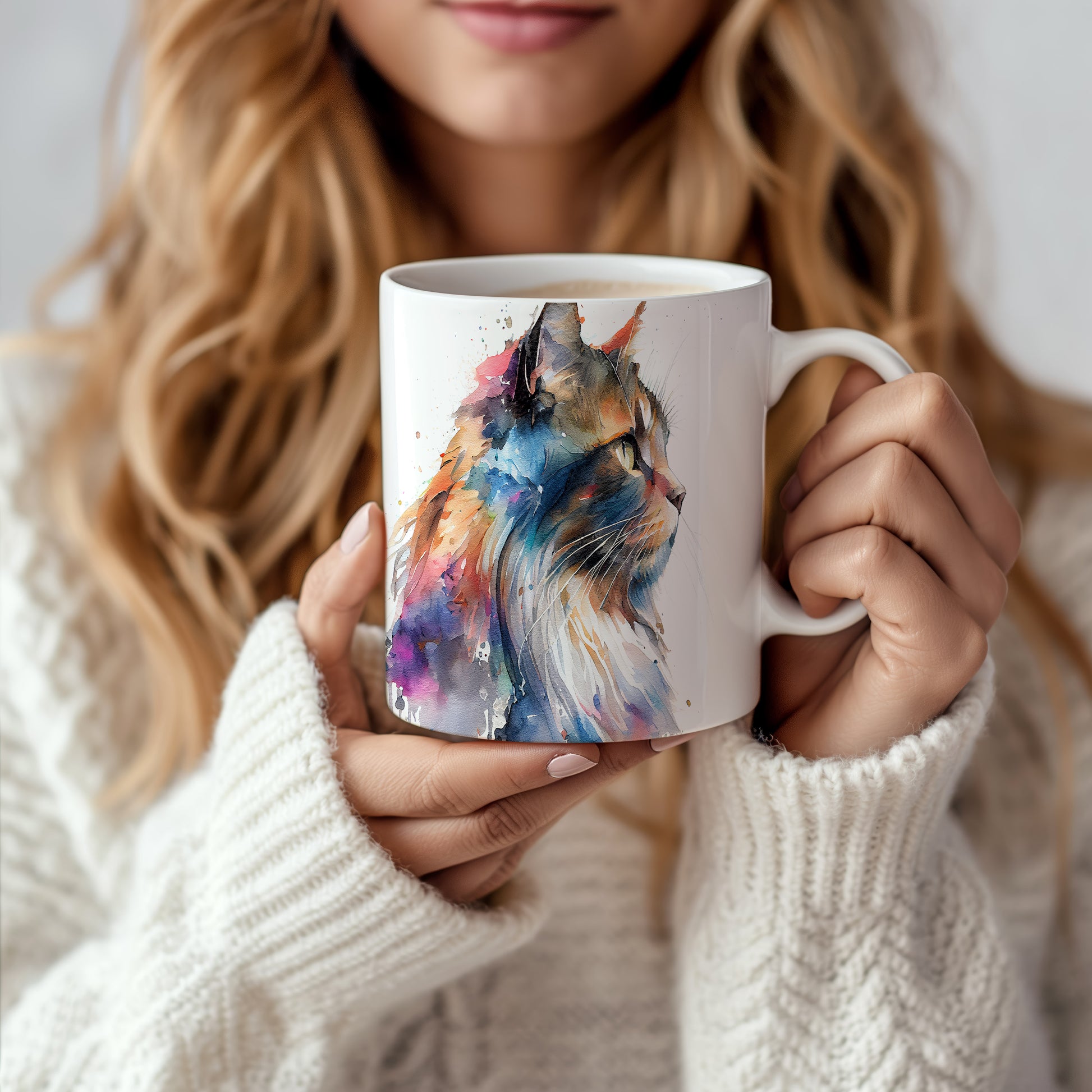 Tento elegantní hrnek s akvarelovou kočkou přináší jemné detaily srsti a krásné barvy. Je ideální pro milovníky koček a skvělým dárkem pro každého, kdo má rád tyto mazlíčky. Materiál: keramika. Objem: 330 ml. Vhodné do myčky i mikrovlnky. Používání tohoto hrnku vám zpříjemní každé ráno s šálkem oblíbeného nápoje.