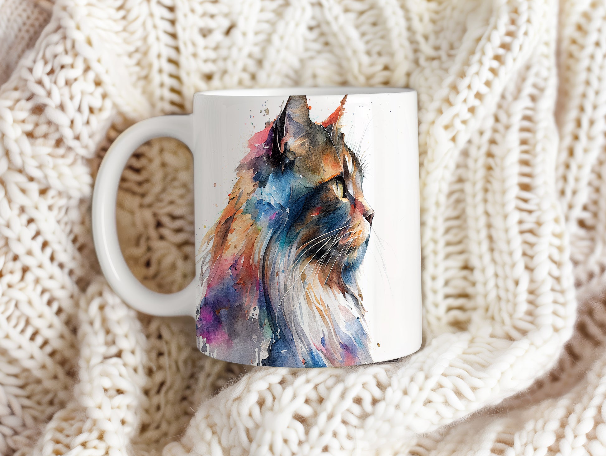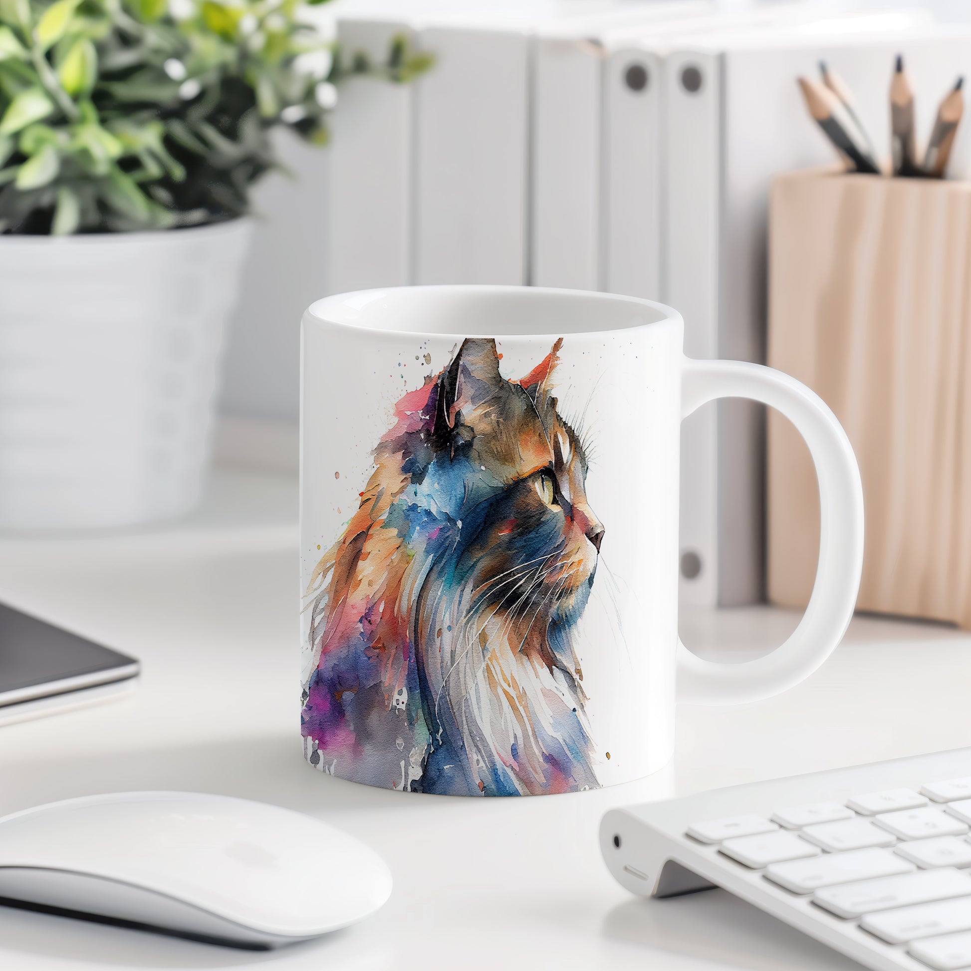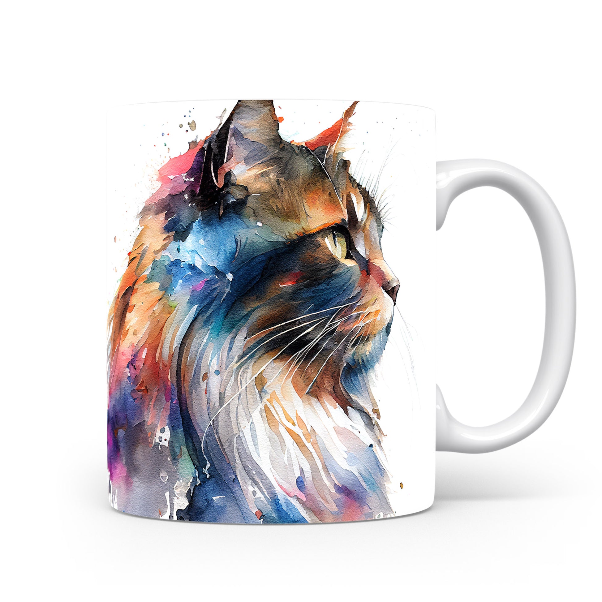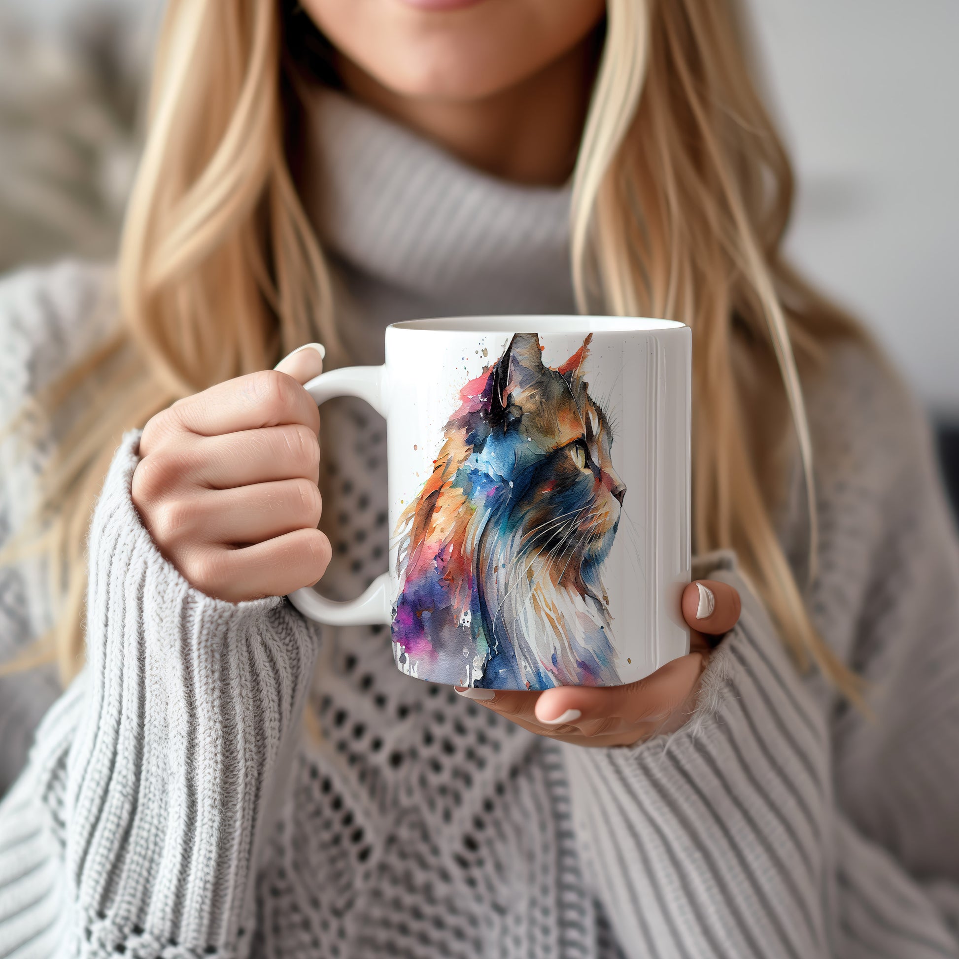 Tento elegantní hrnek s akvarelovou kočkou přináší jemné detaily srsti a krásné barvy. Je ideální pro milovníky koček a skvělým dárkem pro každého, kdo má rád tyto mazlíčky. Materiál: keramika. Objem: 330 ml. Vhodné do myčky i mikrovlnky. Používání tohoto hrnku vám zpříjemní každé ráno s šálkem oblíbeného nápoje.