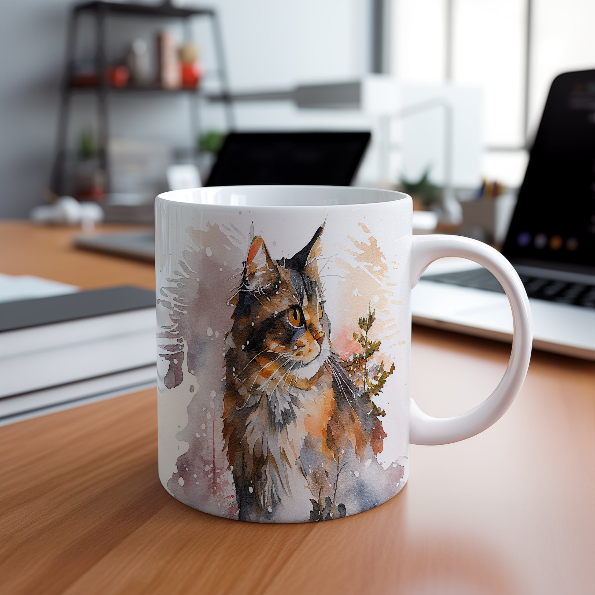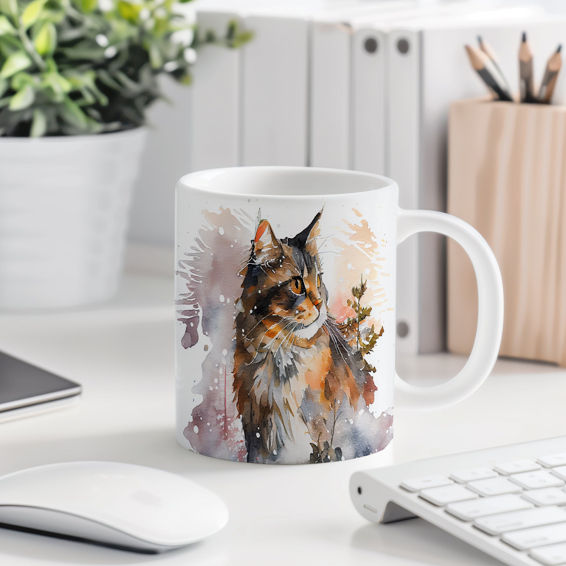 Tento hrnek s krásným akvarelovým motivem kočky je ideální pro milovníky zvířat a umění. Skvělý tip na dárek pro přátele nebo rodinu, kteří ocení originální design. Materiál: keramika. Objem: 330 ml. Vhodné do myčky i mikrovlnky. Používáním tohoto hrnku si užijete nejen oblíbené nápoje, ale také estetický zážitek.