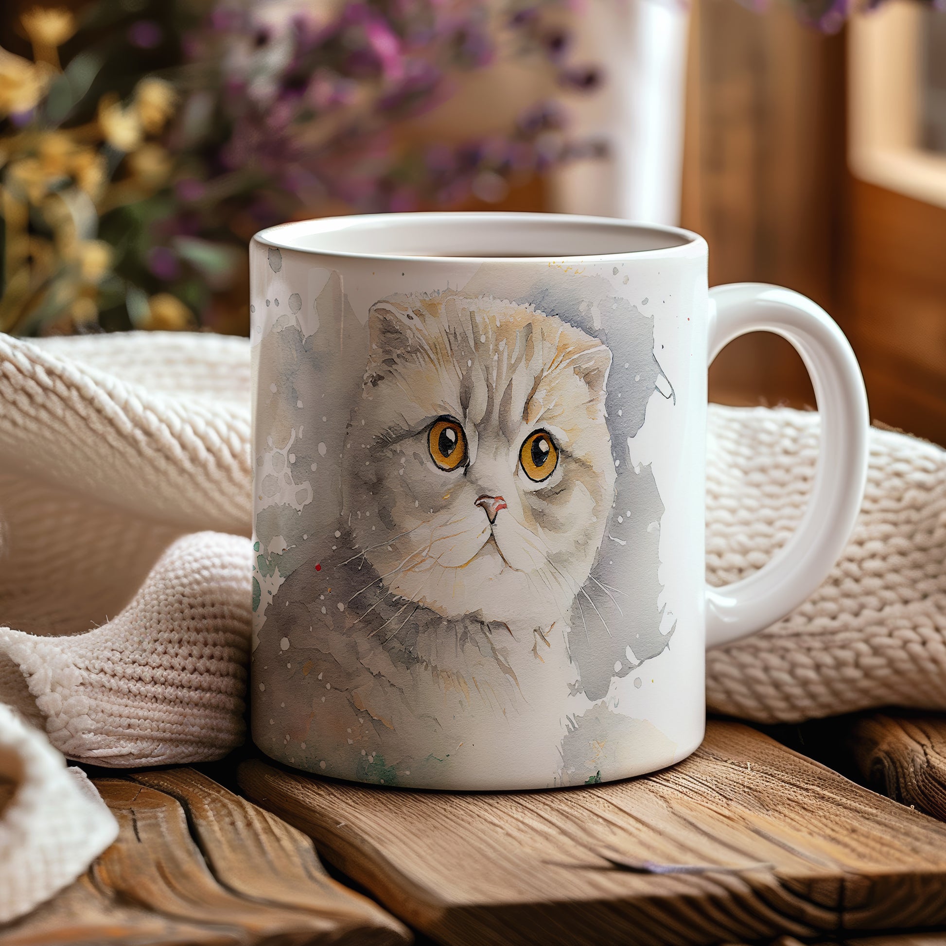 Hrnek s akvarelovou kočkou – roztomilým motivem