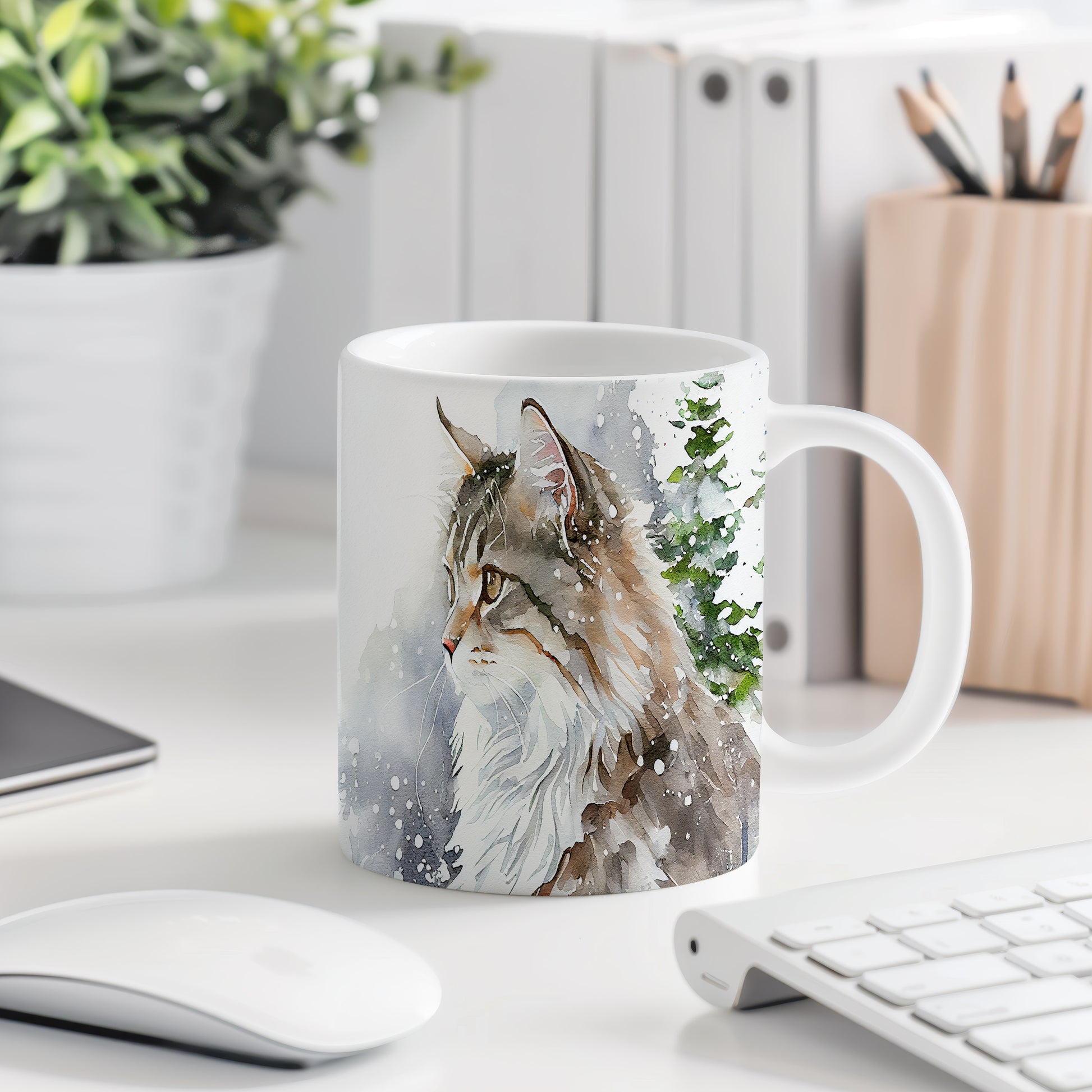 Tento hrnek s motivem akvarelové kočky v zasněžené krajině je skvělým doplňkem pro milovníky koček a zimní atmosféry. Je ideální jako dárek pro přátele nebo rodinu, kteří ocení krásu přírody. Materiál: keramika. Objem: 330 ml. Vhodné do myčky i mikrovlnky. Užívejte si svůj oblíbený nápoj s tímto stylovým hrnkem, který přináší radost do každého dne.