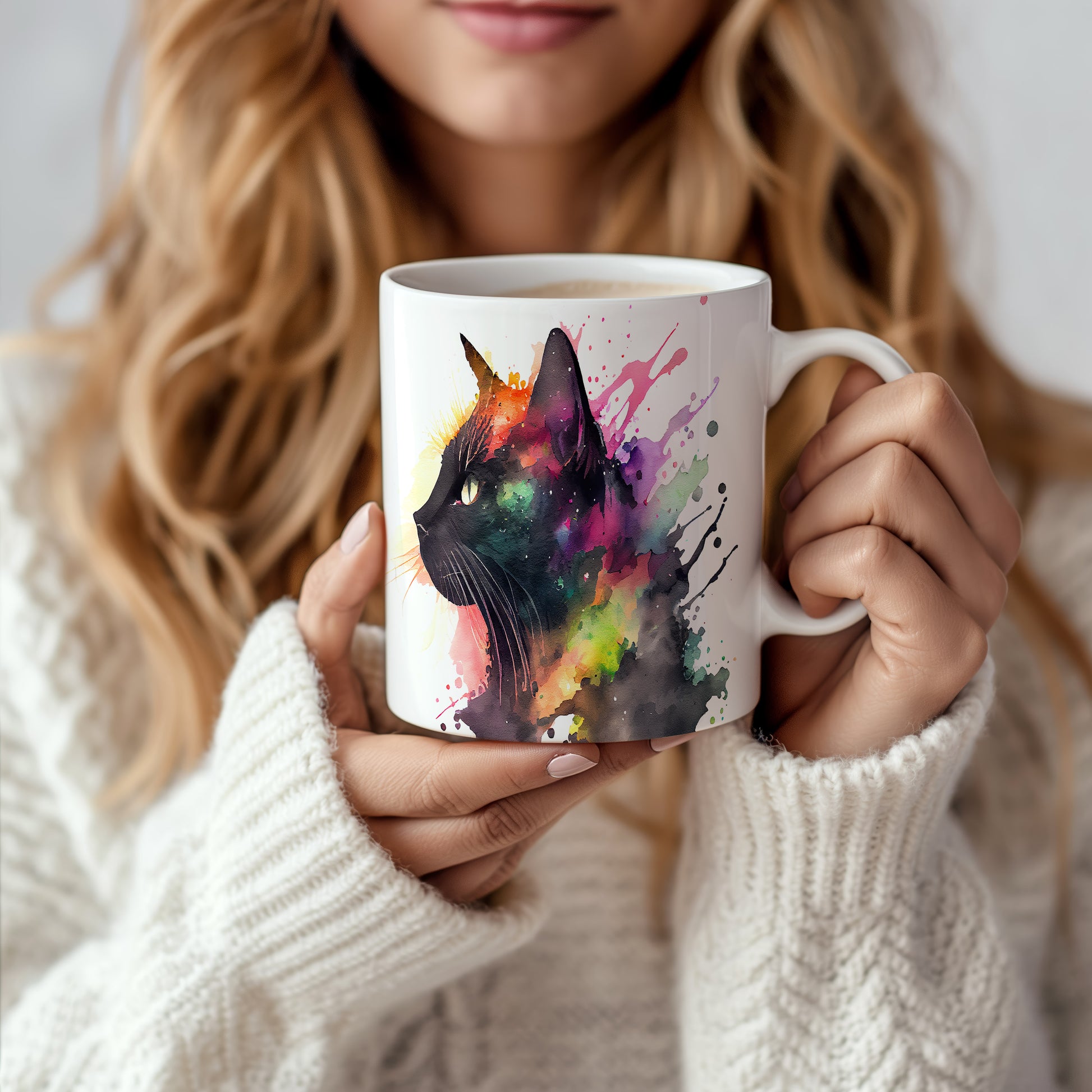 Tento hrnek zobrazuje krásnou akvarelovou kočku v živých barvách. Je ideální pro milovníky koček a skvělým dárkem pro přátele či rodinu. Materiál: keramika. Objem: 330 ml. Vhodné do myčky i mikrovlnky. Díky svému designu přináší radost při každém doušku vašeho oblíbeného nápoje.