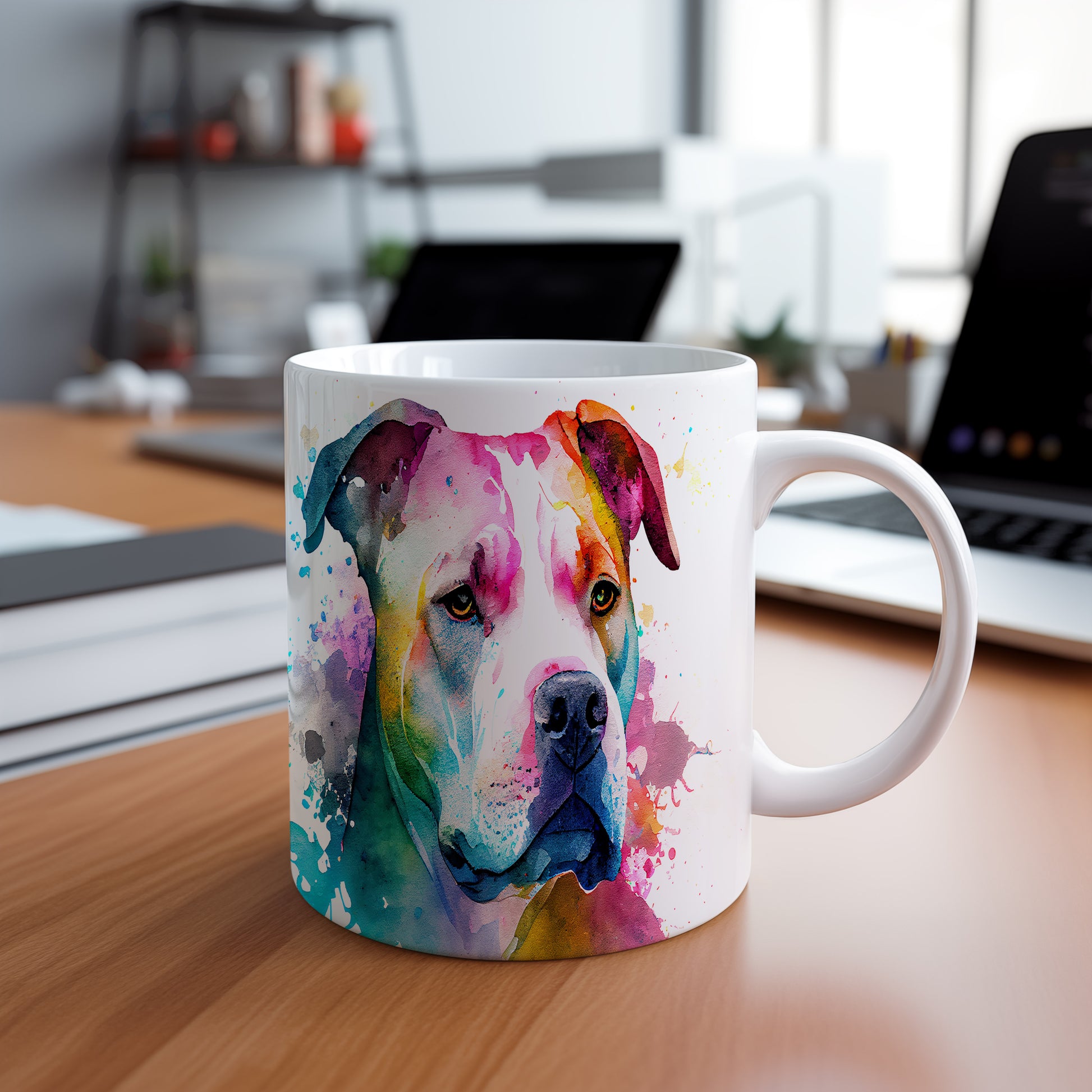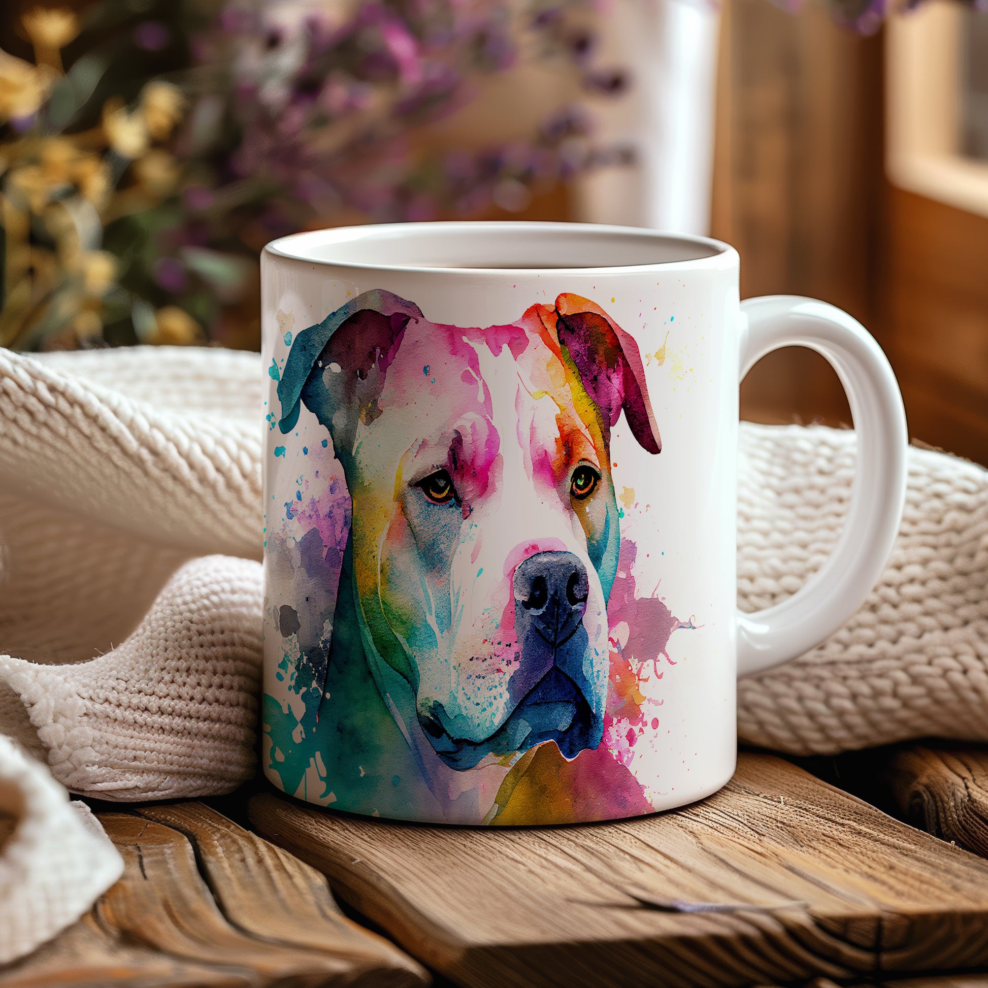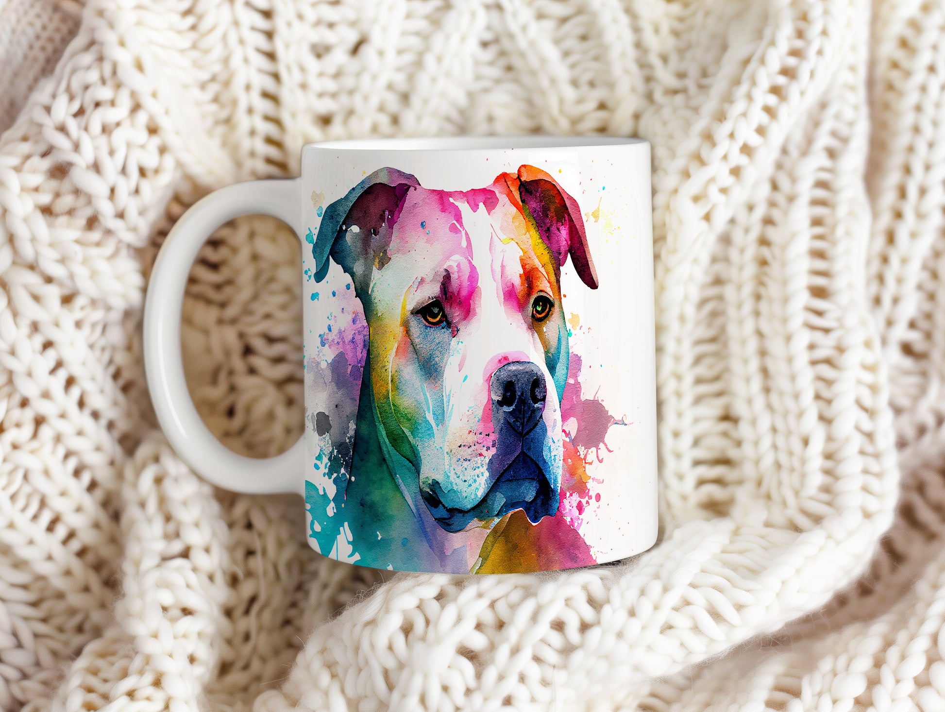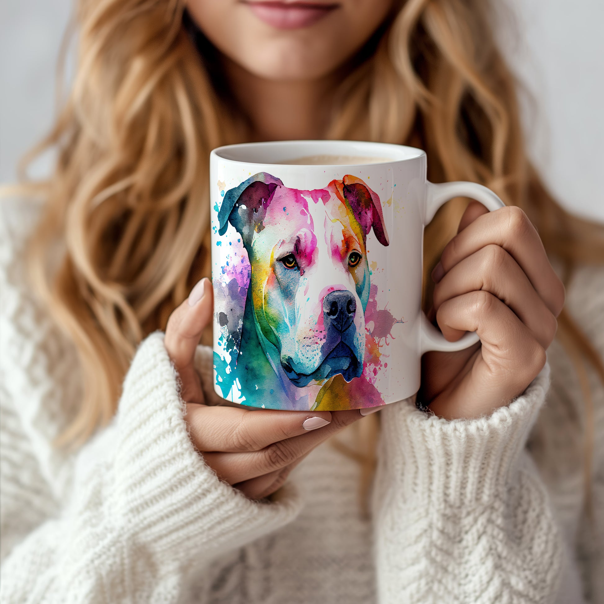 Hrnek s akvarelovým pitbullem v pestrých barvách