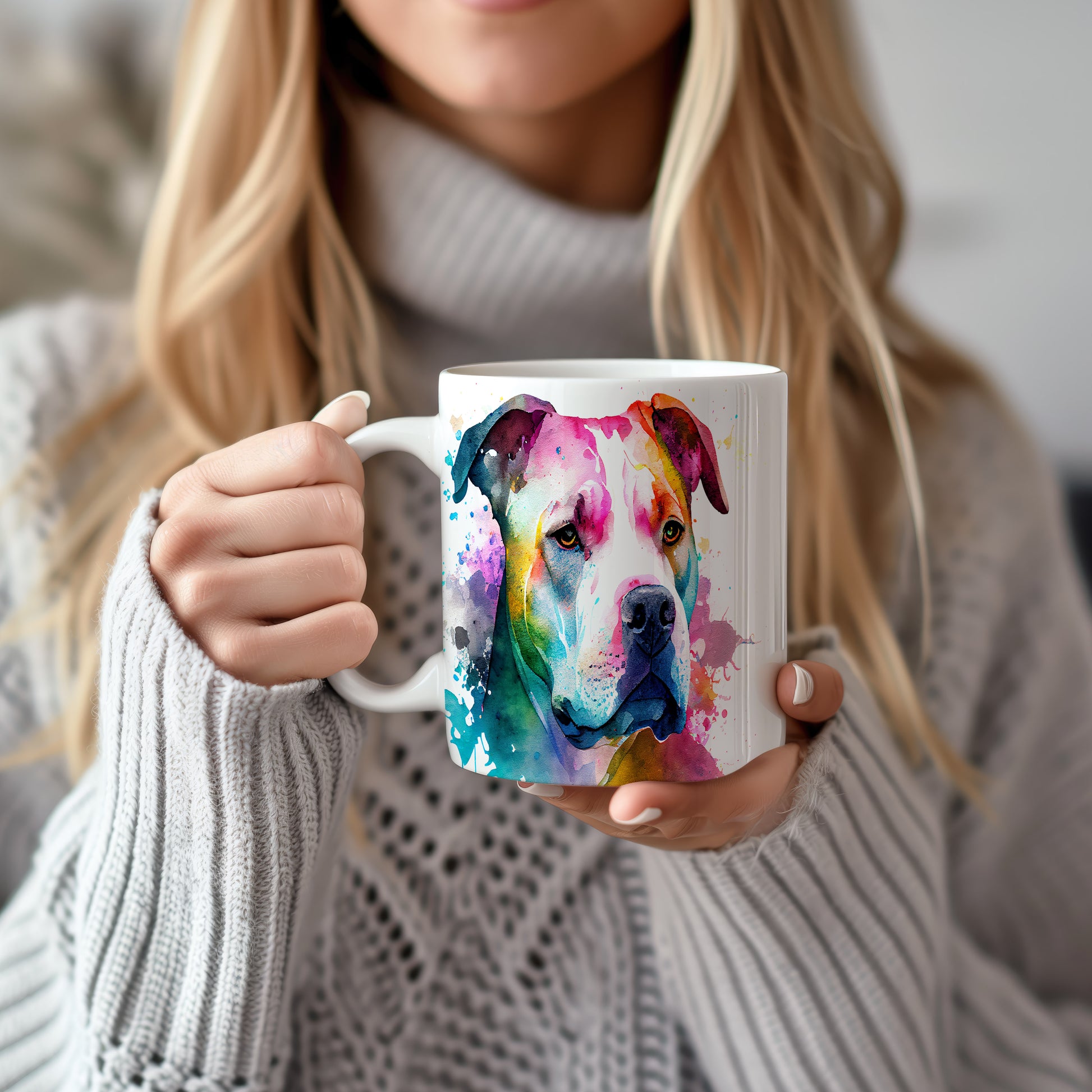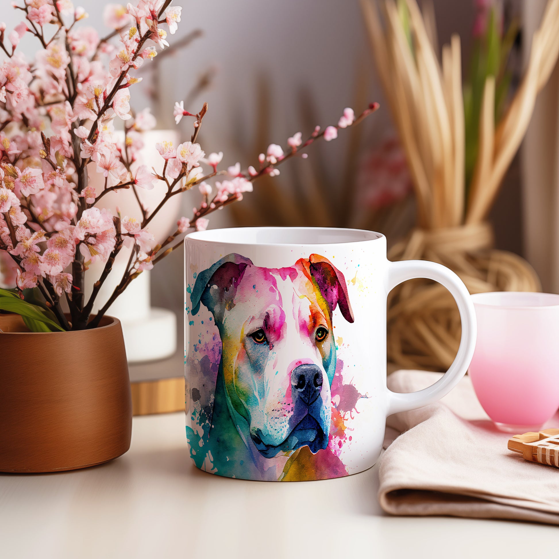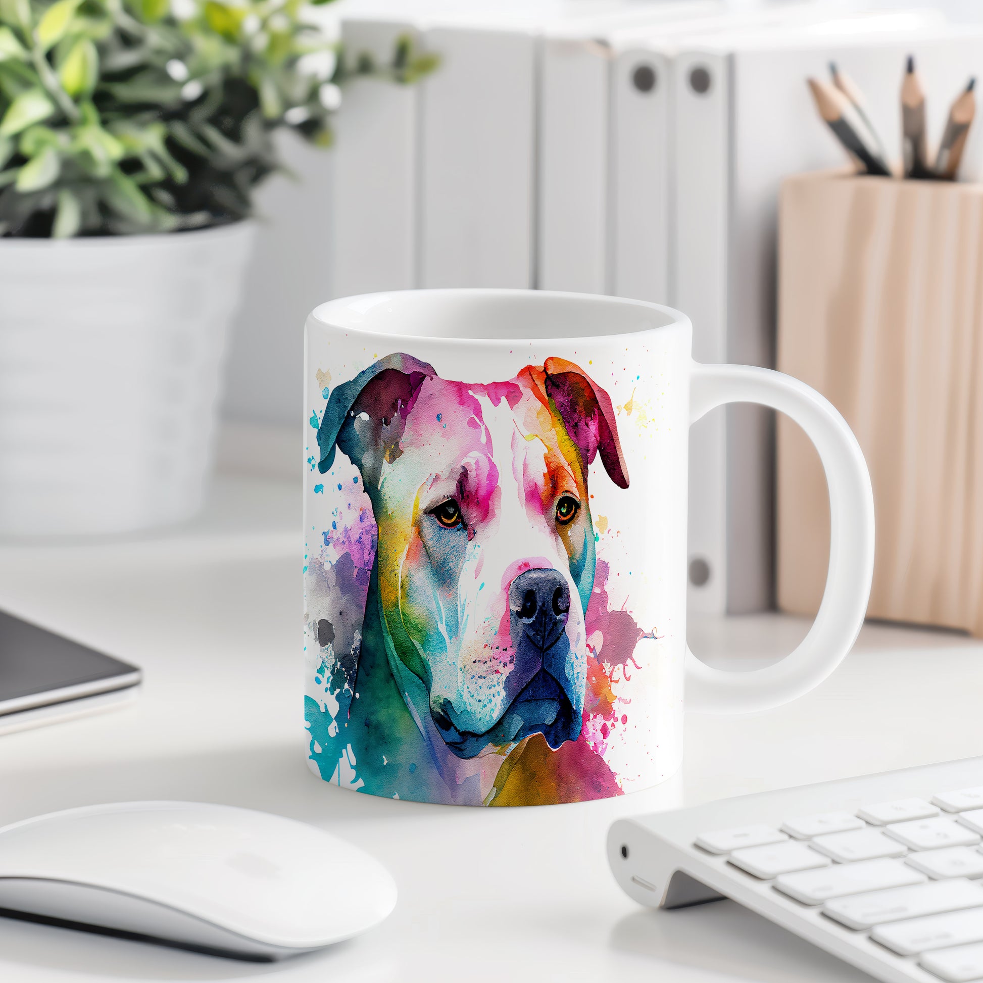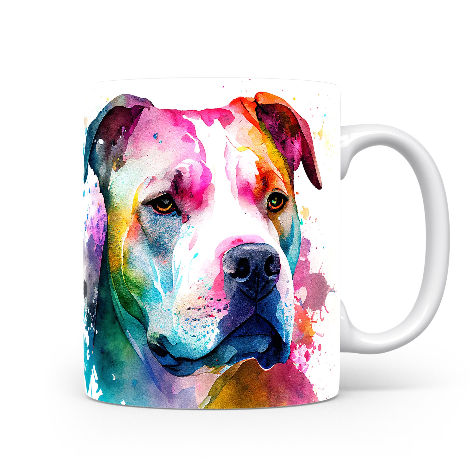 Hrnek s akvarelovým pitbullem v pestrých barvách