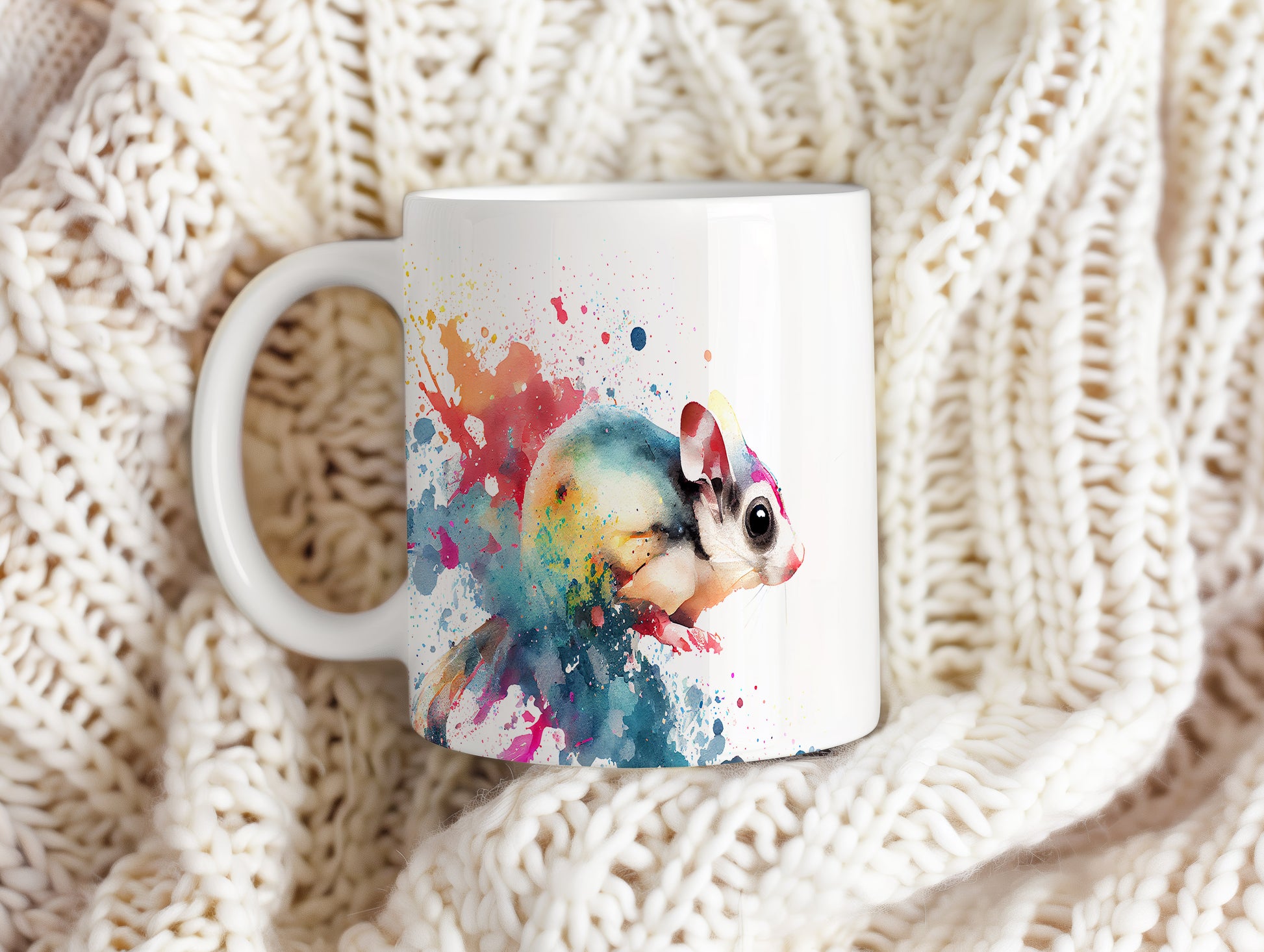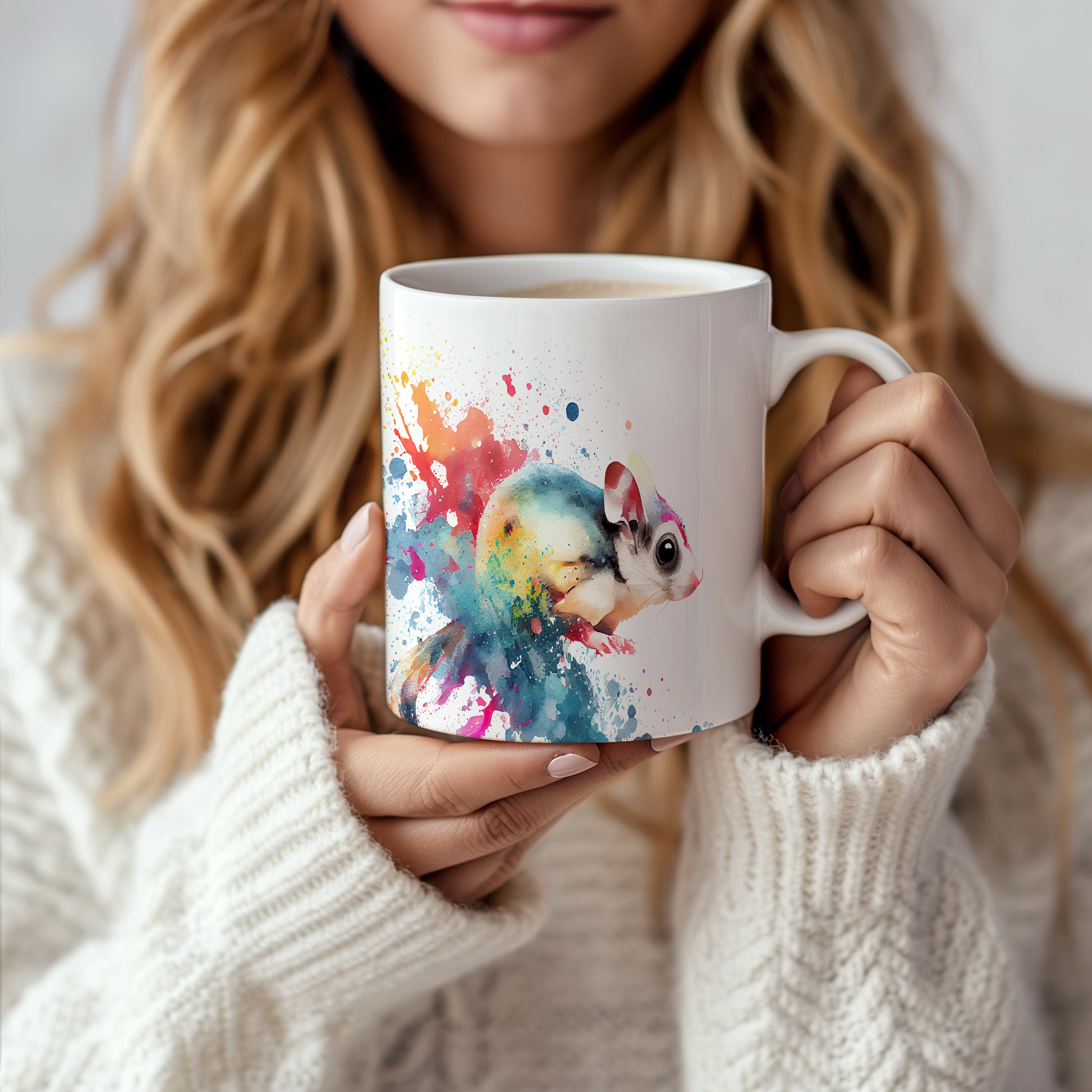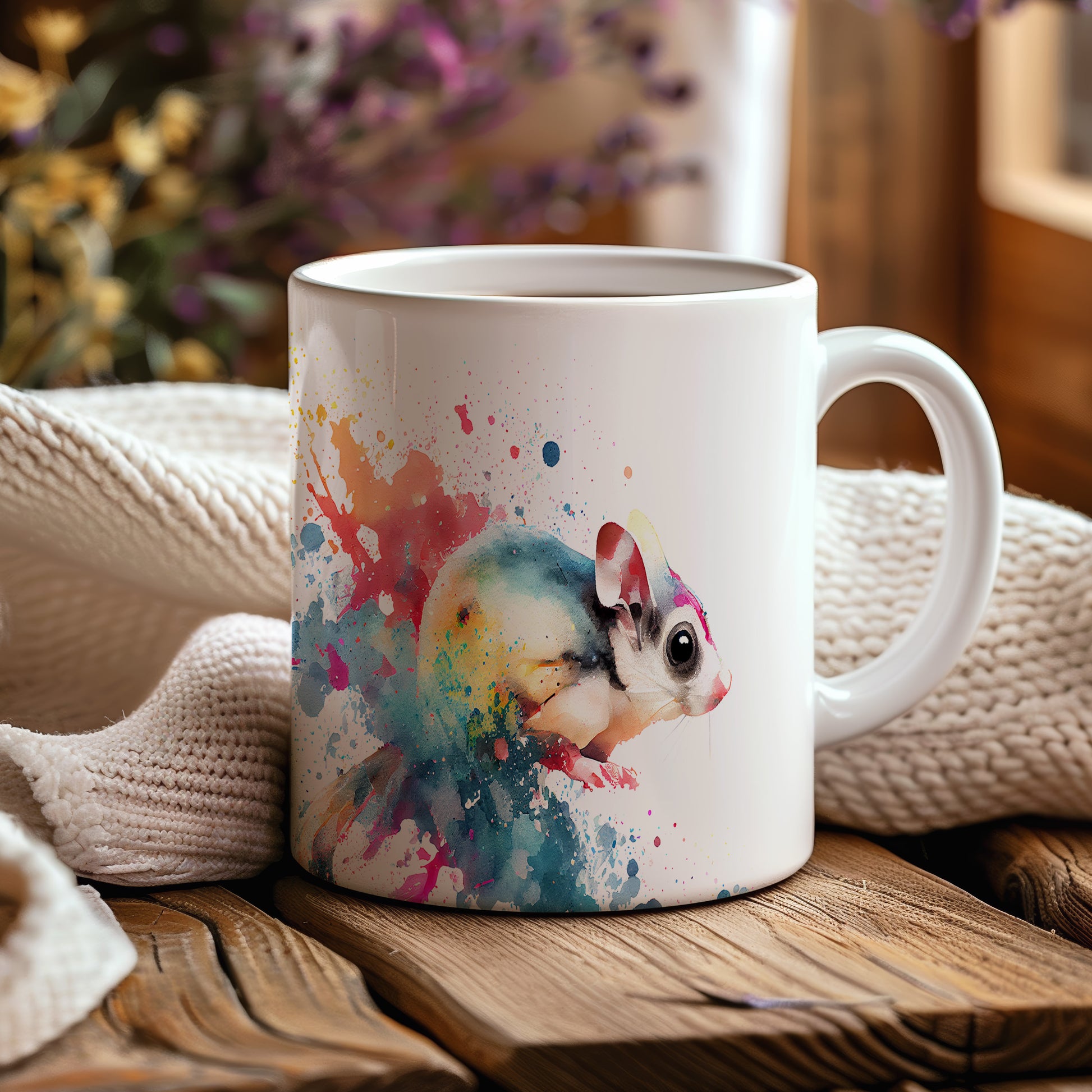 Tento hrnek je zdobený krásnou akvarelovou ilustrací hlodavce, obklopeného barevnými skvrnami. Je ideální pro milovníky zvířat a skvělým dárkem pro přátele či rodinu. Materiál: keramika. Objem: 330 ml. Vhodné do myčky i mikrovlnky. Používání tohoto hrnku přináší radost a oživí každé pití.