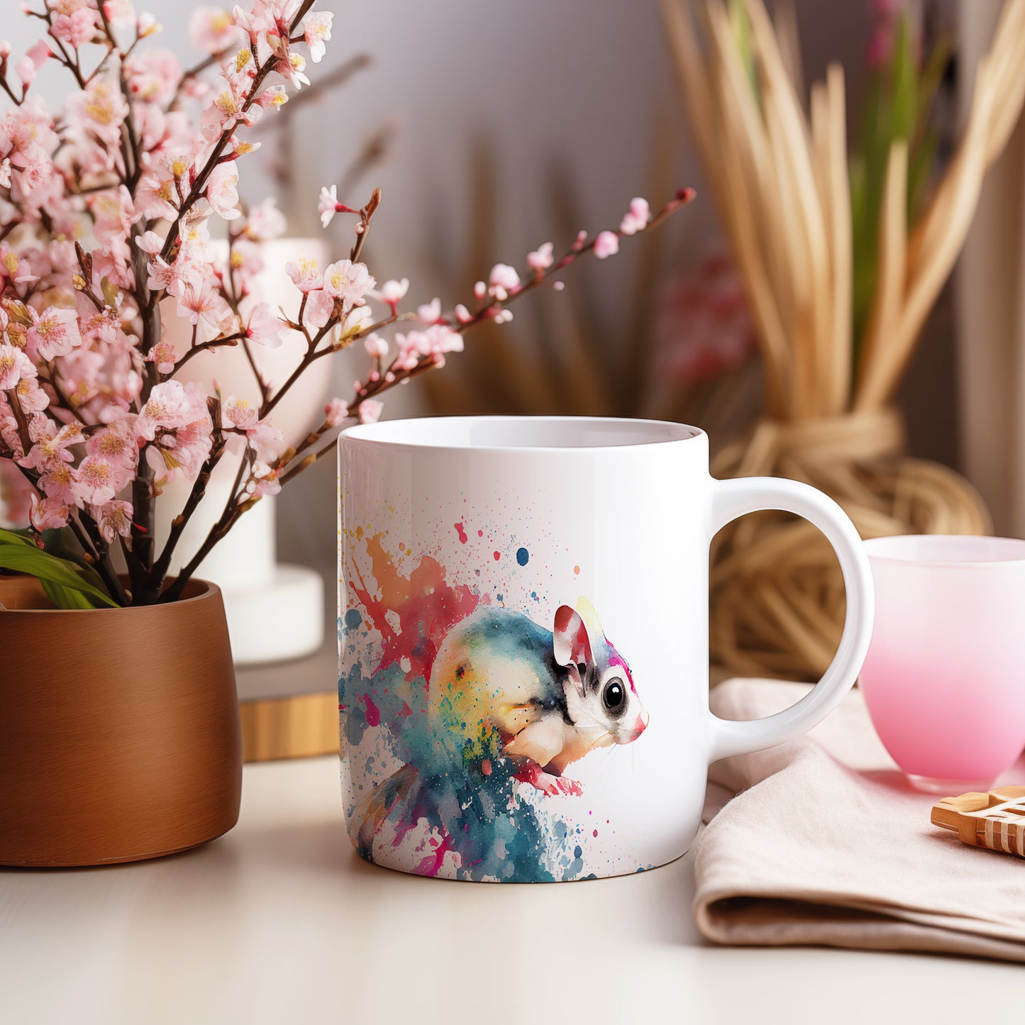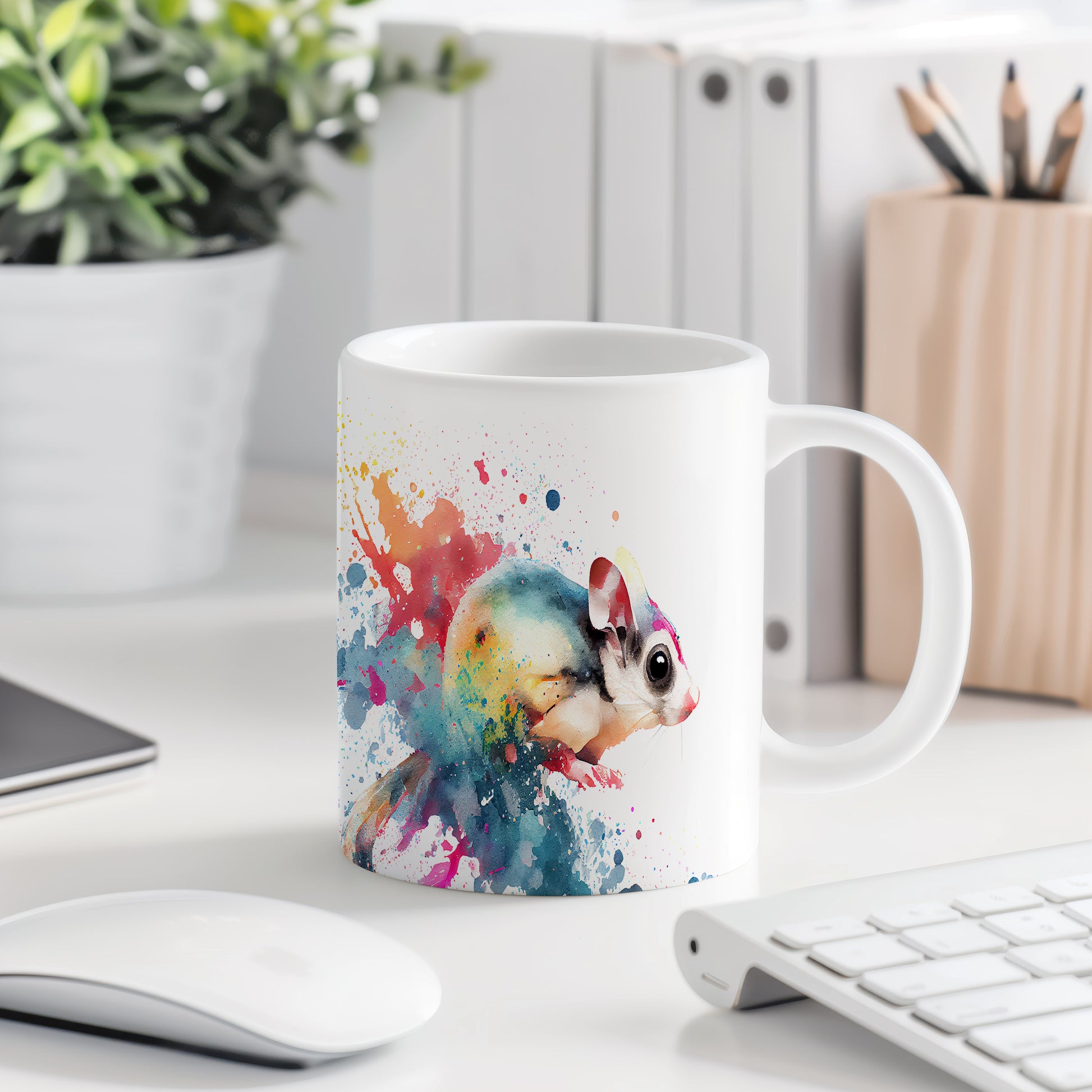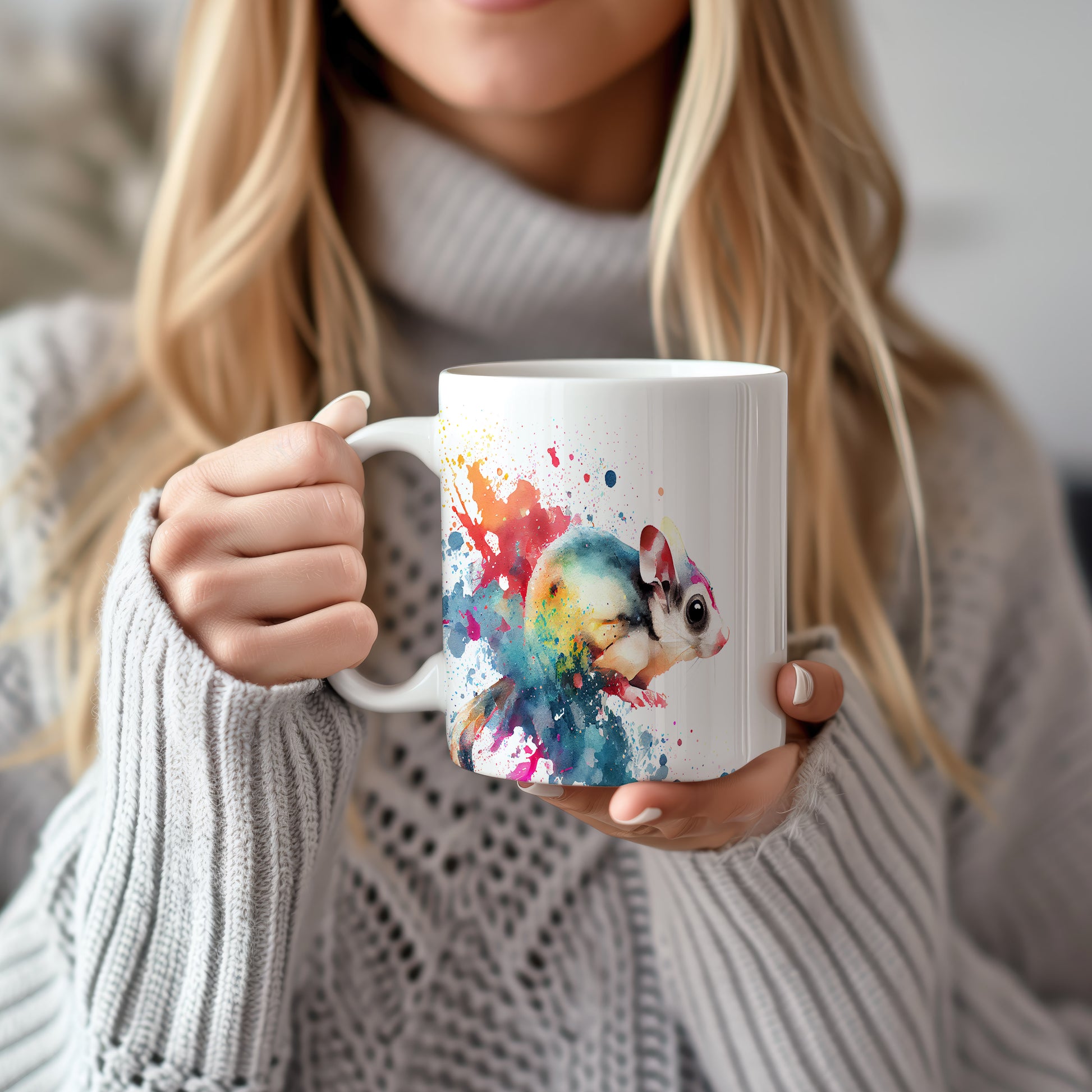 Tento hrnek je zdobený krásnou akvarelovou ilustrací hlodavce, obklopeného barevnými skvrnami. Je ideální pro milovníky zvířat a skvělým dárkem pro přátele či rodinu. Materiál: keramika. Objem: 330 ml. Vhodné do myčky i mikrovlnky. Používání tohoto hrnku přináší radost a oživí každé pití.