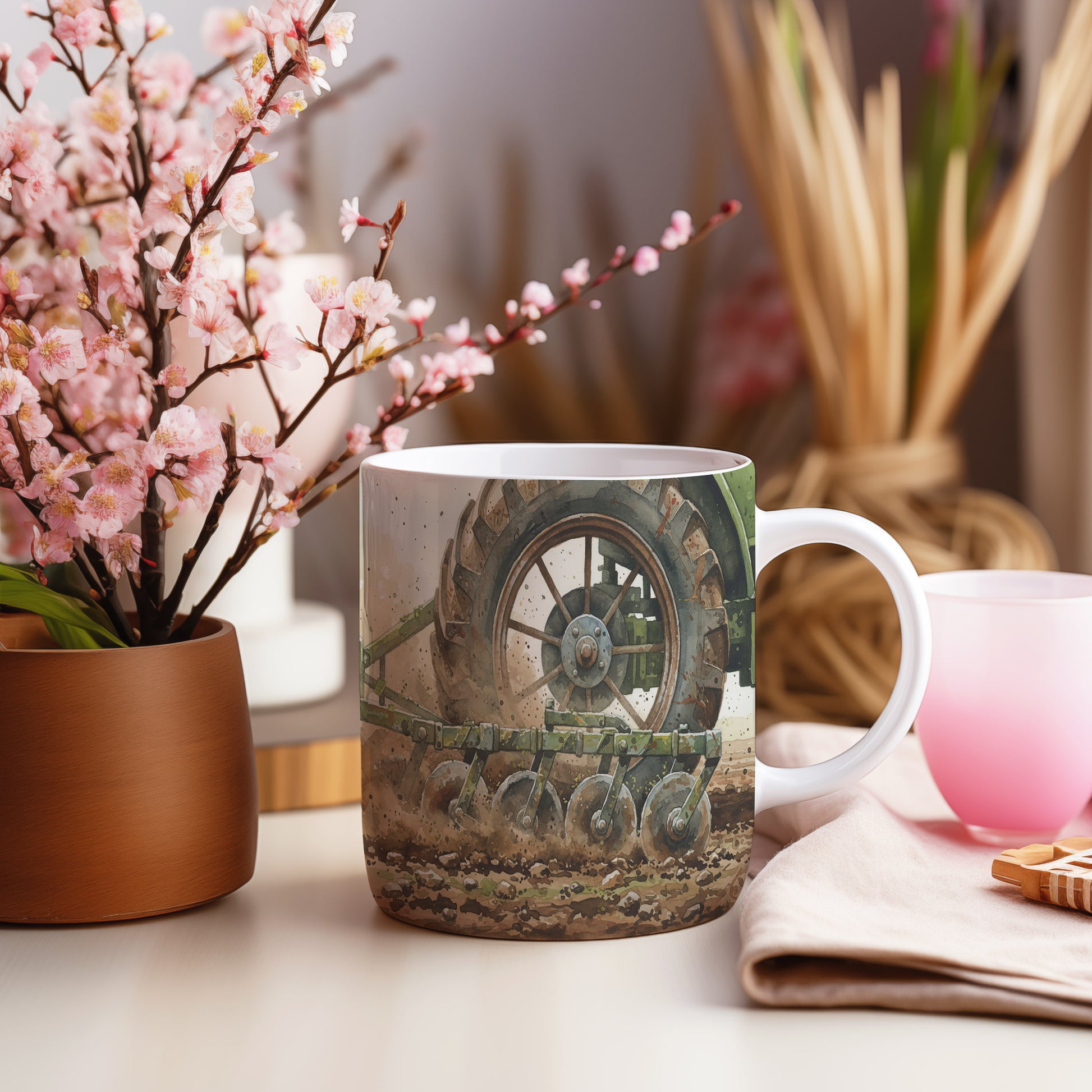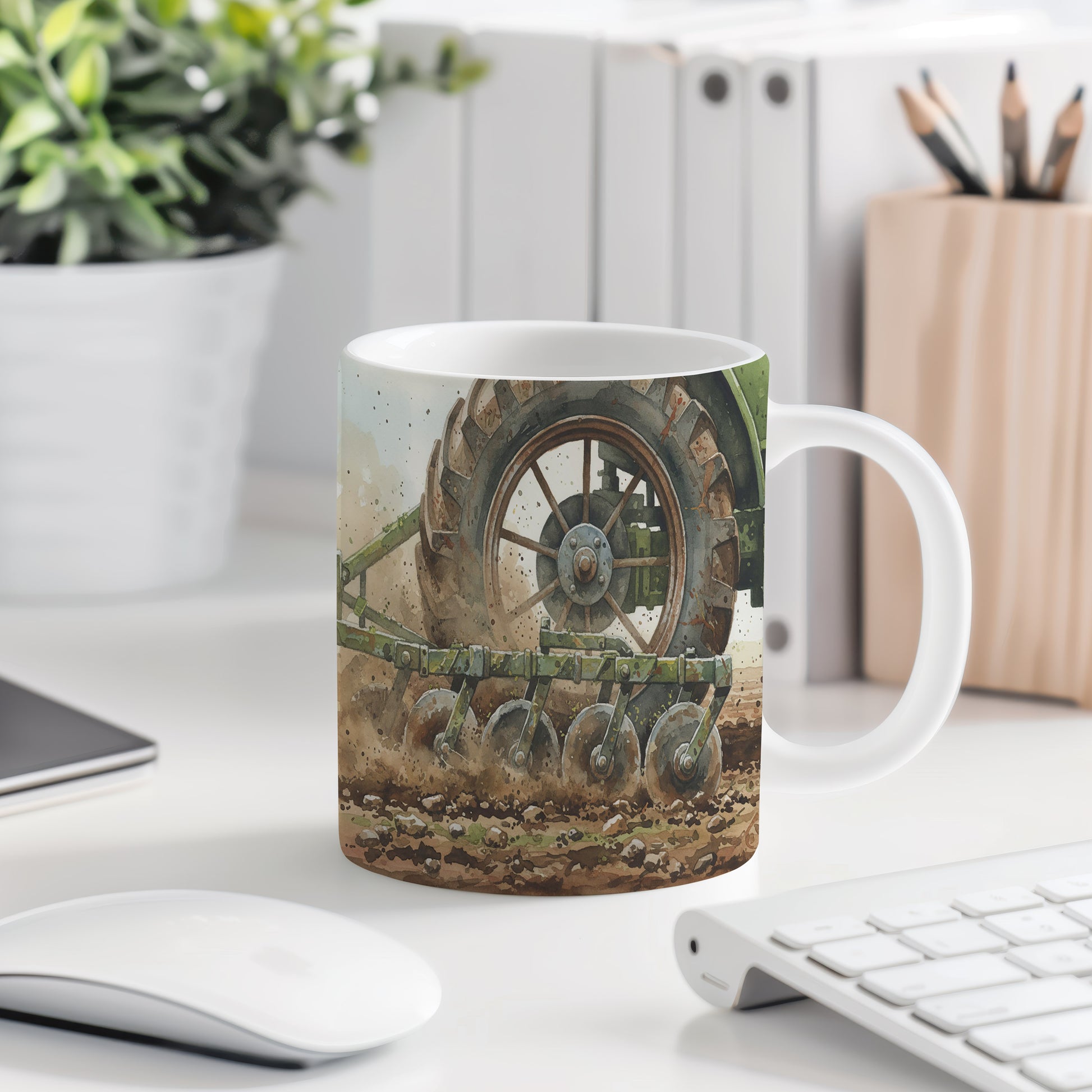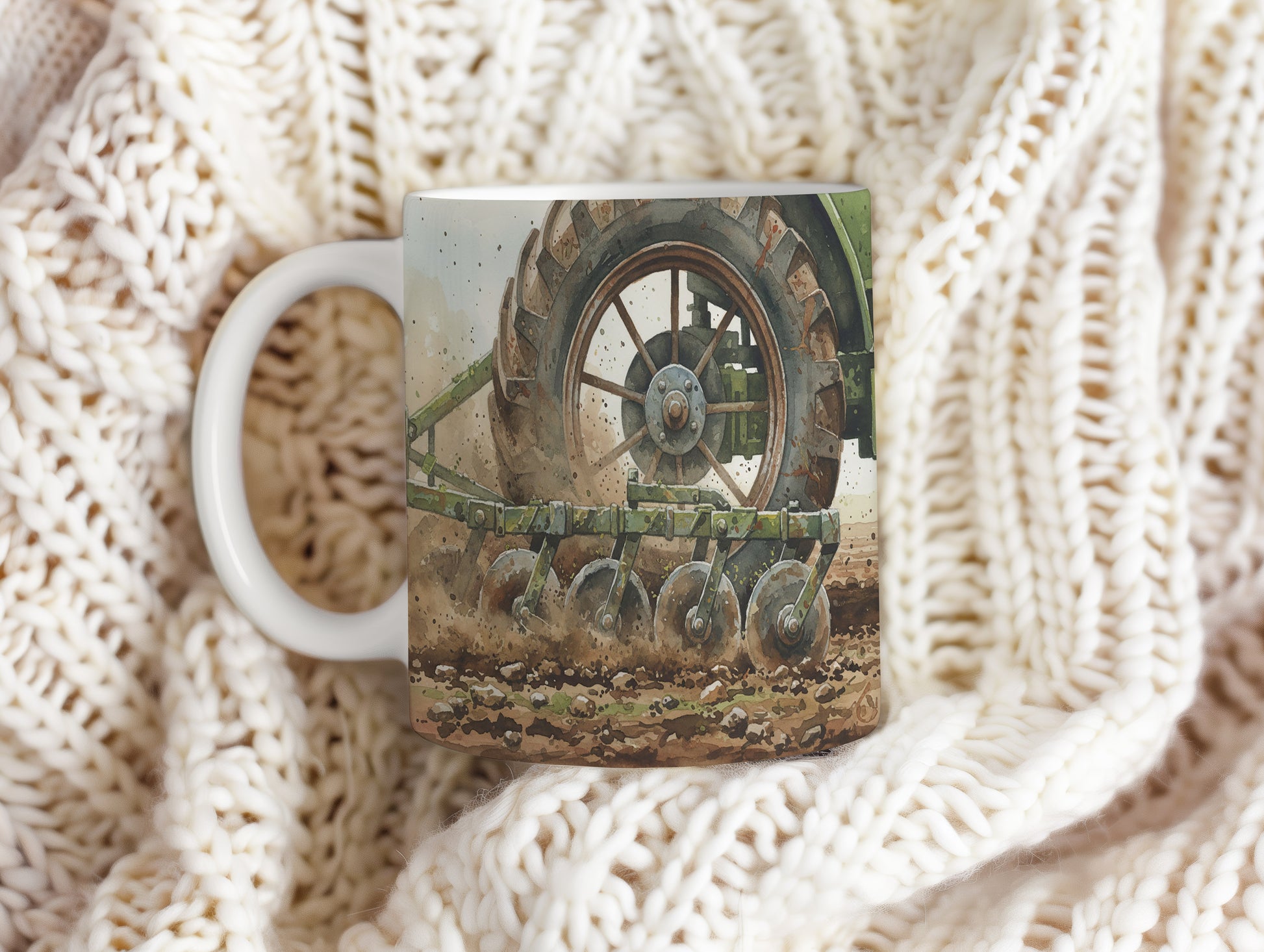 Objevte krásu zemědělského stroje na tomto hrnku s akvarelovým motivem traktoru v poli. Detailní zpracování a realistické barvy přinášejí atmosféru venkova. Hrnek 330 ml – vhodný do myčky i mikrovlnky.
