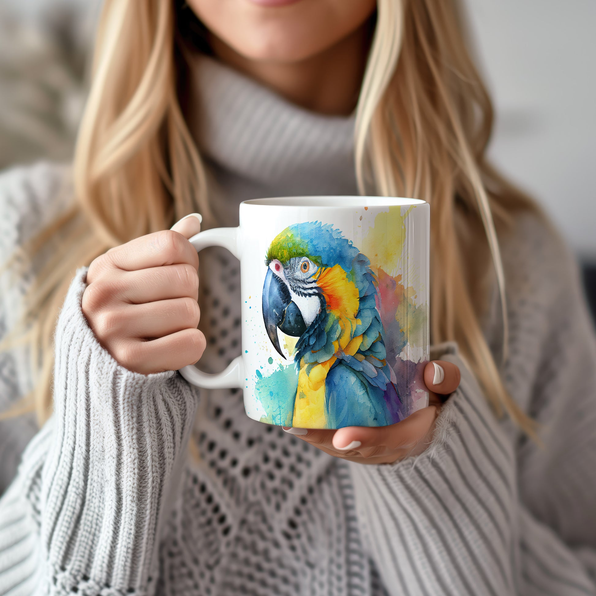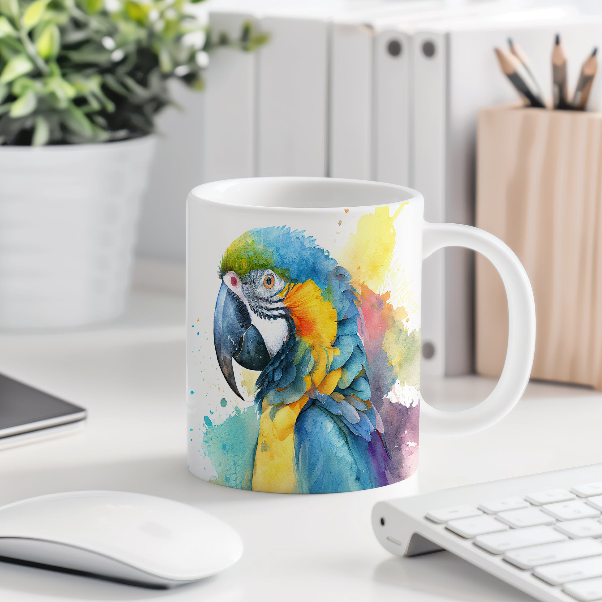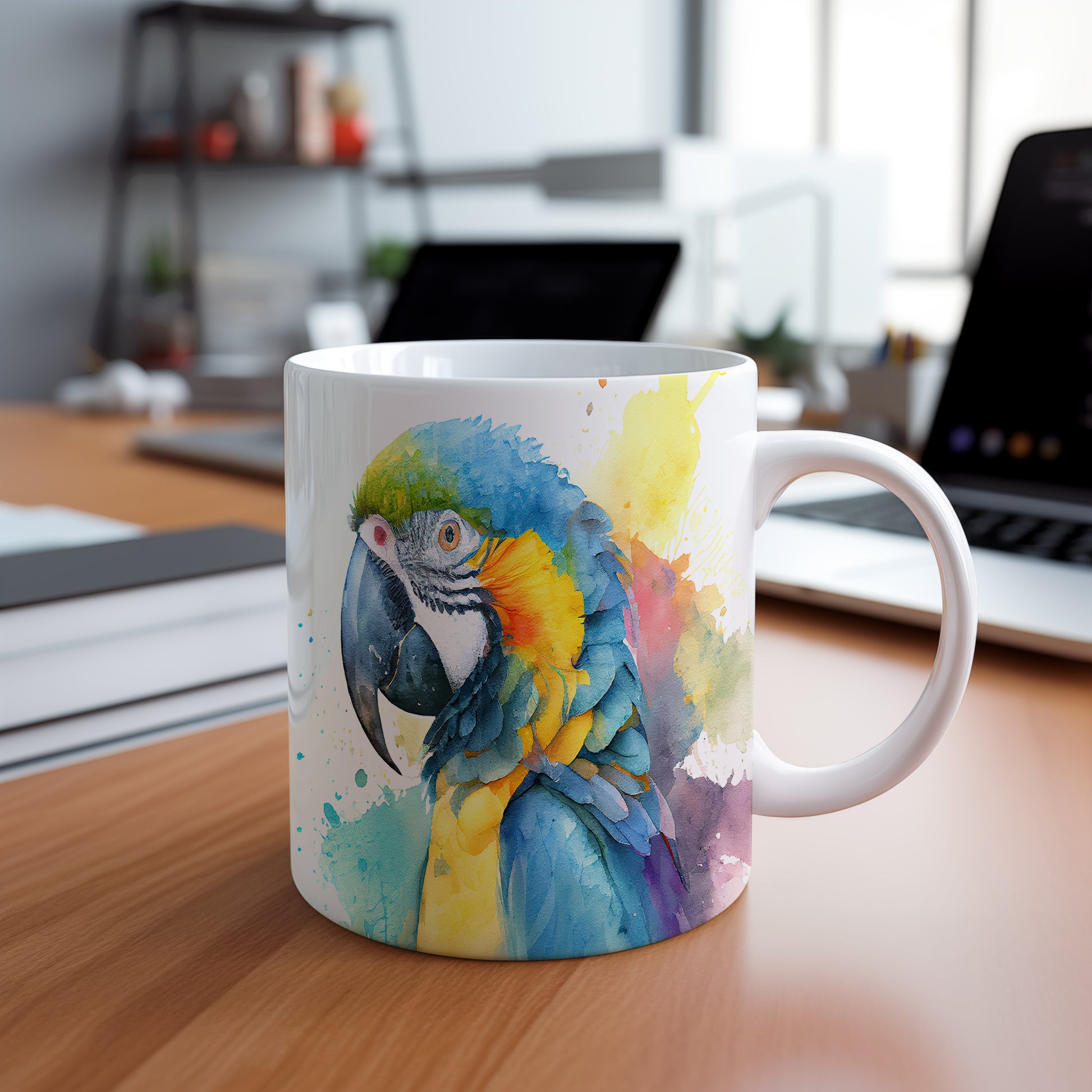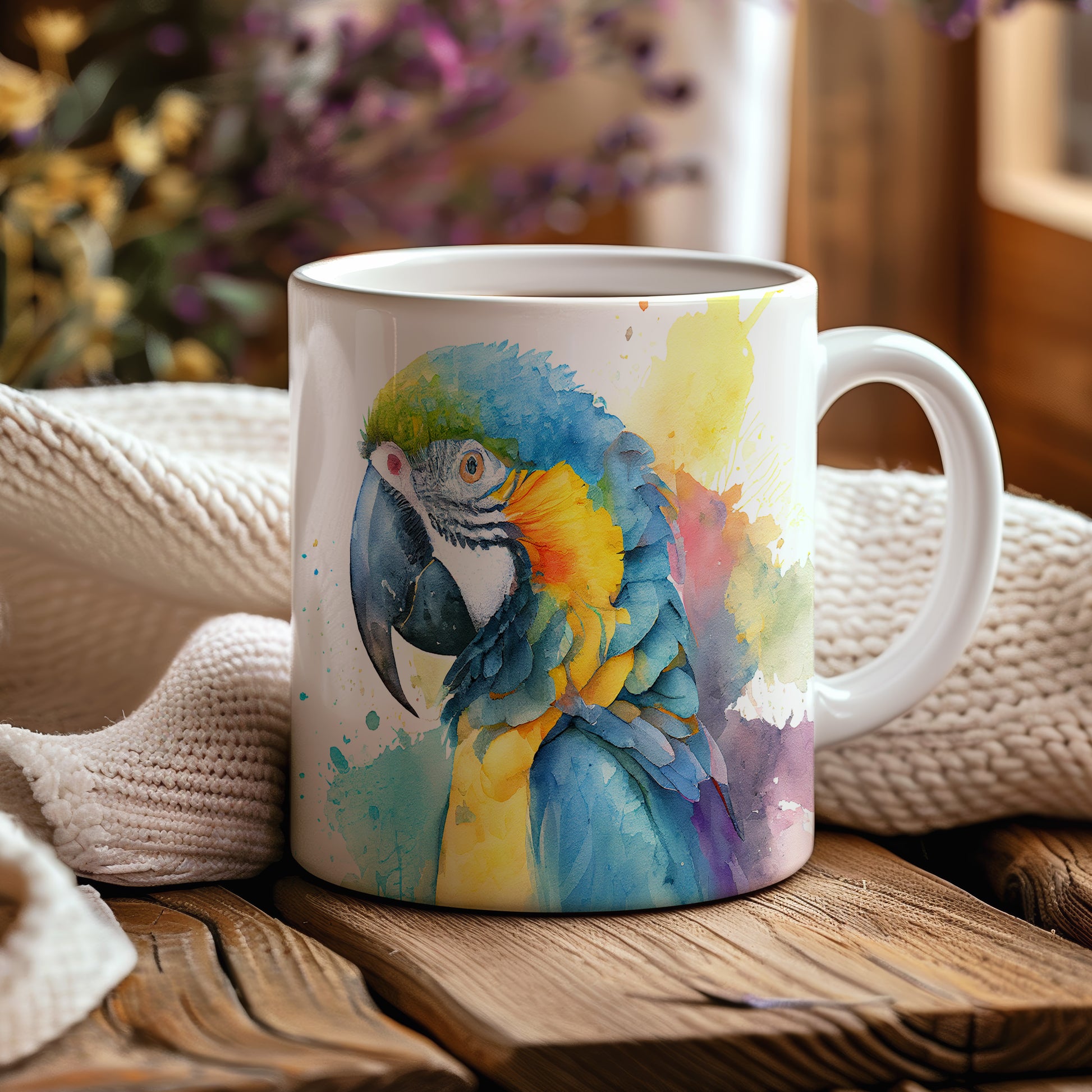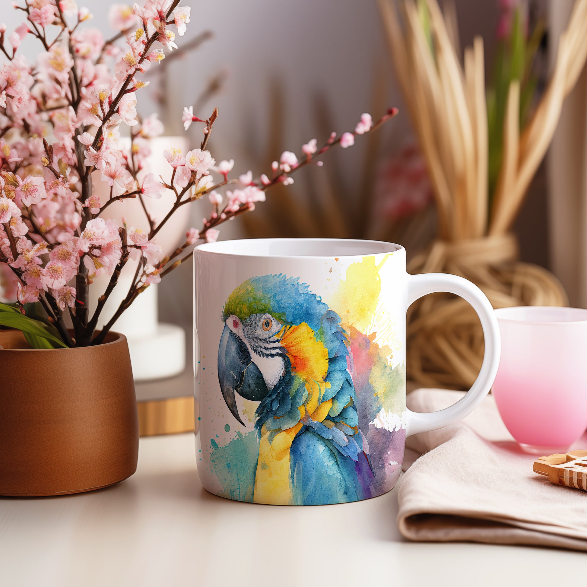 Tento hrnek zobrazuje nádherný akvarelový motiv papouška v jarních barvách. Je ideální pro milovníky ptáků a akvarelového umění, skvělý tip na dárek pro přátele nebo rodinu. Materiál: keramika. Objem: 330 ml. Vhodné do myčky i mikrovlnky. Díky svému designu přináší do každodenního pití radost a barevnost.