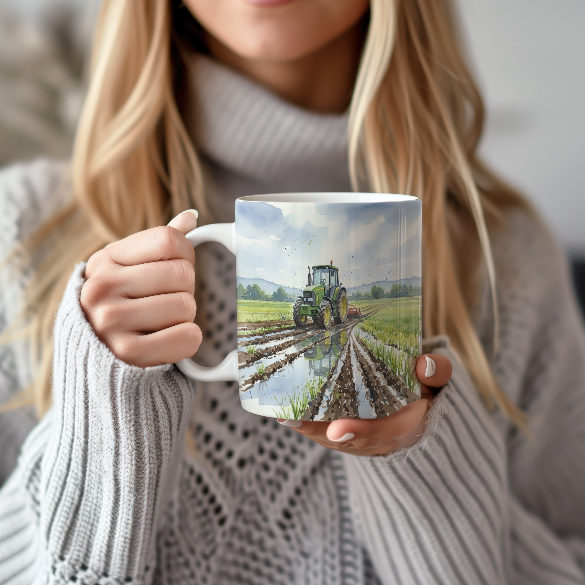 Akvarelový motiv traktoru na venkově přináší klid a pohodu každé kávové pauze. Hrnek 330 ml – vhodný do myčky i mikrovlnky.