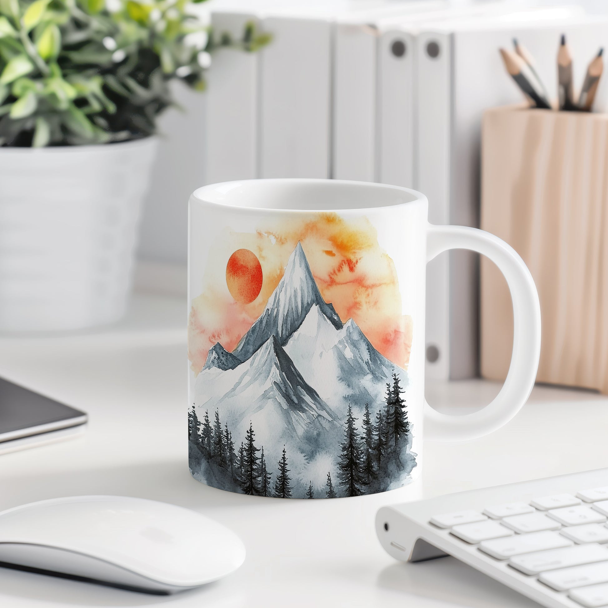 Tento hrnek s motivem akvarelových hor v jemných oranžových a šedých odstínech je ideální pro milovníky přírody a umění. Skvělý tip na dárek pro přátele nebo rodinu, kteří ocení krásu hor. Materiál: keramika. Objem: 330 ml. Vhodné do myčky i mikrovlnky. Užívejte si svůj oblíbený nápoj s nádechem elegance a originality.