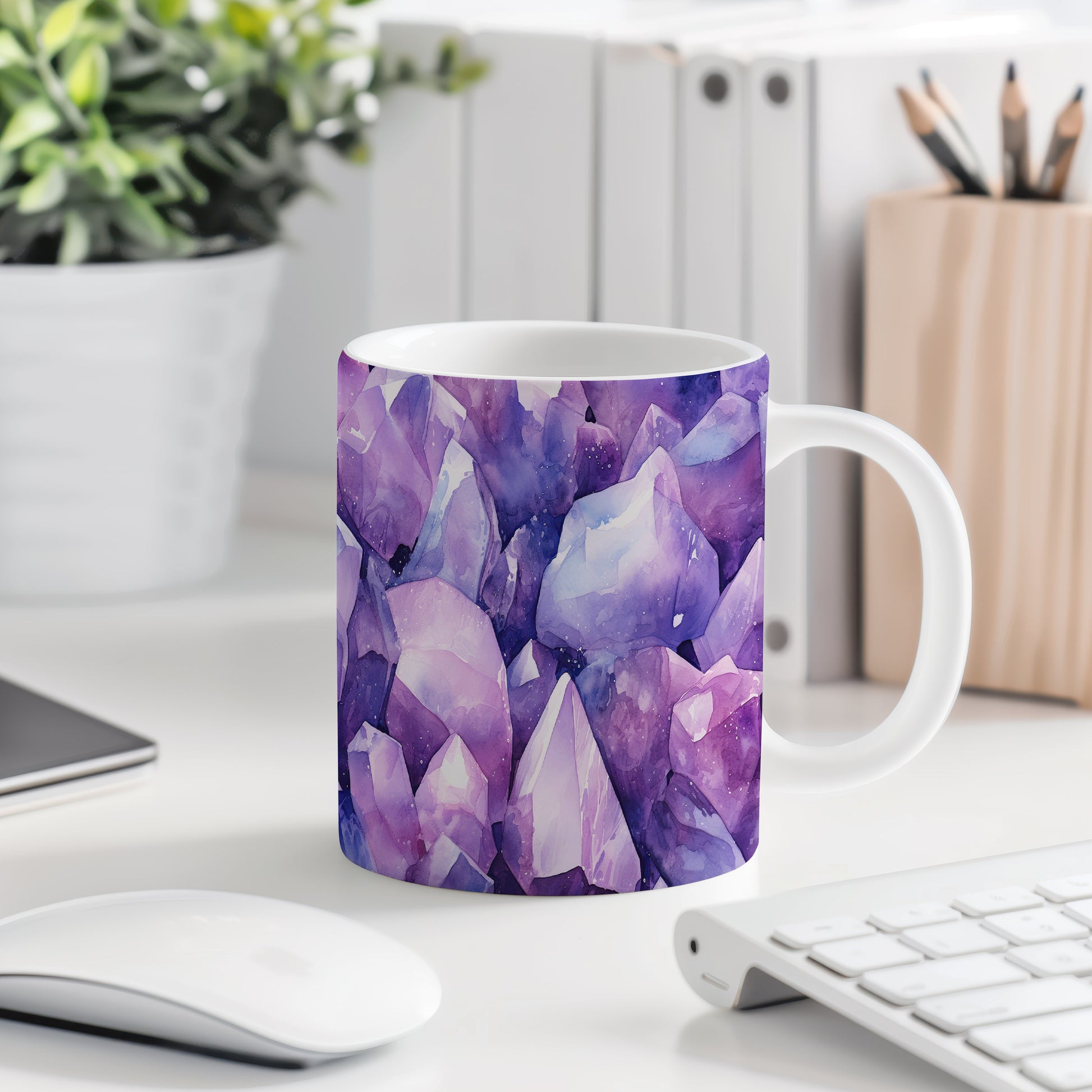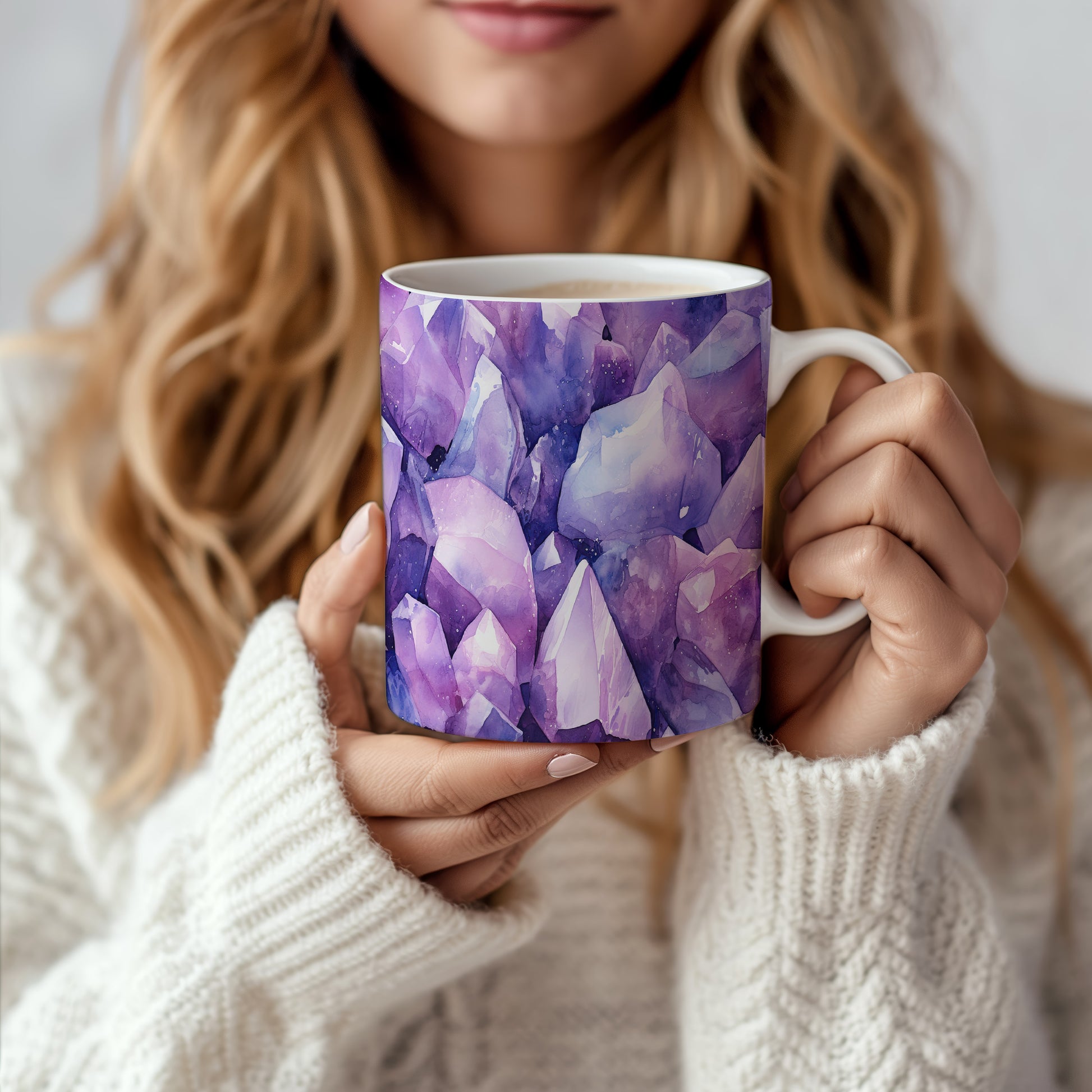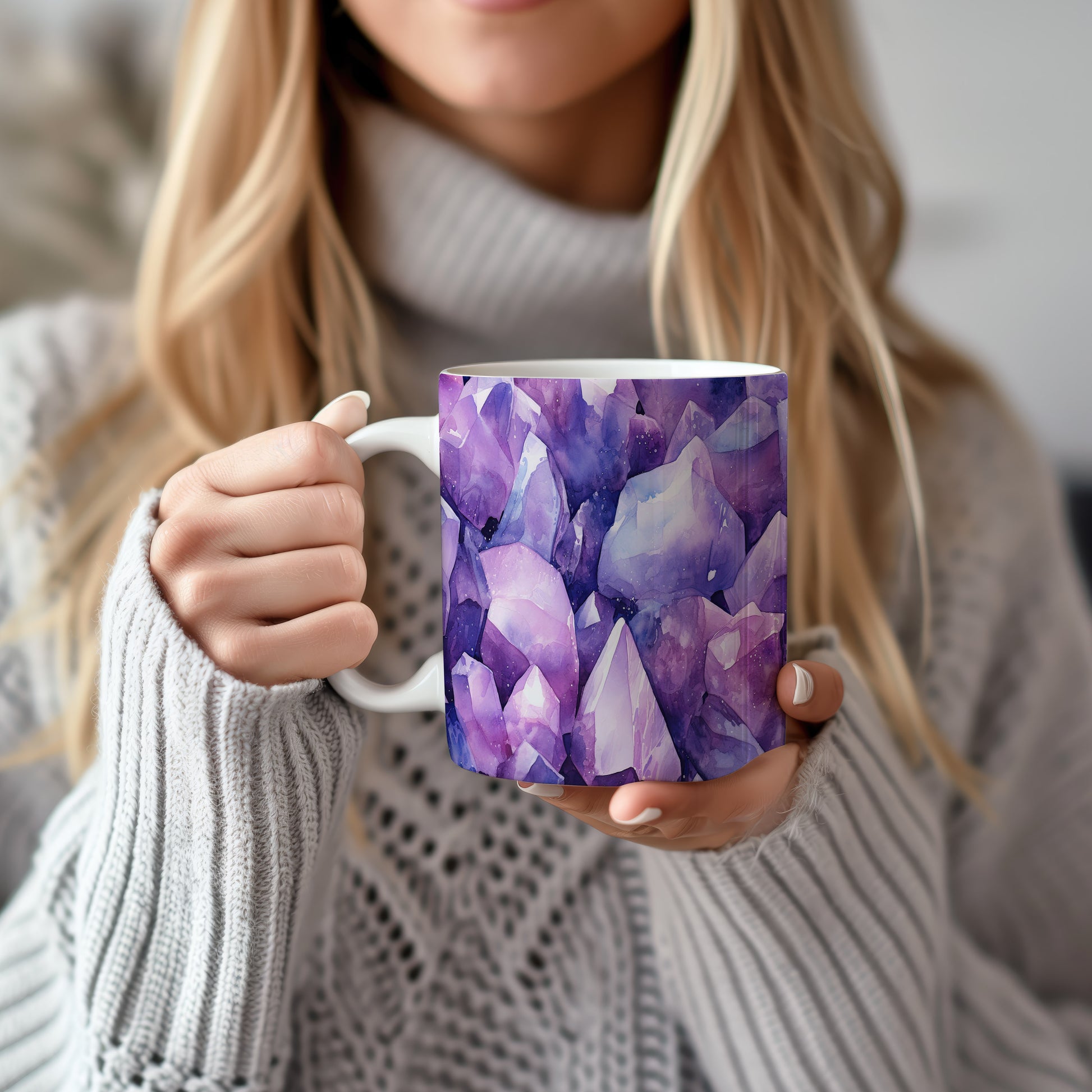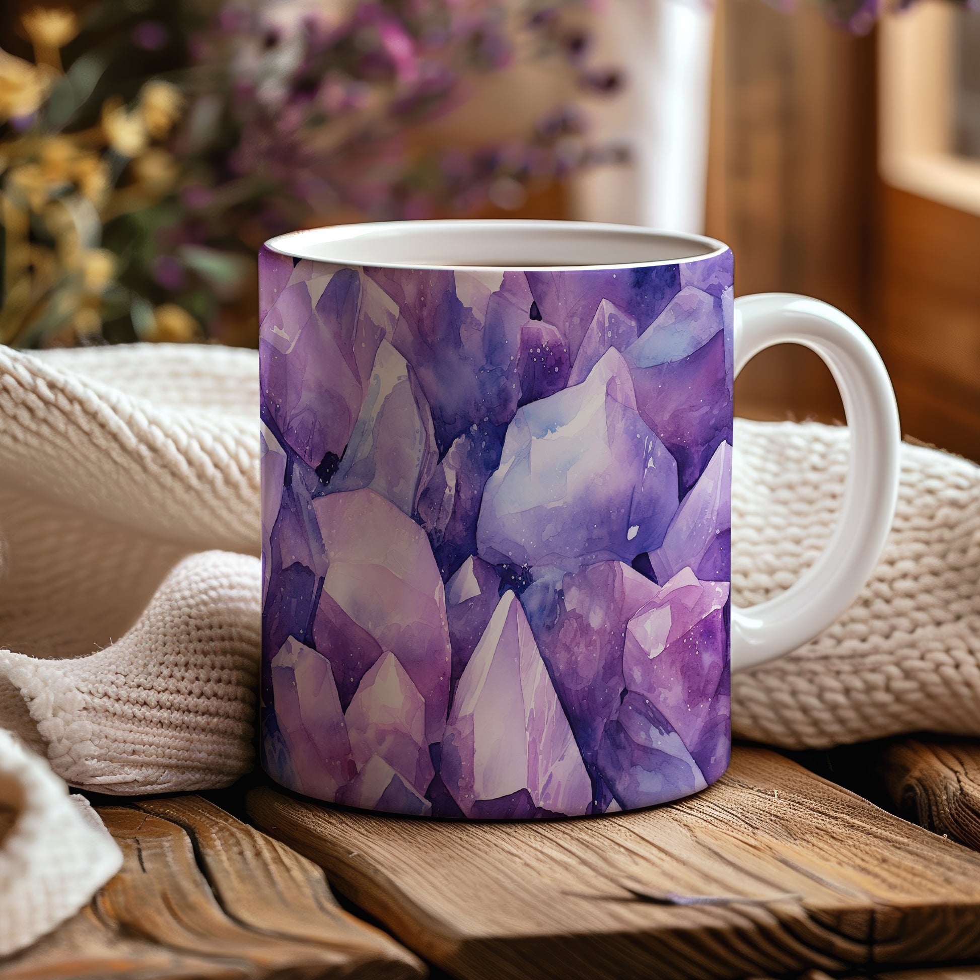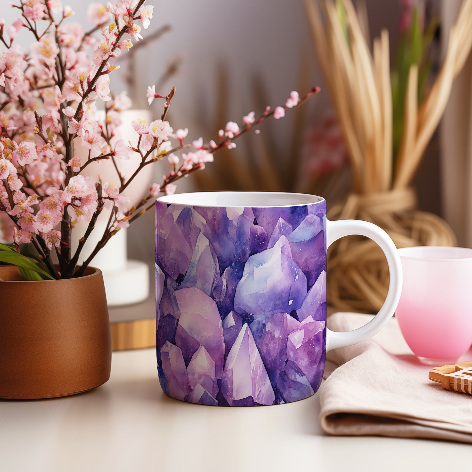 Tento hrnek s akvarelovými krystaly v fialových a modrých tónech přináší do vašeho domova jedinečný a elegantní styl. Je ideální pro milovníky umění a kreativních designů, skvělý tip na dárek pro přátele nebo rodinu. Materiál: keramika. Objem: 330 ml. Vhodné do myčky i mikrovlnky. Používání tohoto hrnku dodá vašim nápojům osobitý nádech a potěší vaše smysly.