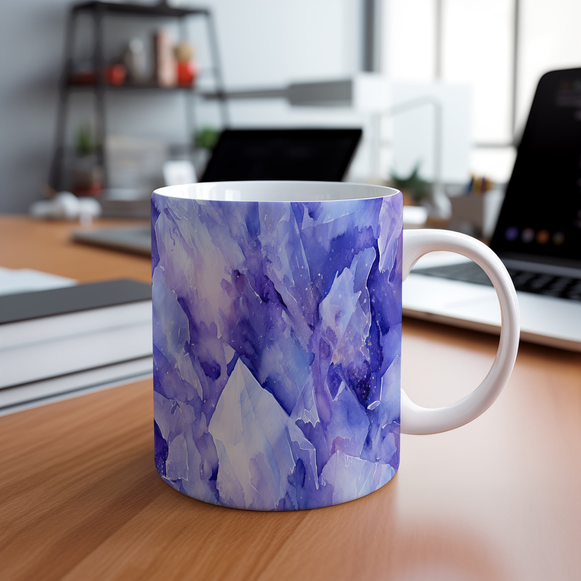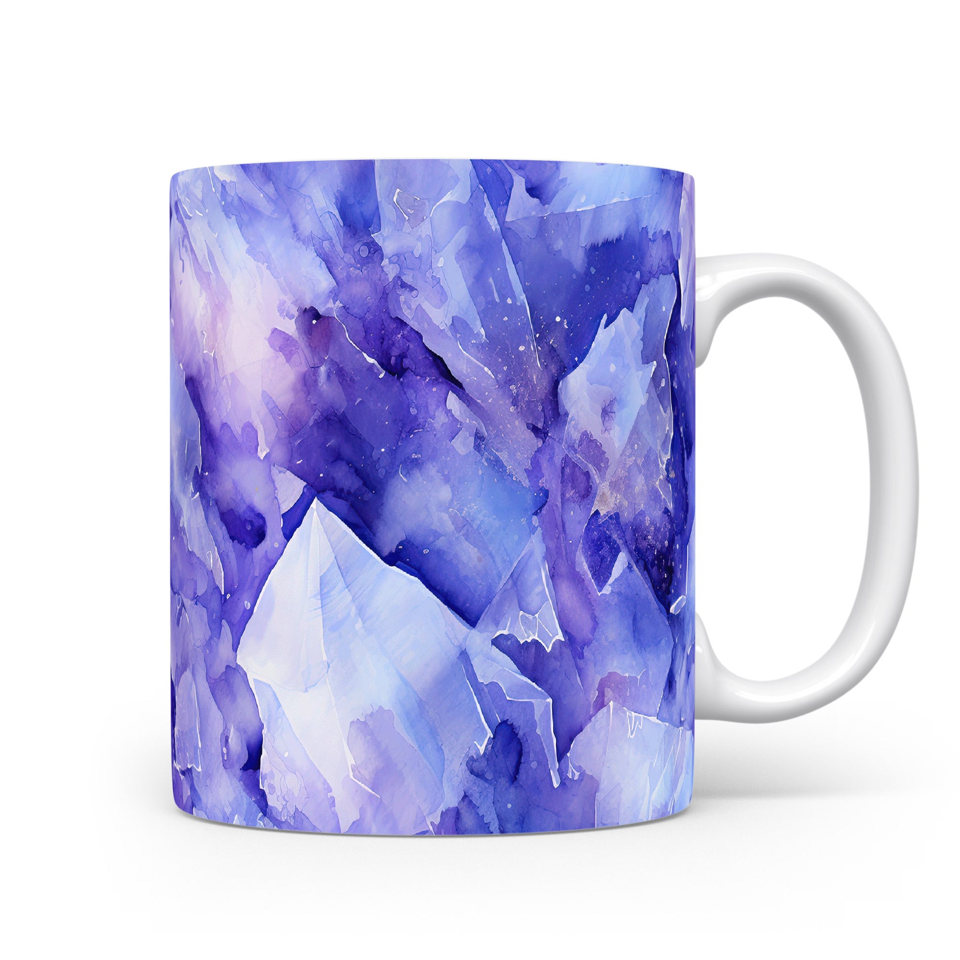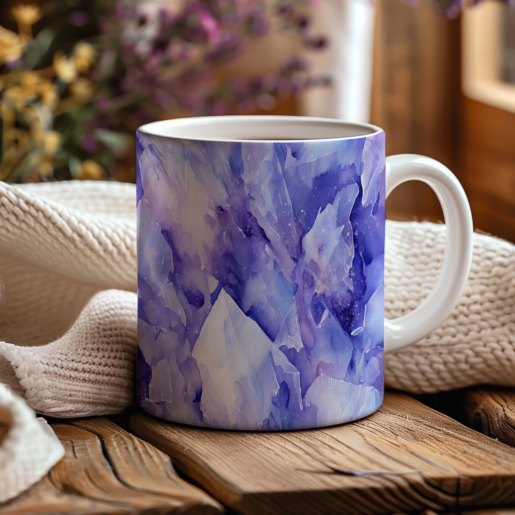Hrnek s akvarelovými krystaly v modrých a fialových tónech