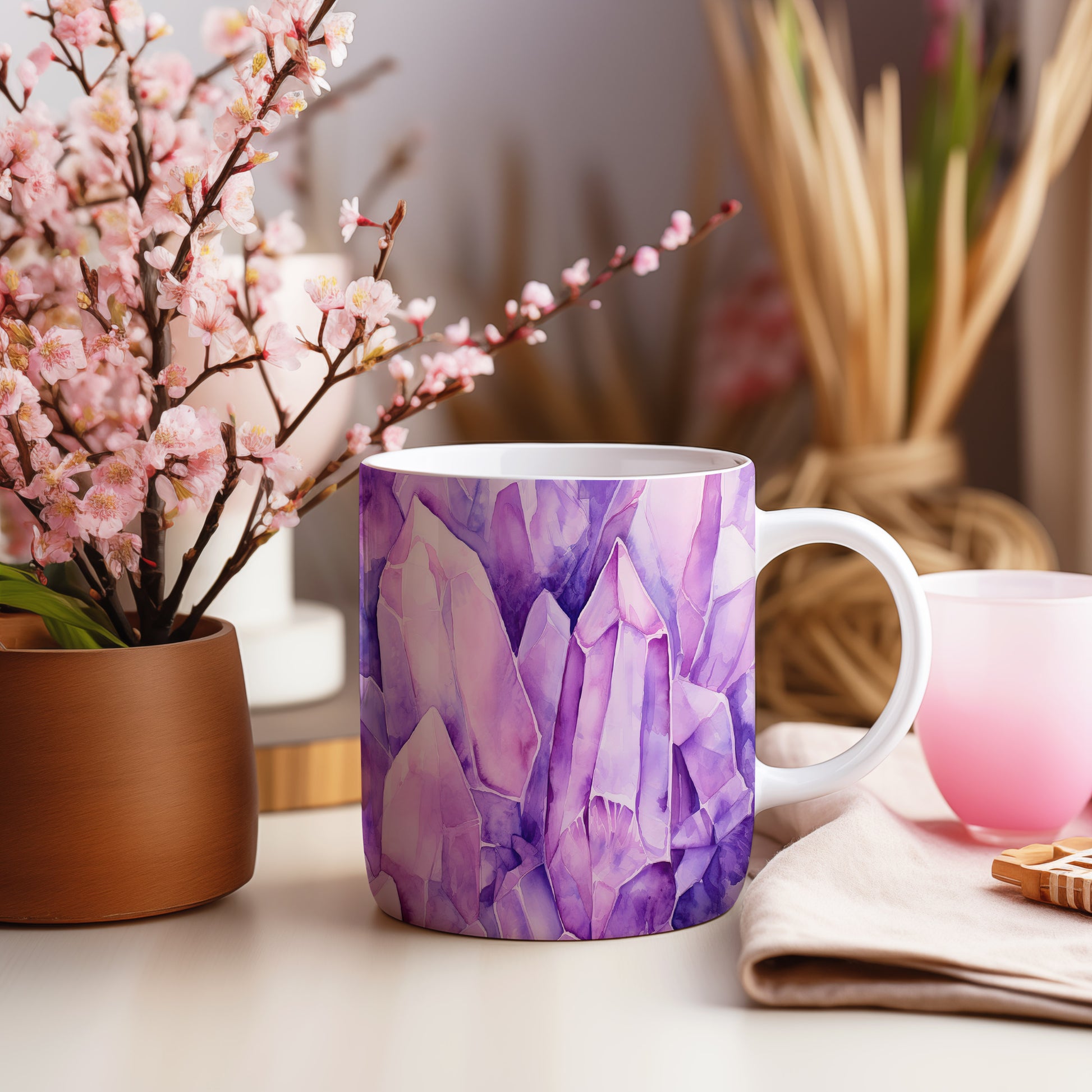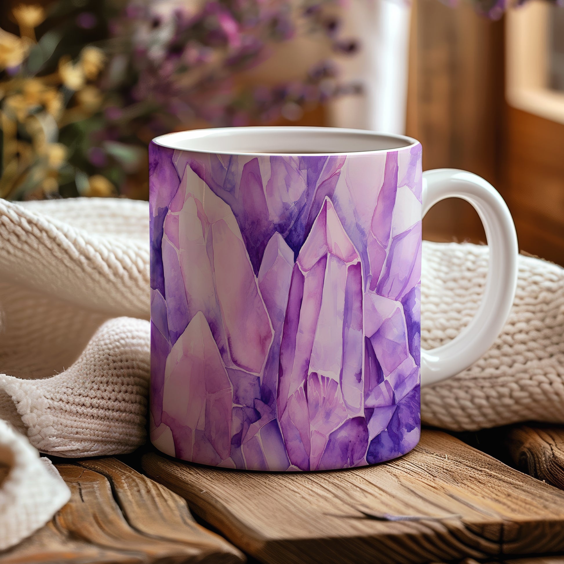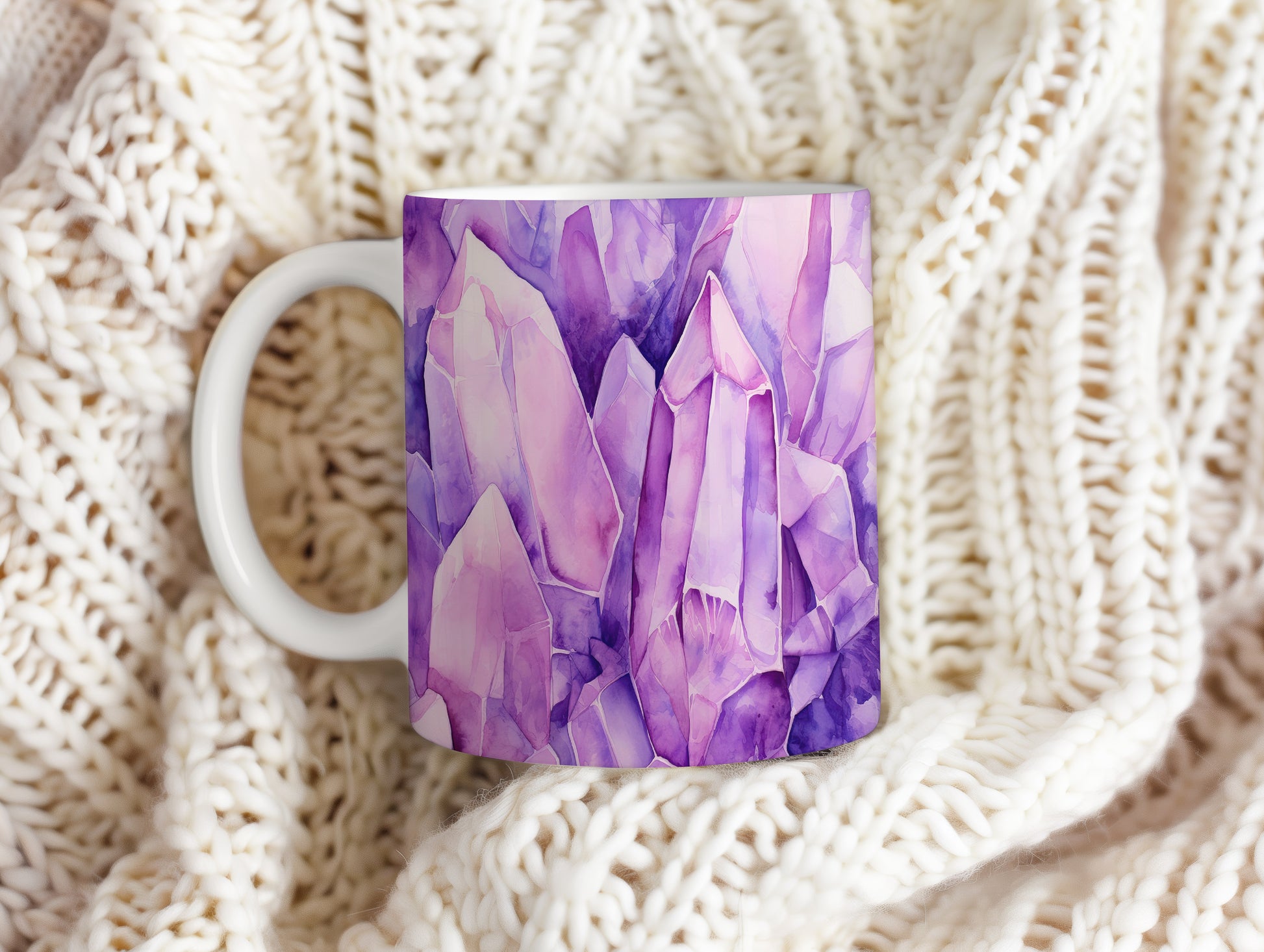 Hrnek s akvarelovými krystaly v odstínech fialové a 3D efektem