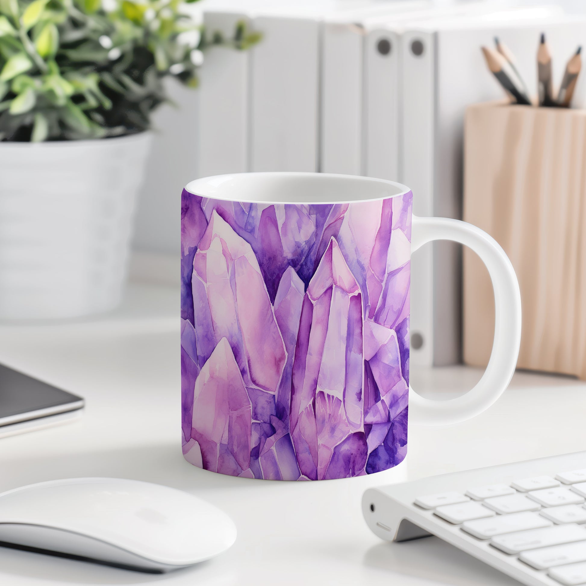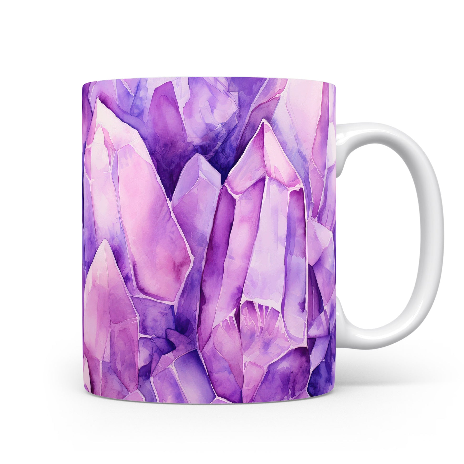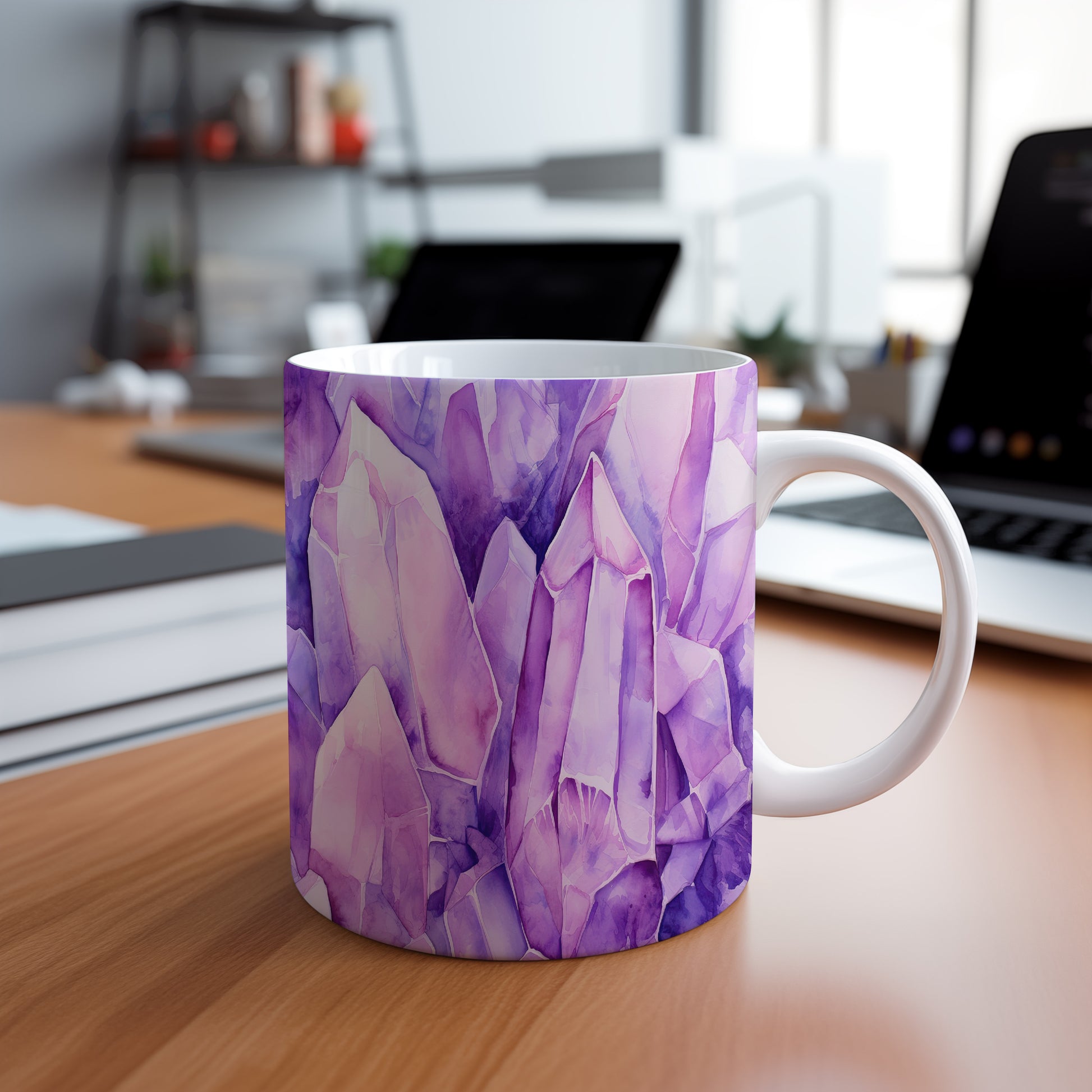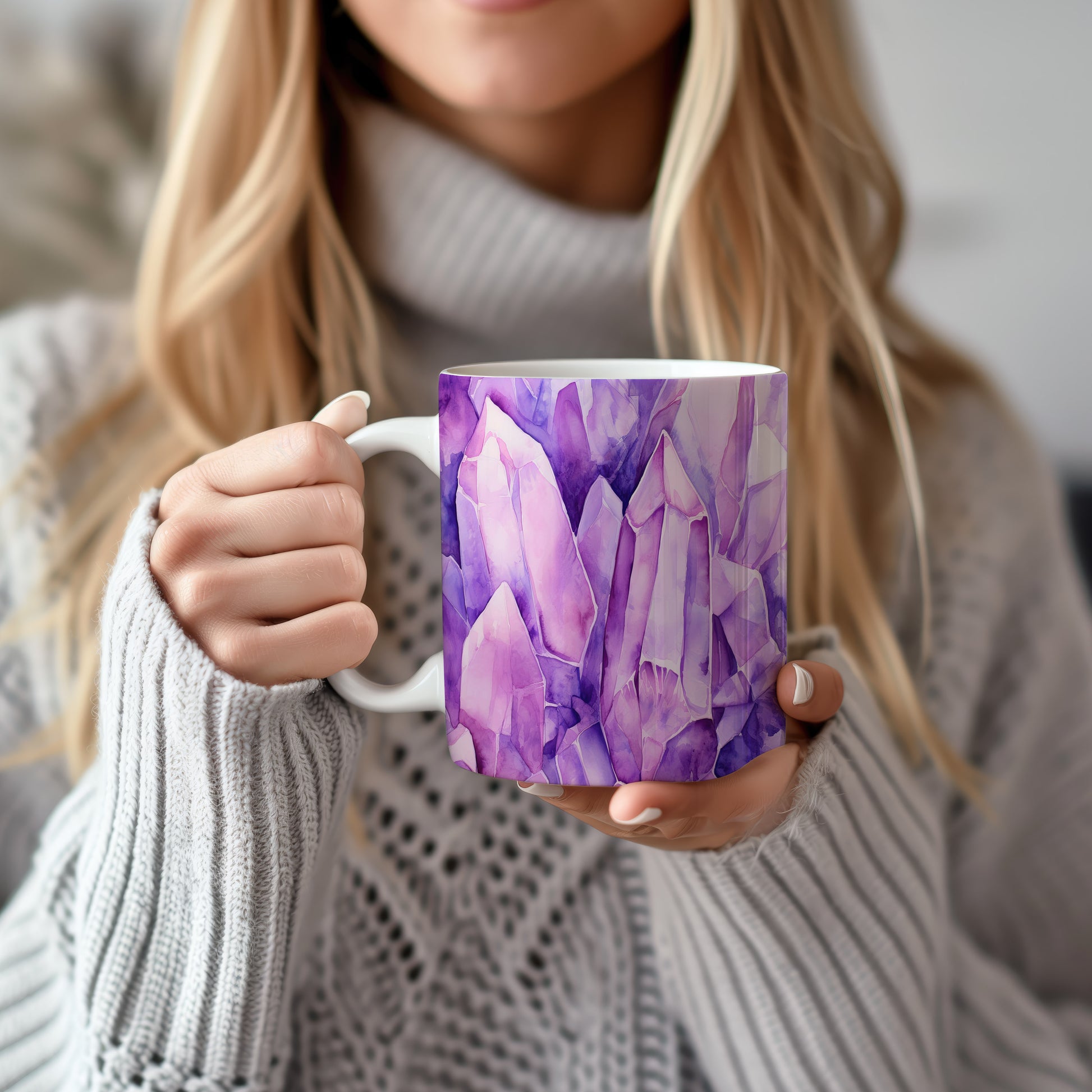 Hrnek s akvarelovými krystaly v odstínech fialové a 3D efektem