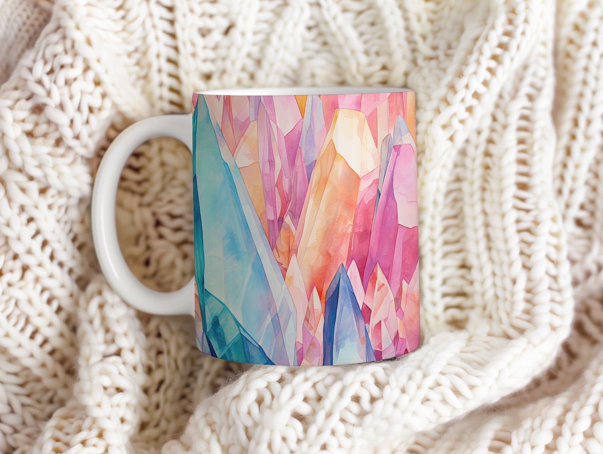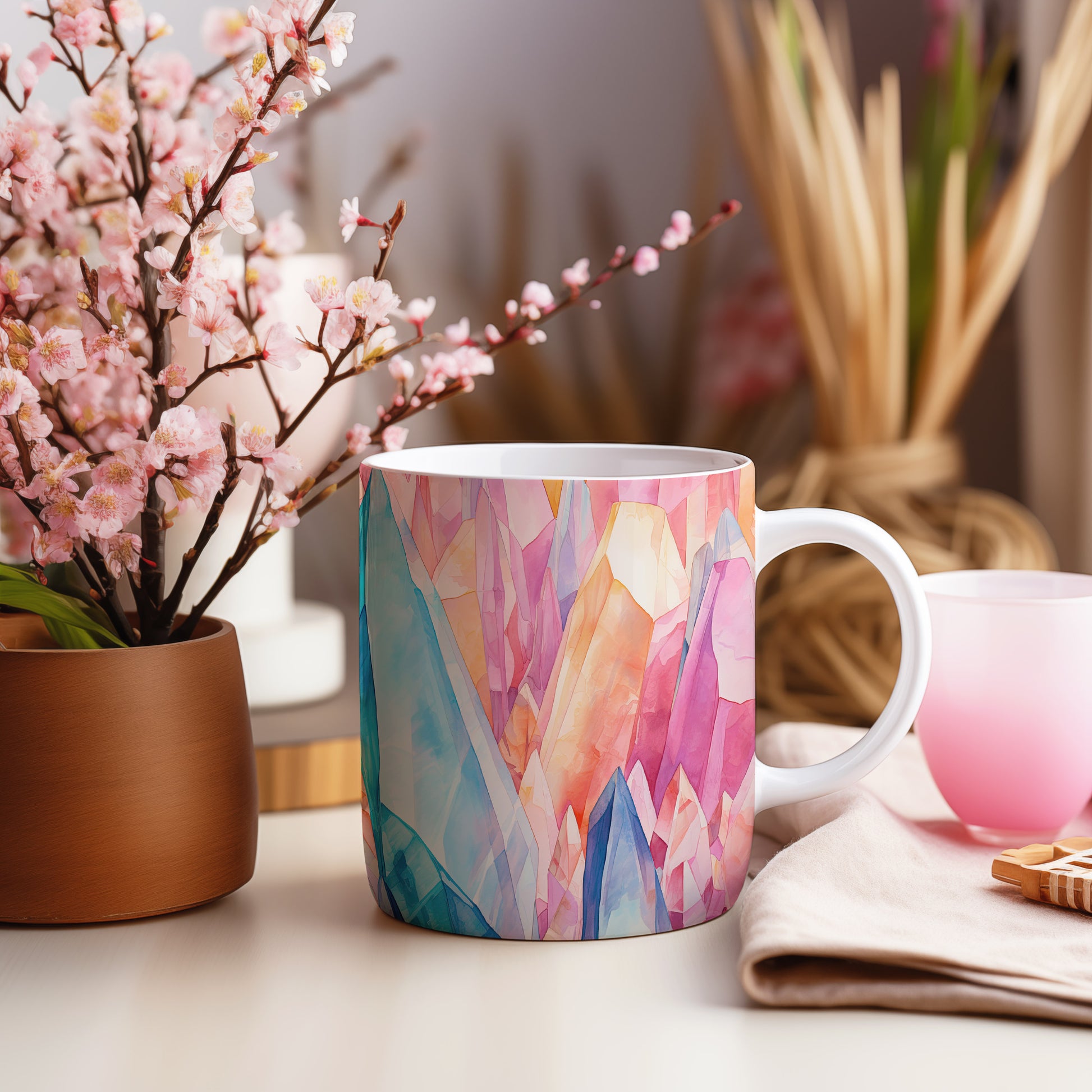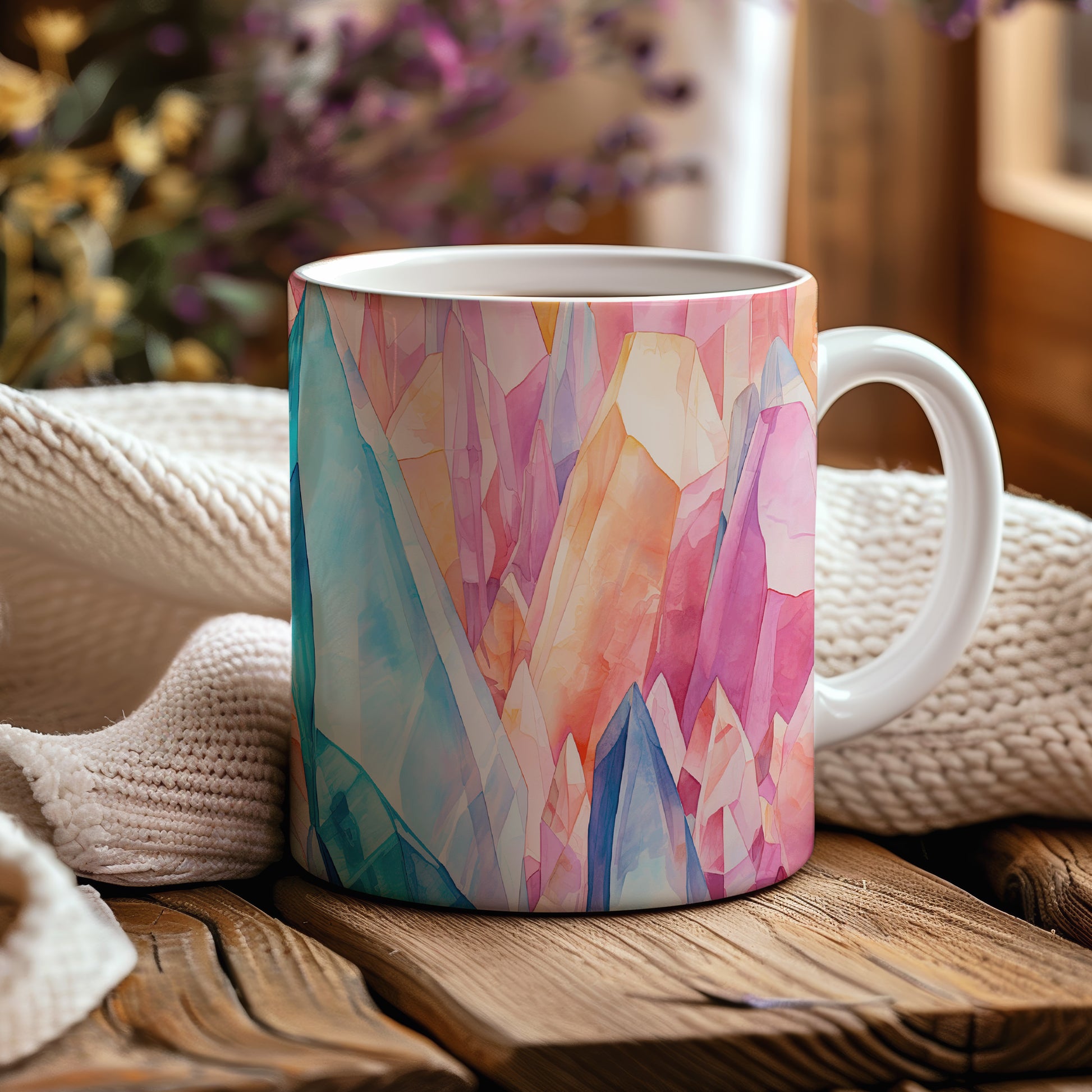 Hrnek s akvarelovými krystaly v pastelových barvách