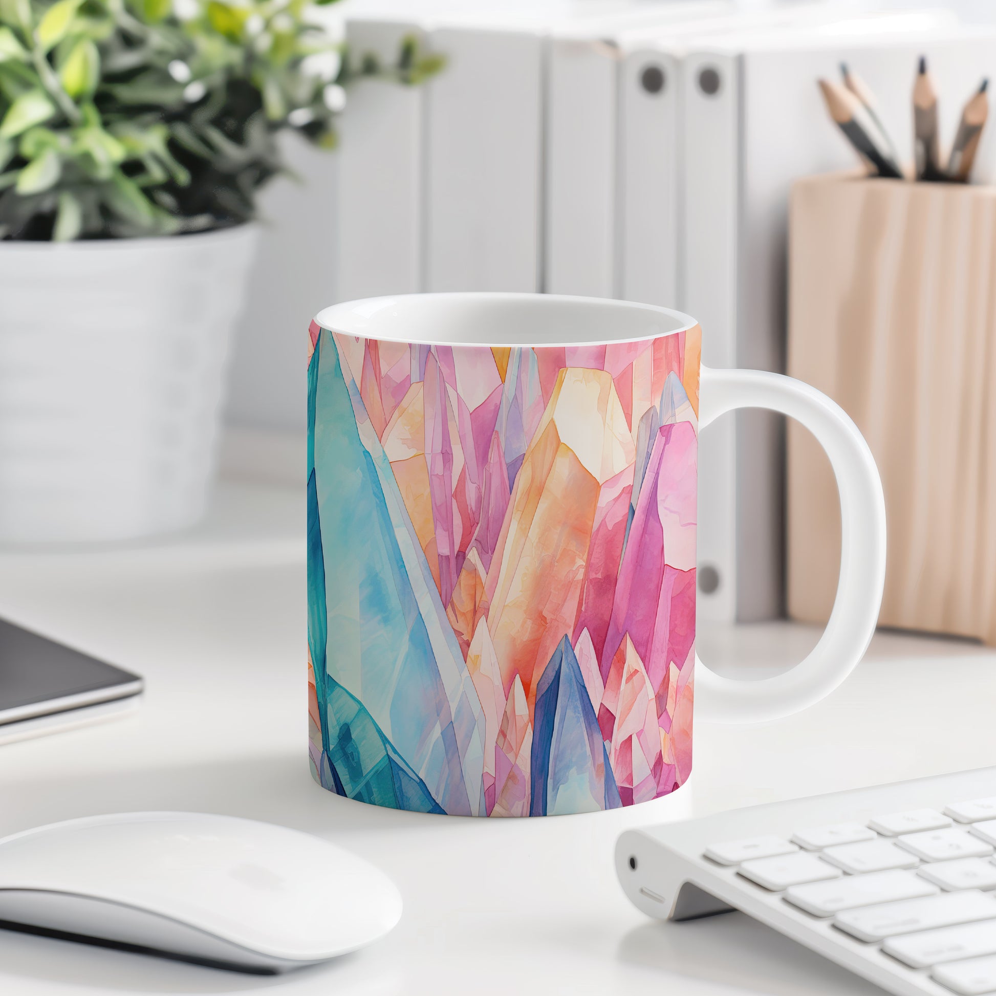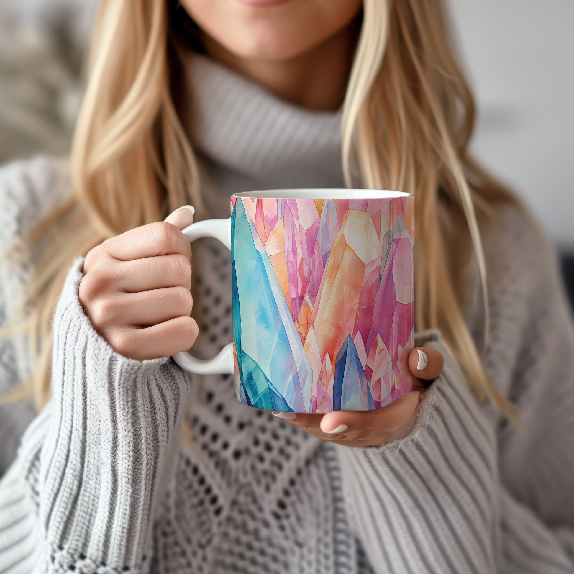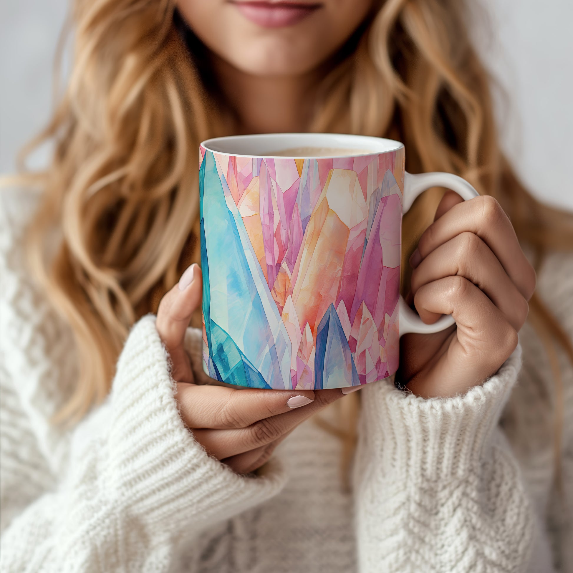 Hrnek s akvarelovými krystaly v pastelových barvách